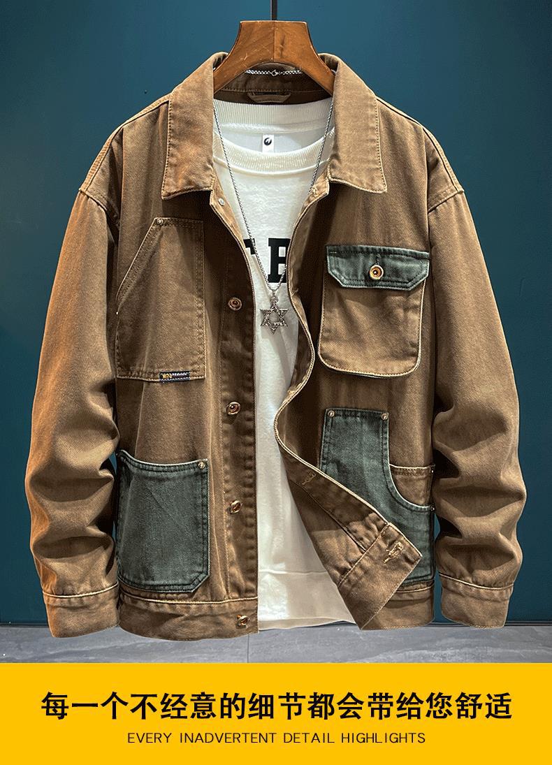 2025 Nueva Chaqueta de Mezclilla para Hombre Tendencia Primavera y Otoño Marca Casual Talla Grande Chaqueta de Caza para Hombre Chaqueta Retro de Ropa de Trabajo