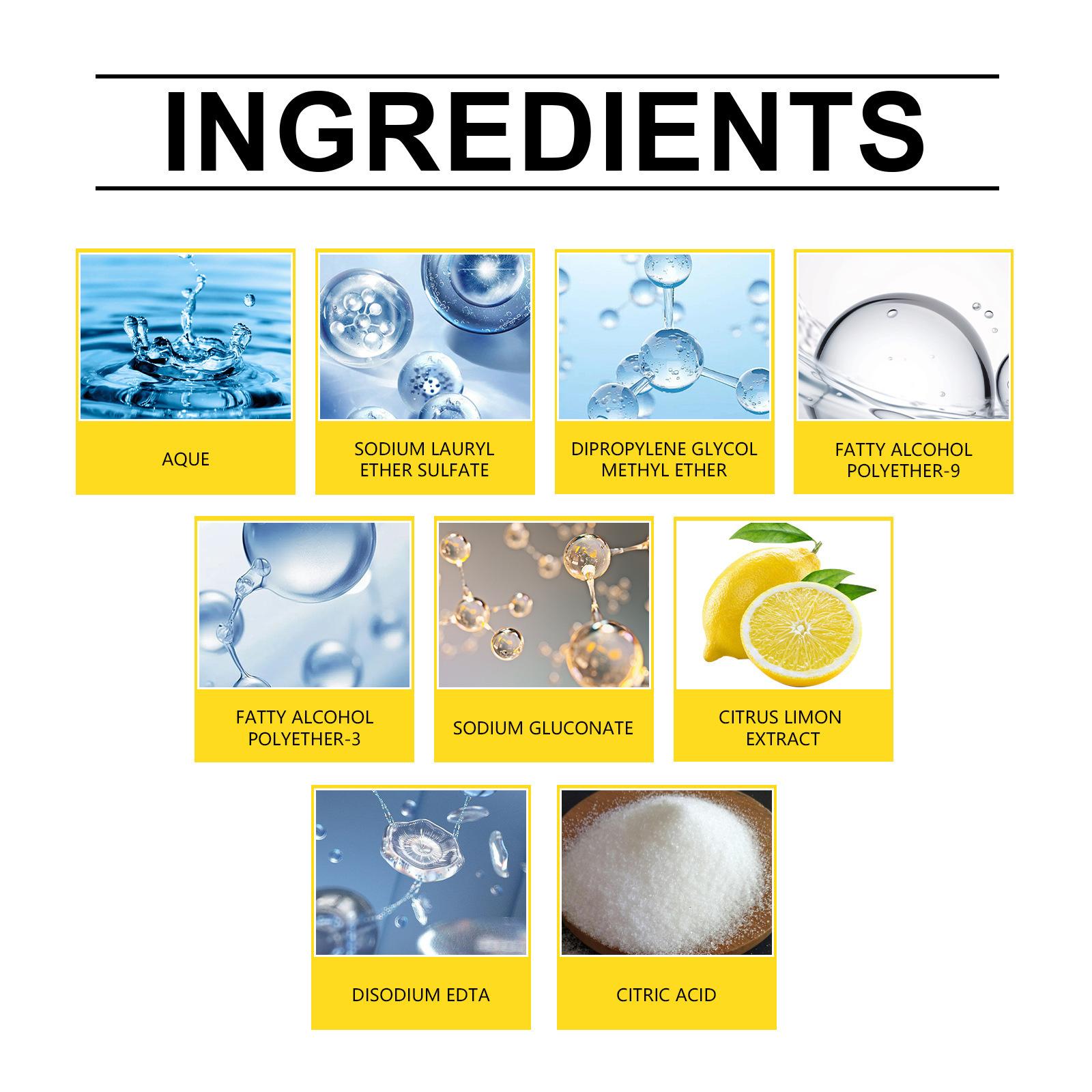 Water, sodium laureth sulfate, dipropylene glycol methyl ether, fatty alcohol polyether - 9, fatty polyether -...