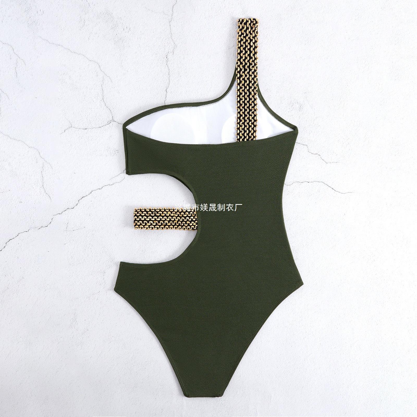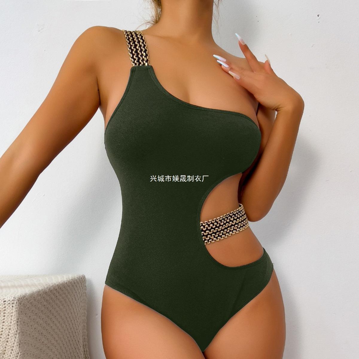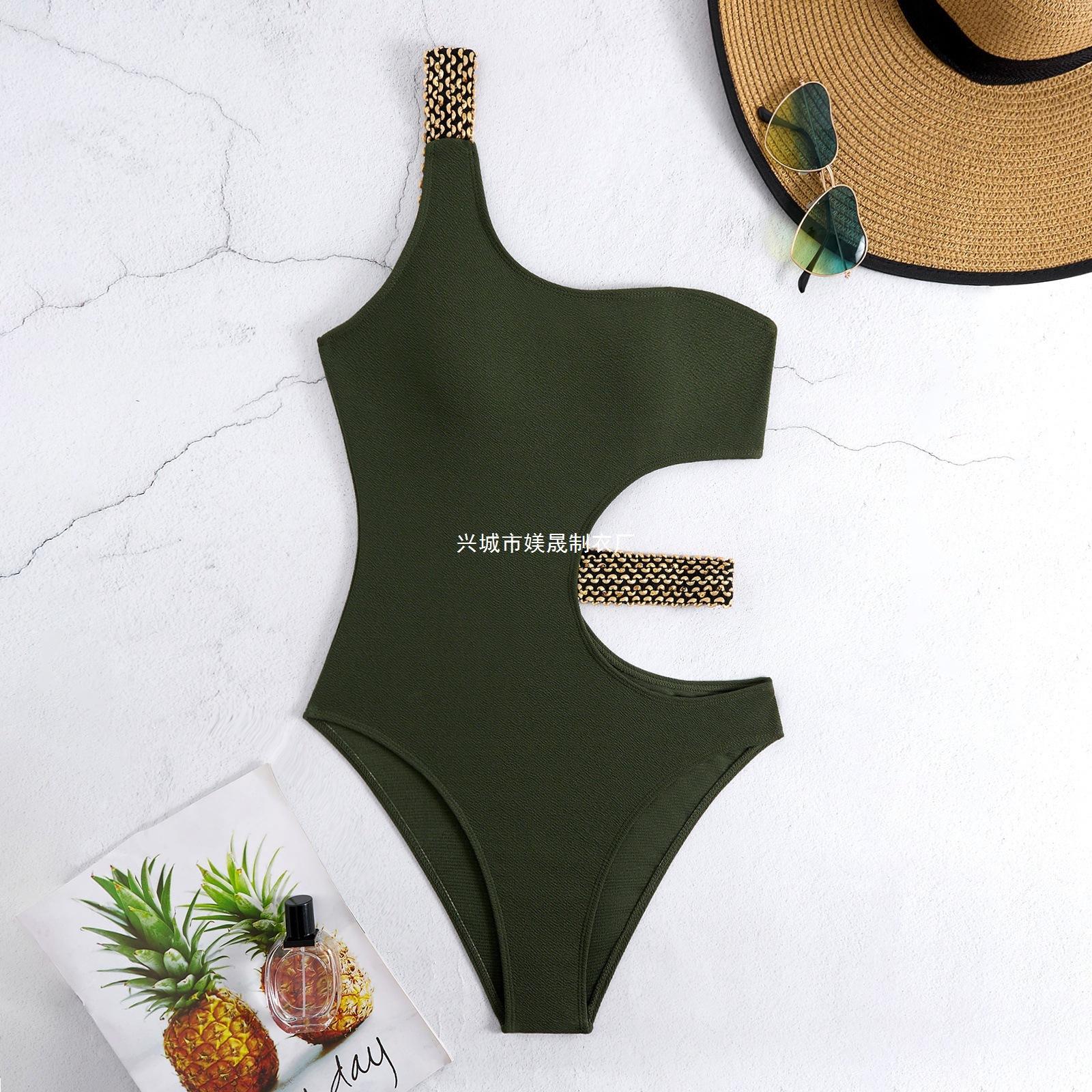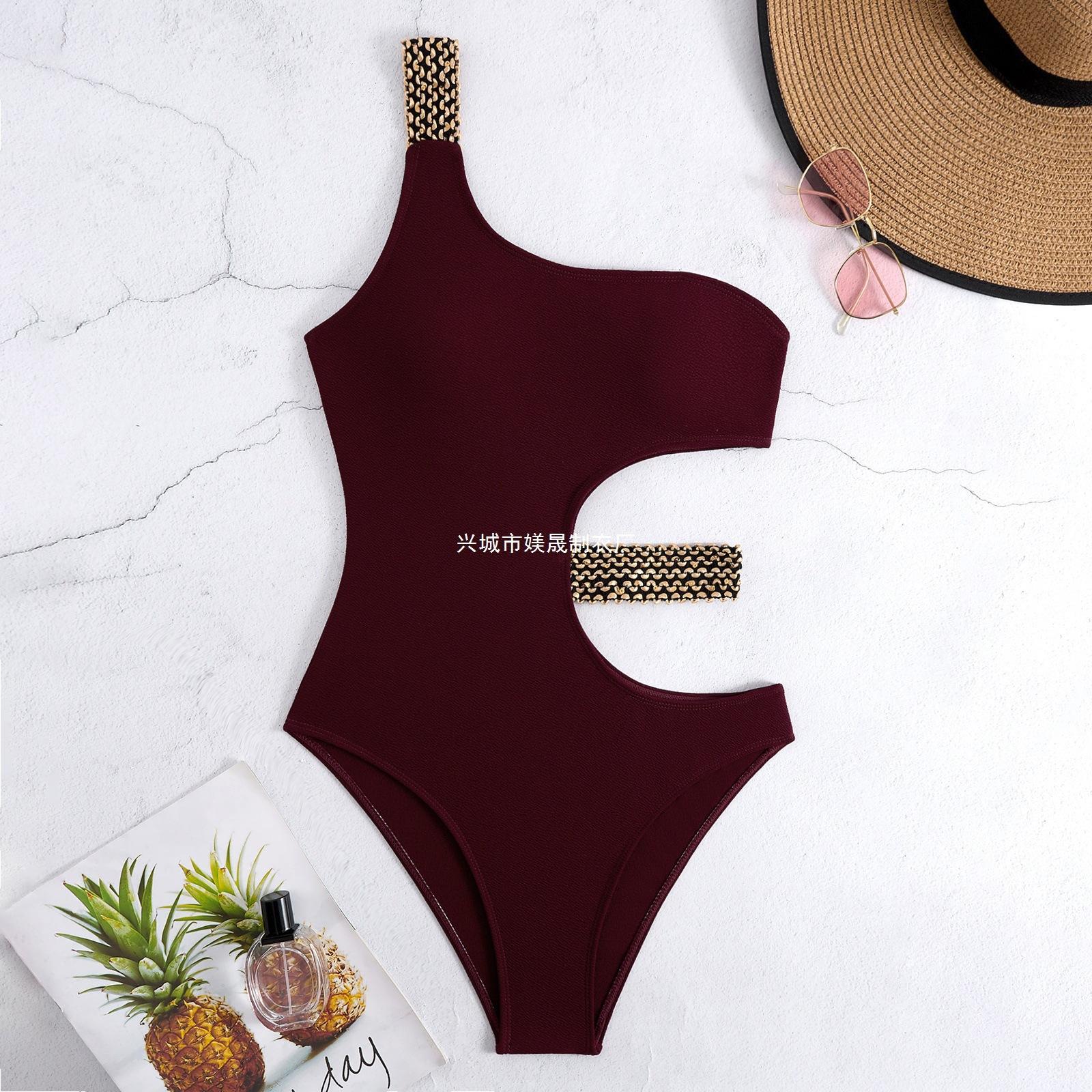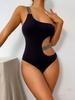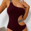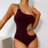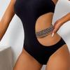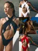 Traje de baño bikini de una pieza de color sólido de estilo nuevo europeo y americano para comercio exterior transfronterizo, ajustado, sexy, sin espalda para mujer 2025