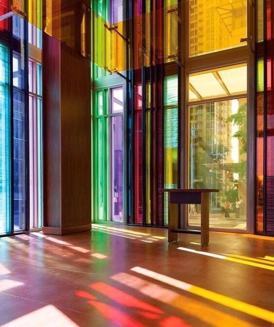 El vitral es un tipo de vidrio hecho triturando vidrio transparente y tiñéndolo mediante un proceso especial. El vitral existió en la antigüedad, y pequeñas piezas molidas de vidrio coloreado podían usarse para pintar.Sus características son cristalinas, con colores brillantes y plenos, lo que lo convierte en un material de vidrio indispensable en el diseño espacial, y es amado y elogiado por muchos diseñadores.