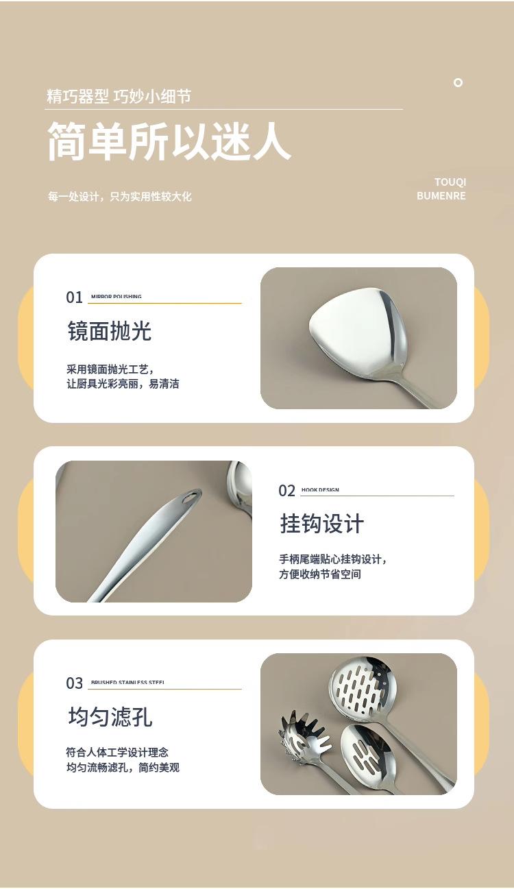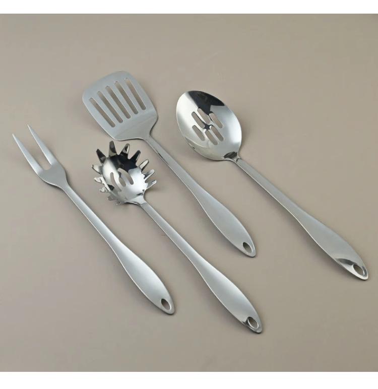 Espátula de Acero Inoxidable Transfronteriza, Cuchara para Sopa, Colador, Juego de 9 Piezas de Utensilios Pequeños de Cocina para Chef, Cuchara Tenedor de Dos Puntas para Barbacoa, Resistente a Altas Temperaturas