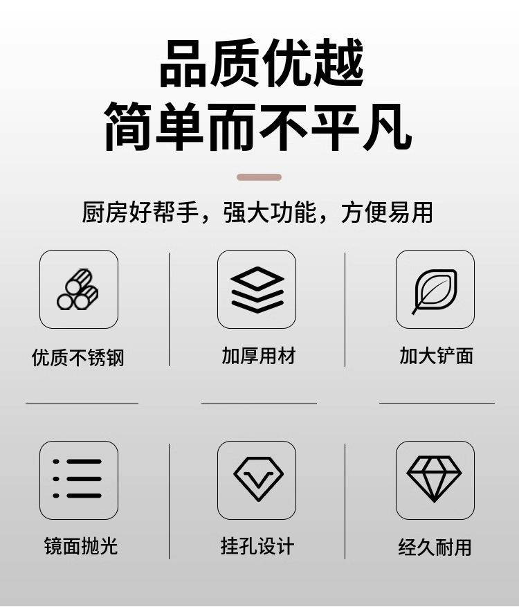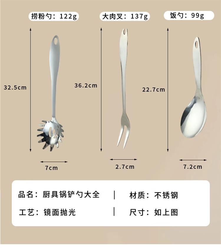 Spatula, Frying spatula, Spoon, Large colander, Rice spoon, Serving spoon, Dish drain, Two-tine fork, Powder
