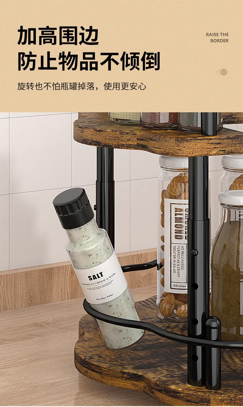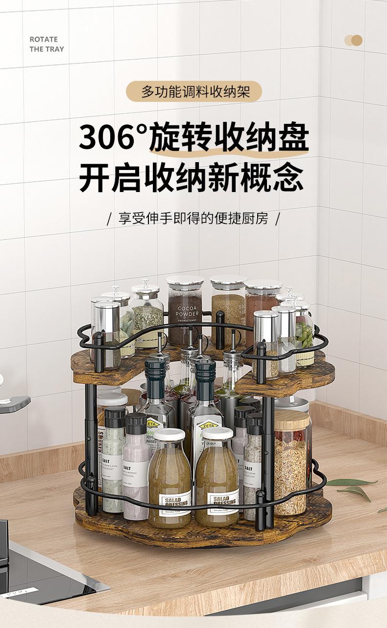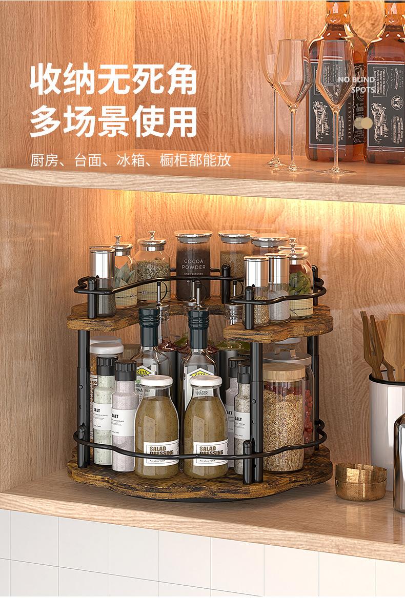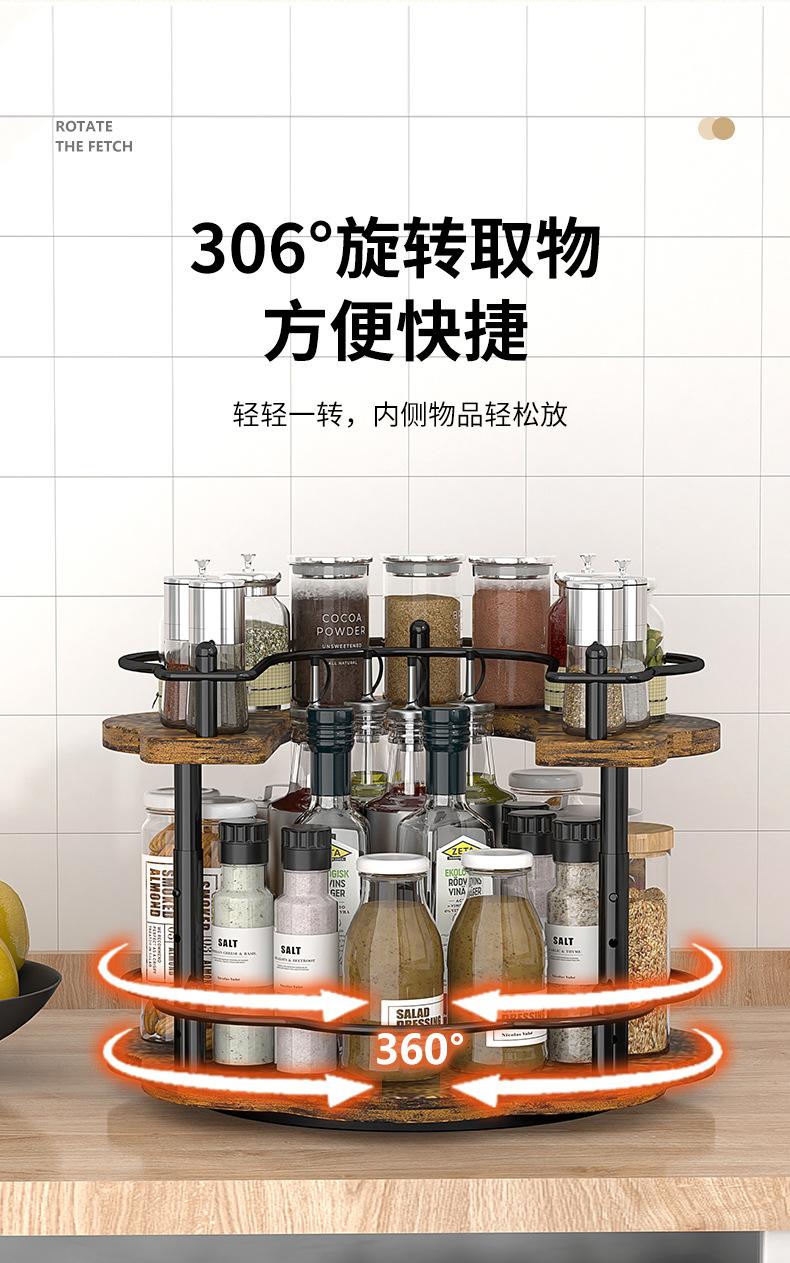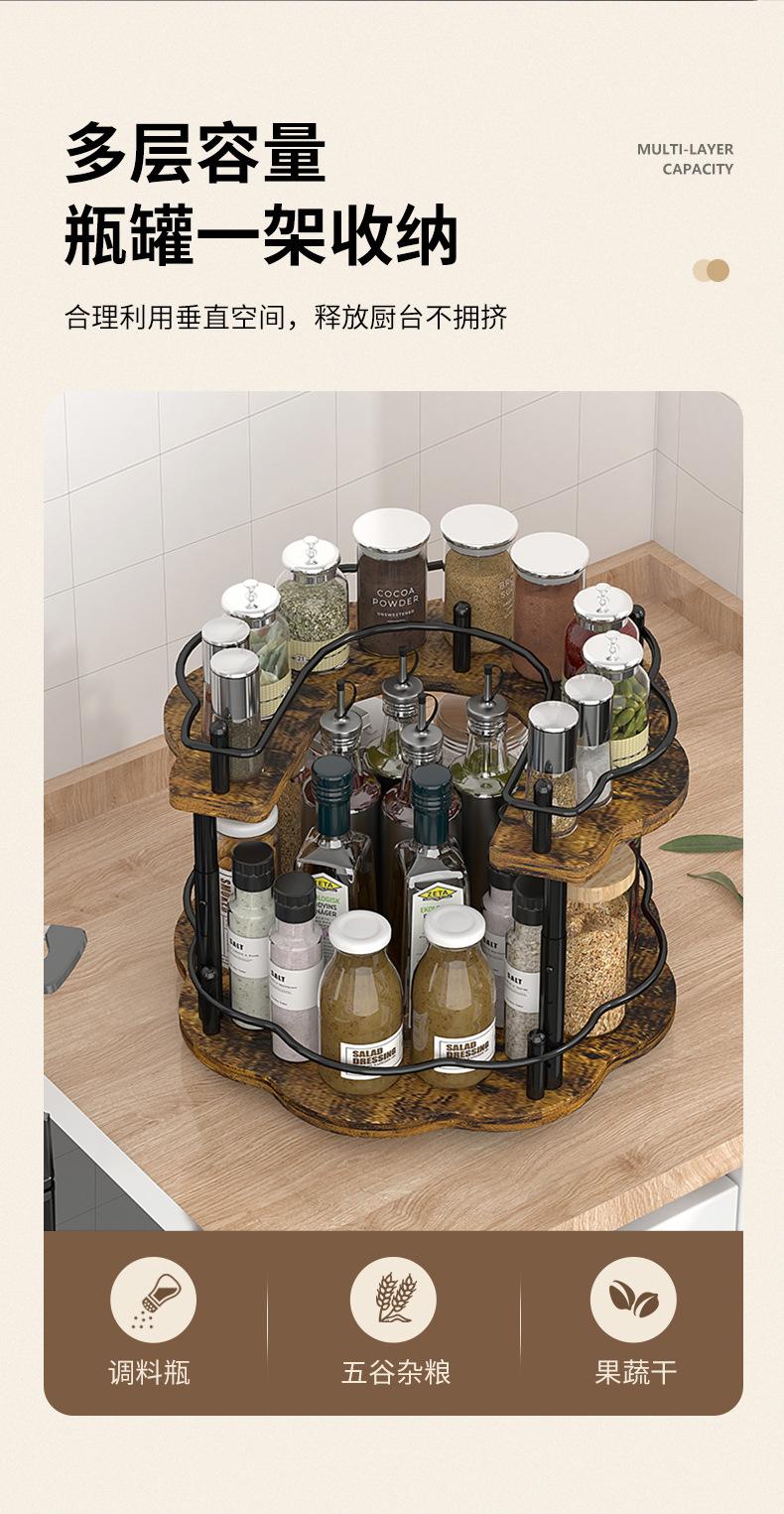 Estante giratorio de madera para almacenamiento de condimentos, dedicado para el mercado transfronterizo, cocina multifuncional, organizador para botellas de salsa, aceite, sal, salsa, vinagre