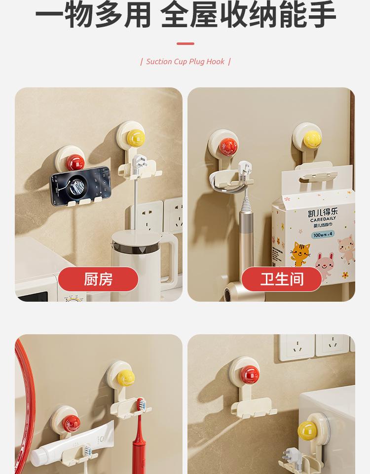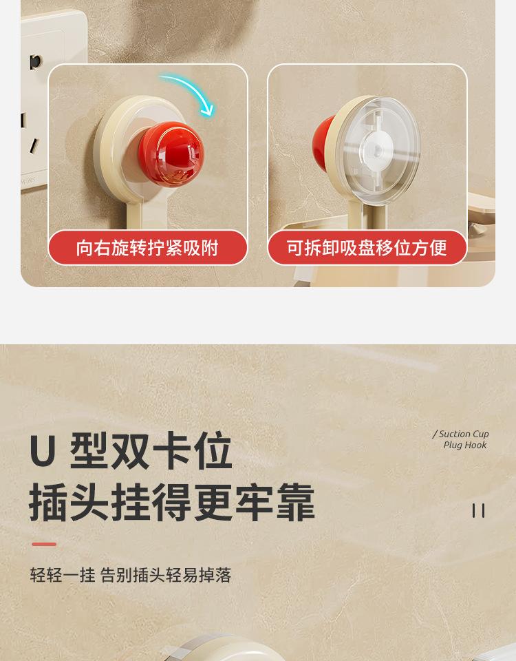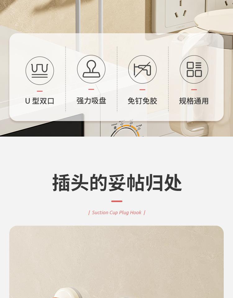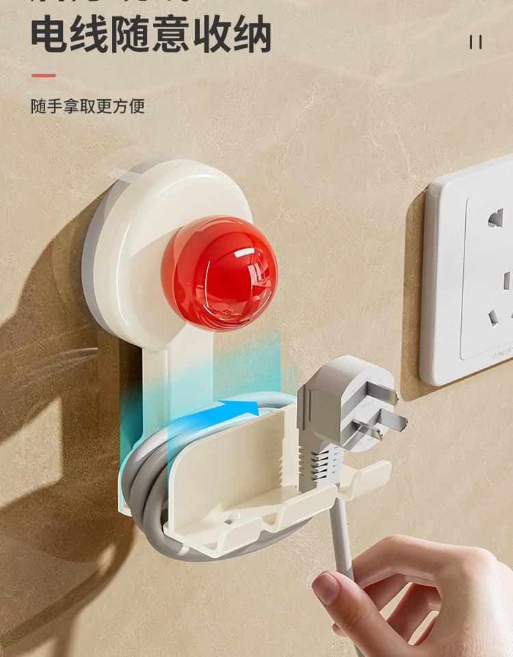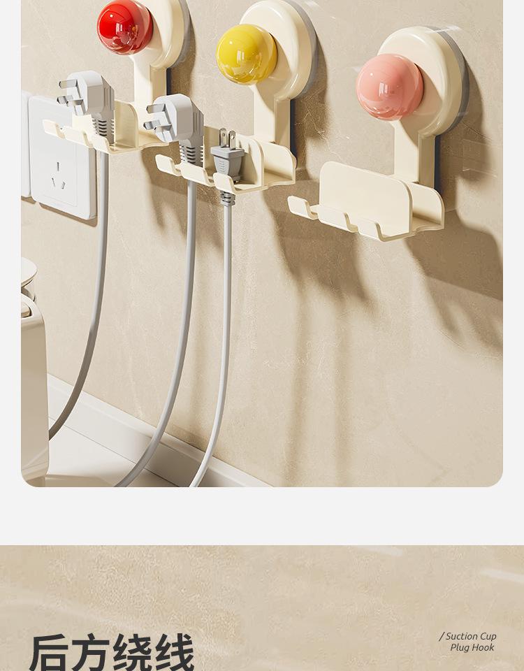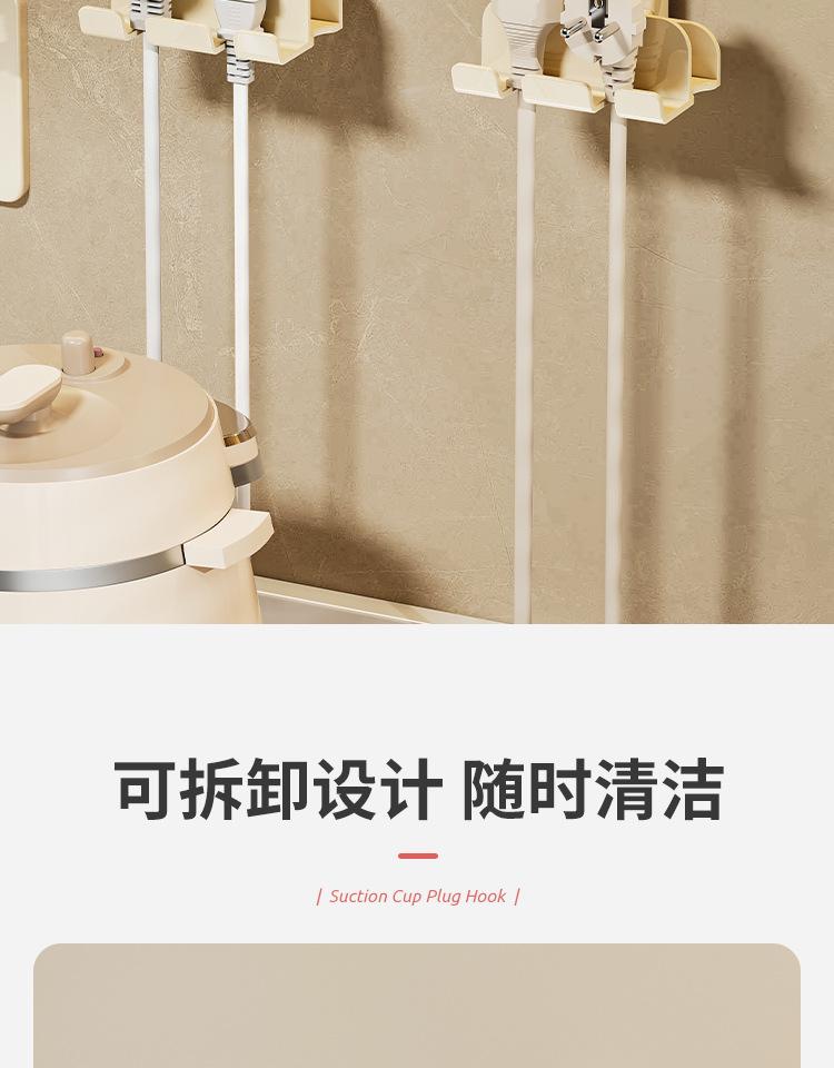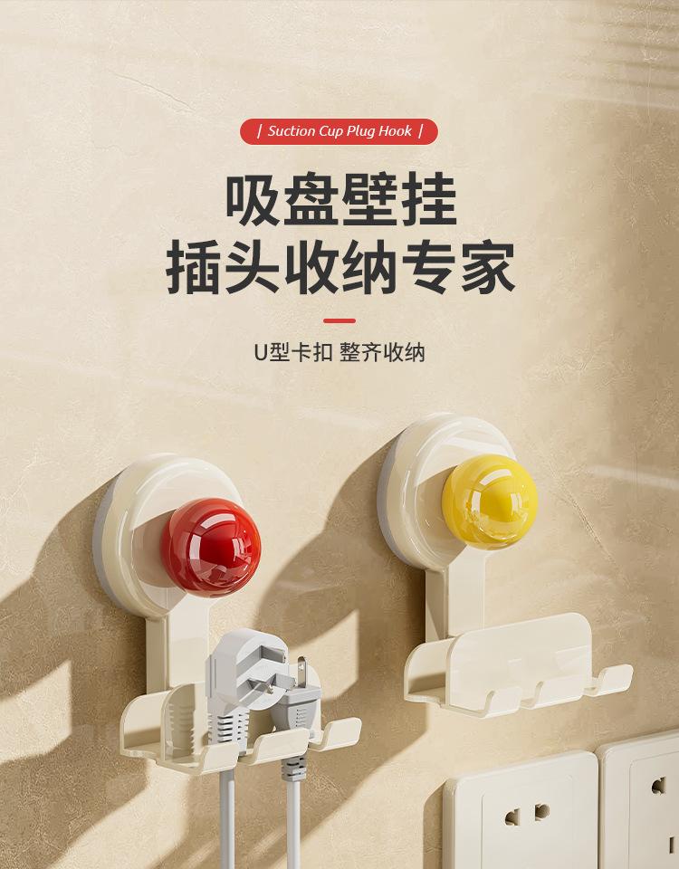 Soporte para Enchufes con Ventosa Montado en la Pared Sin Perforación Artefacto de Almacenamiento Anti-Aflojamiento Gancho para Enchufe de Cable de Alimentación de Electrodoméstico de Cocina