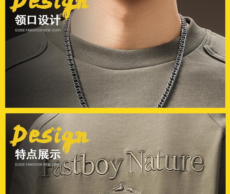 Sudadera de Cuello Redondo Cómoda de Gama Alta con Bordado de Letras para Hombre Otoño Nuevo Marca Americana de Moda Ajuste Relajado Top