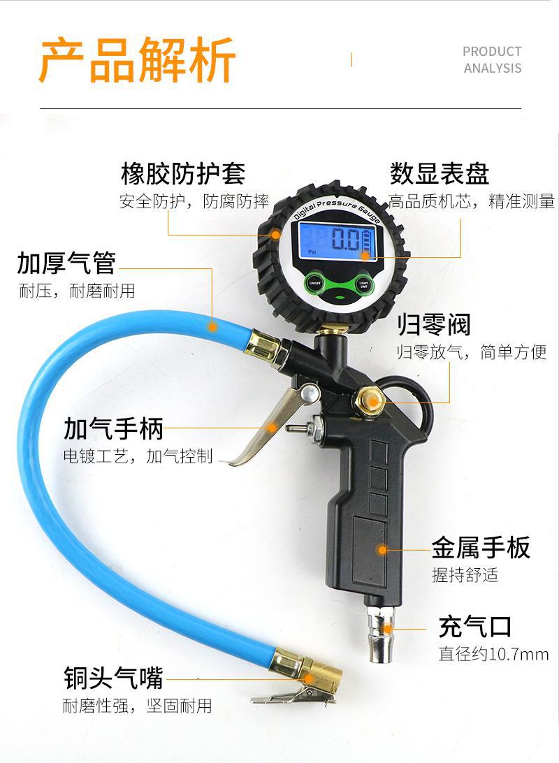 Medidor de presión de neumáticos barómetro de alta precisión con cabezal inflable, monitor de presión de neumáticos de automóvil, pantalla digital, medidor de llenado, pistola de aire
