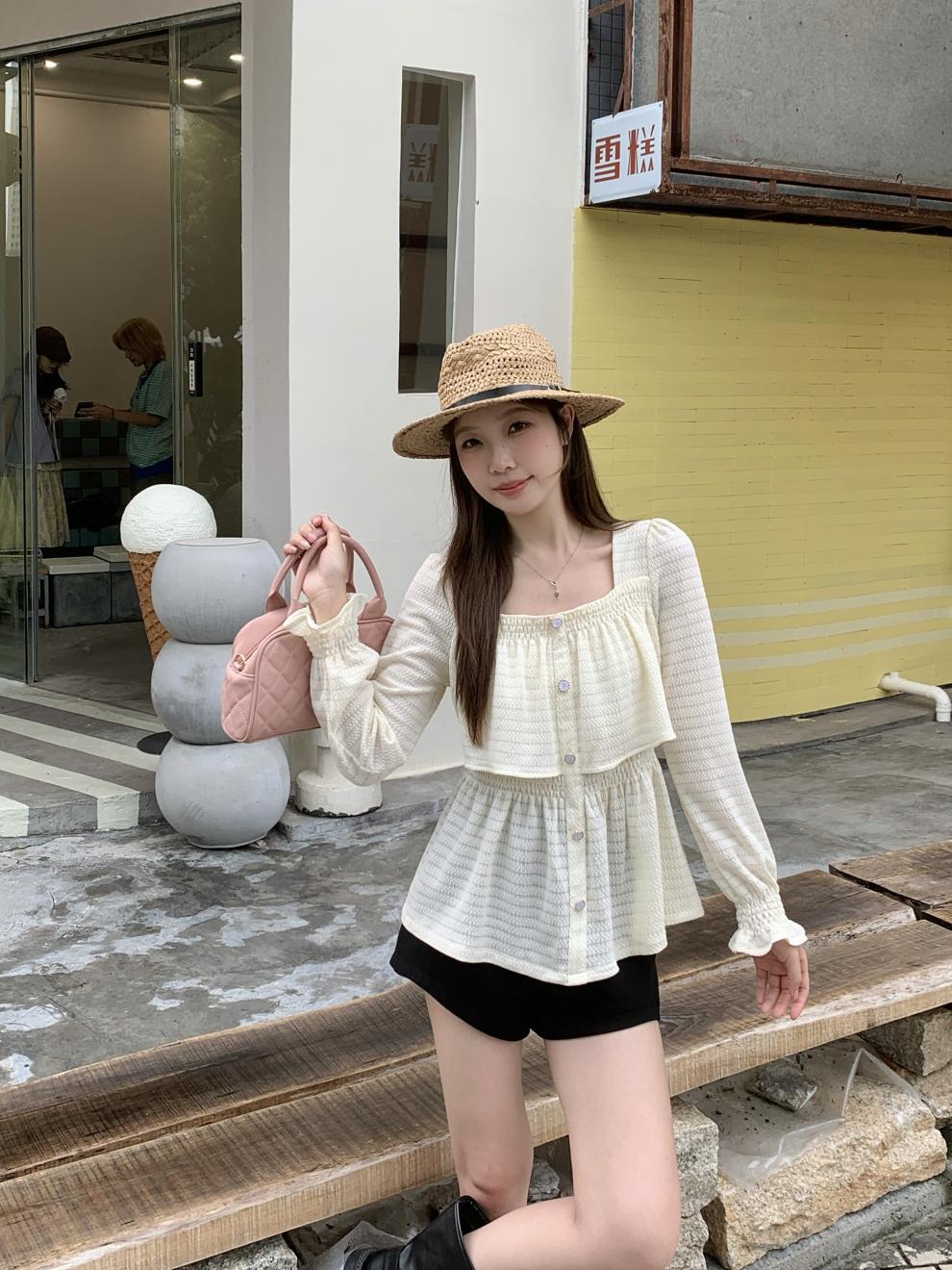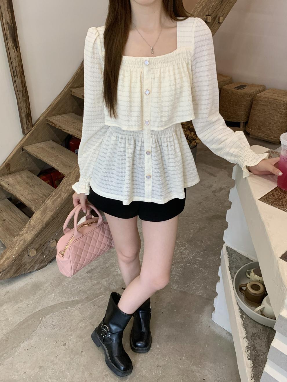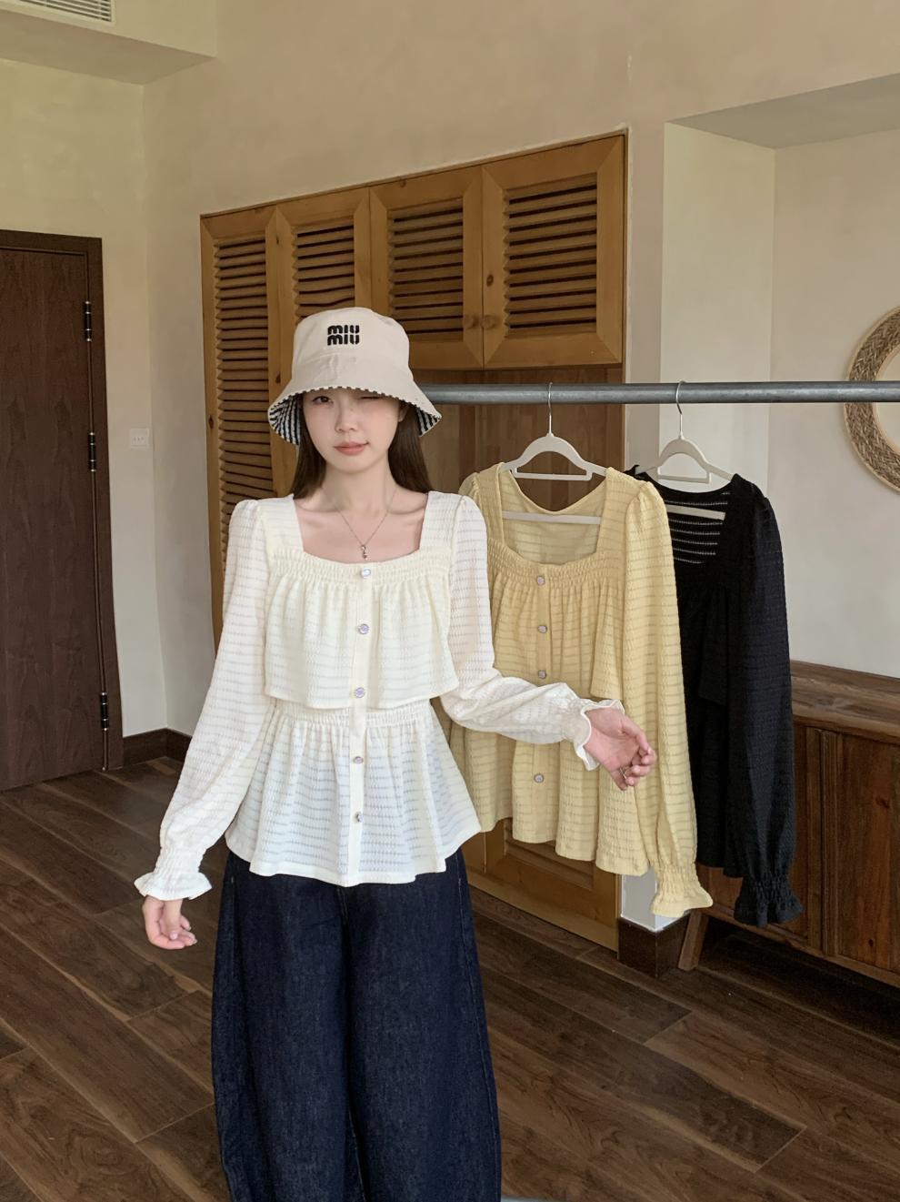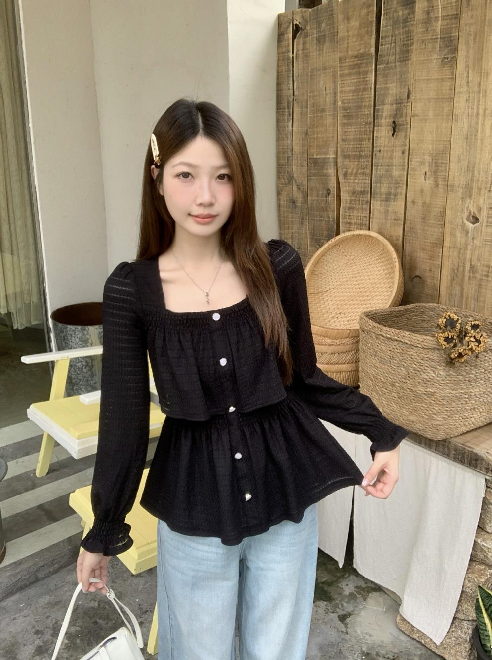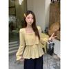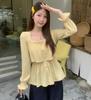 Compra Otoño 2025 Nuevo Gordo MM Talla Grande Mujer Temperamento Francés Cuello Cuadrado Calado Top Volante Manga Larga Blusa Delgada al por mayor en Joom.pro