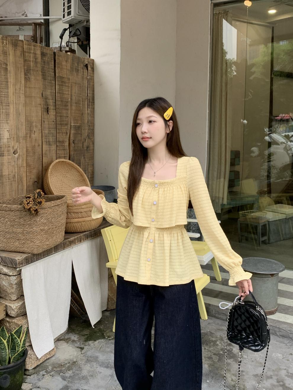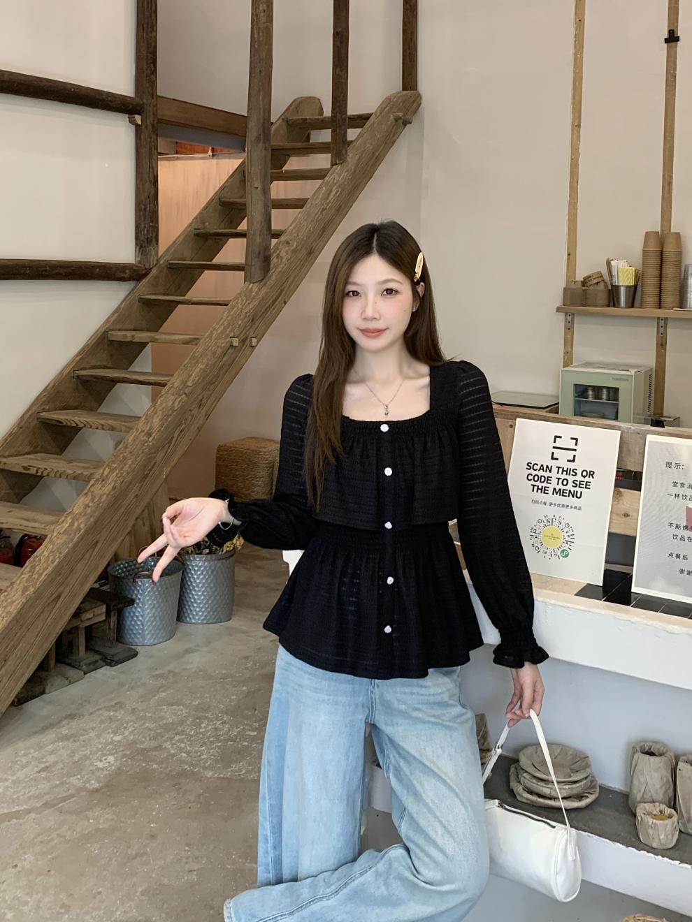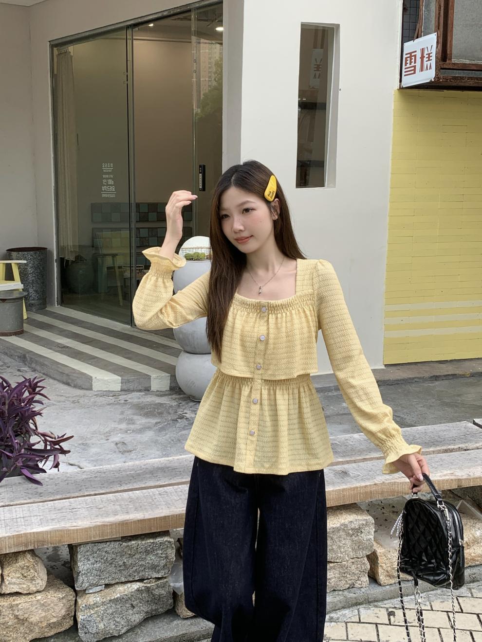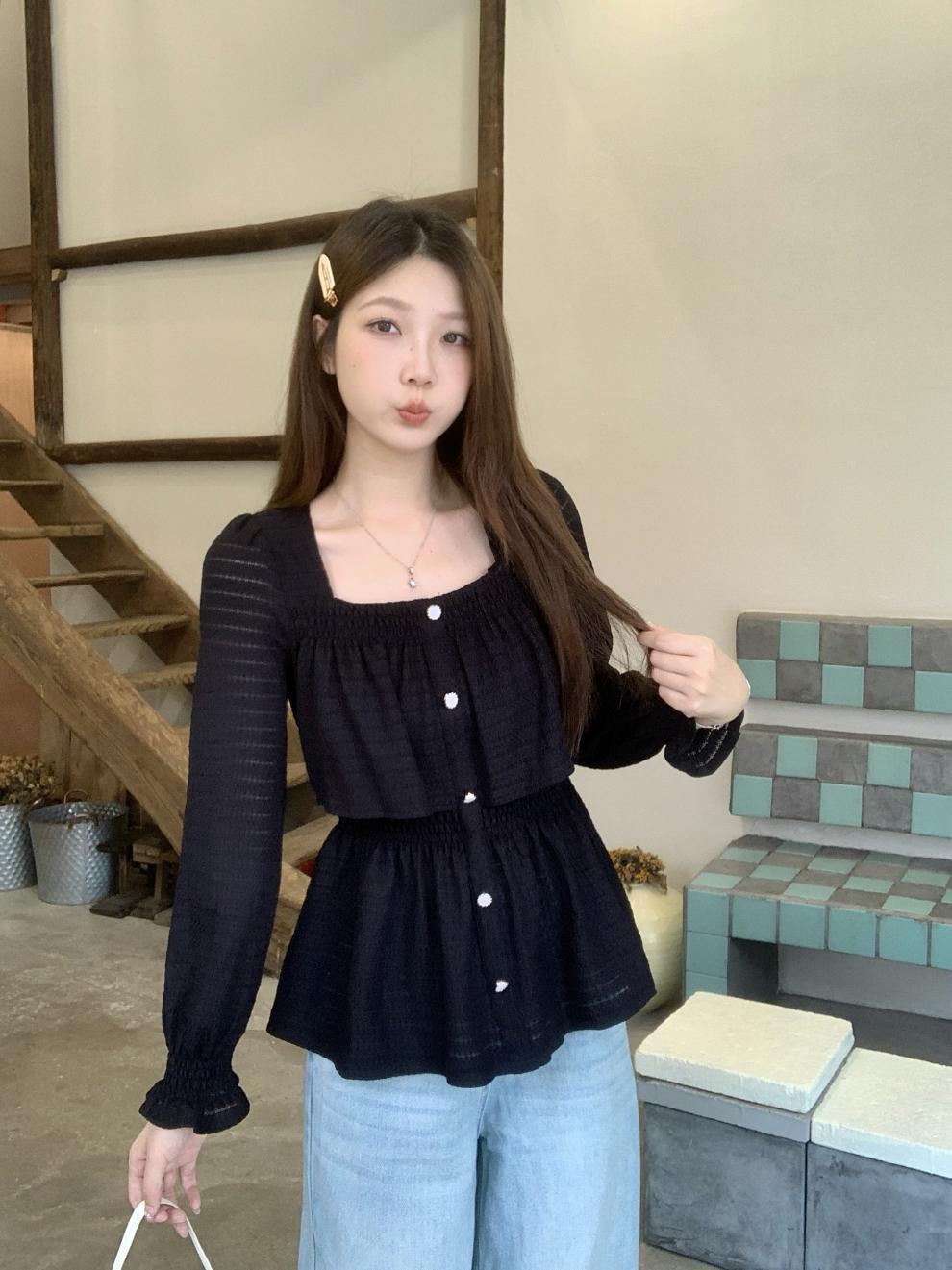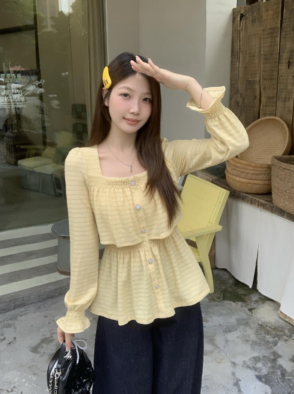 Compra Otoño 2025 Nuevo Gordo MM Talla Grande Mujer Temperamento Francés Cuello Cuadrado Calado Top Volante Manga Larga Blusa Delgada al por mayor en Joom.pro
