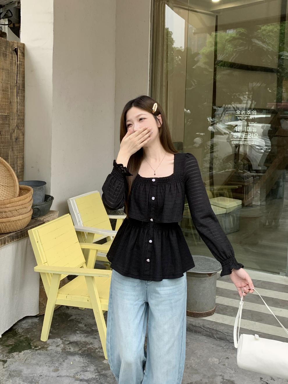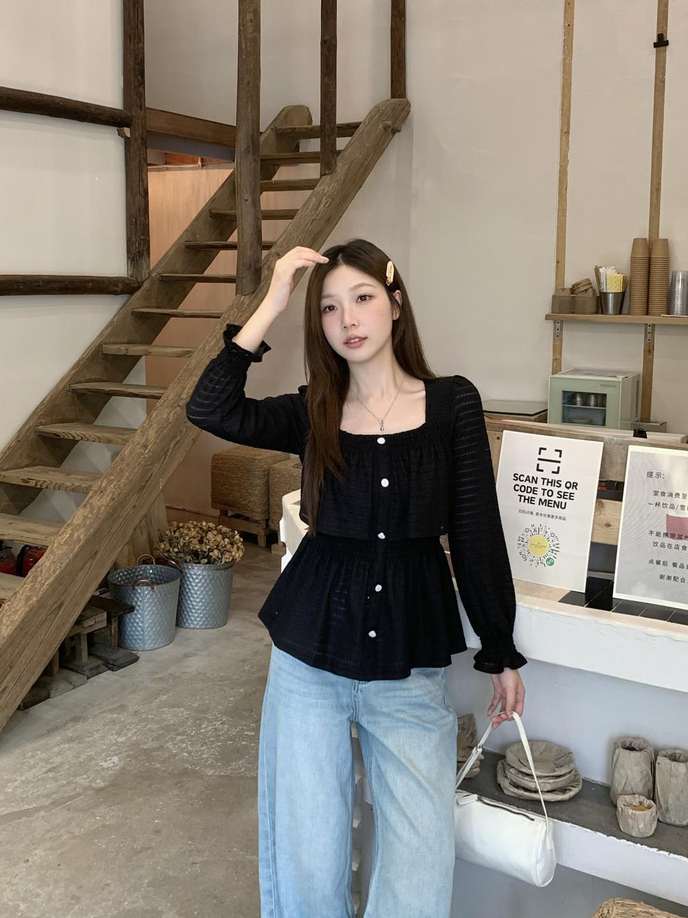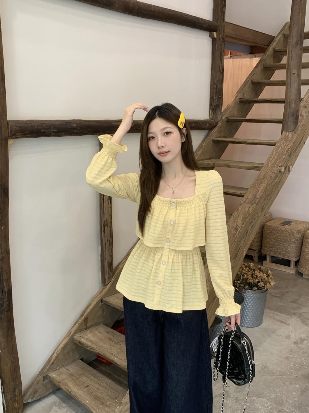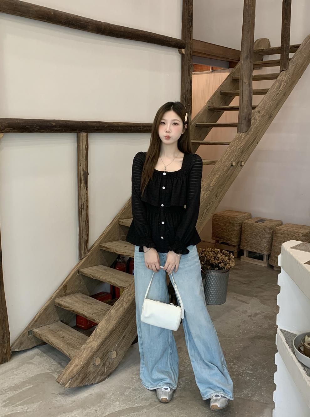 Compra Otoño 2025 Nuevo Gordo MM Talla Grande Mujer Temperamento Francés Cuello Cuadrado Calado Top Volante Manga Larga Blusa Delgada al por mayor en Joom.pro