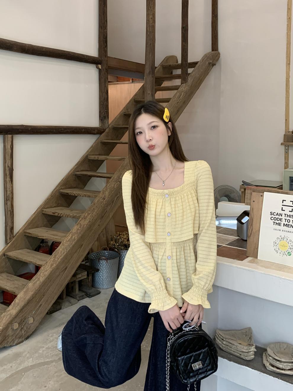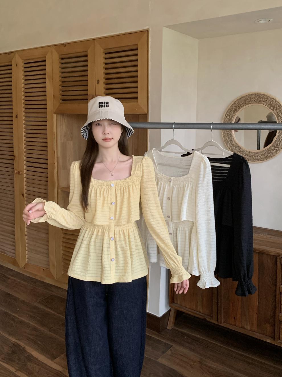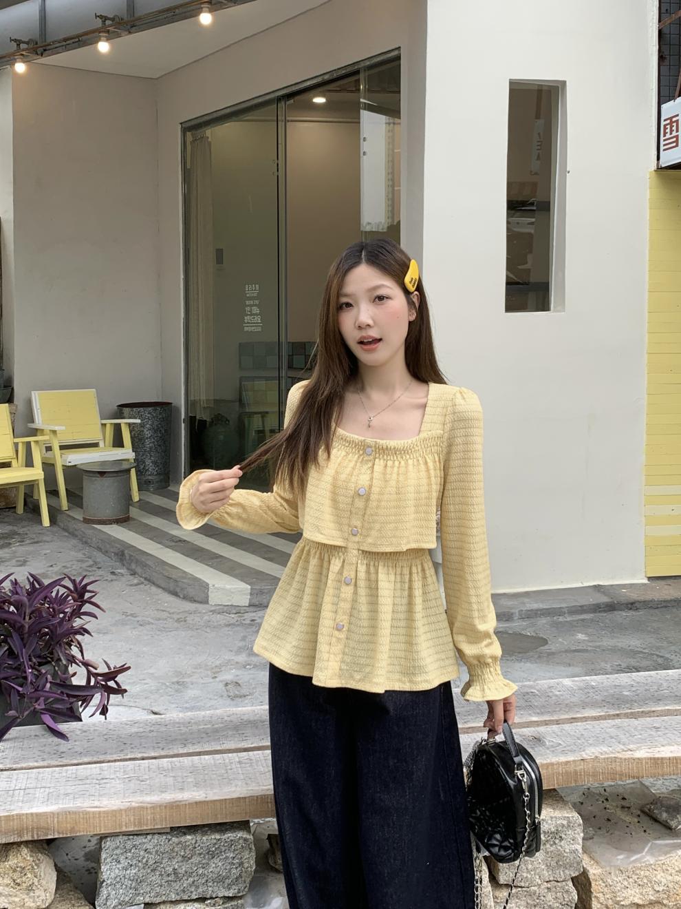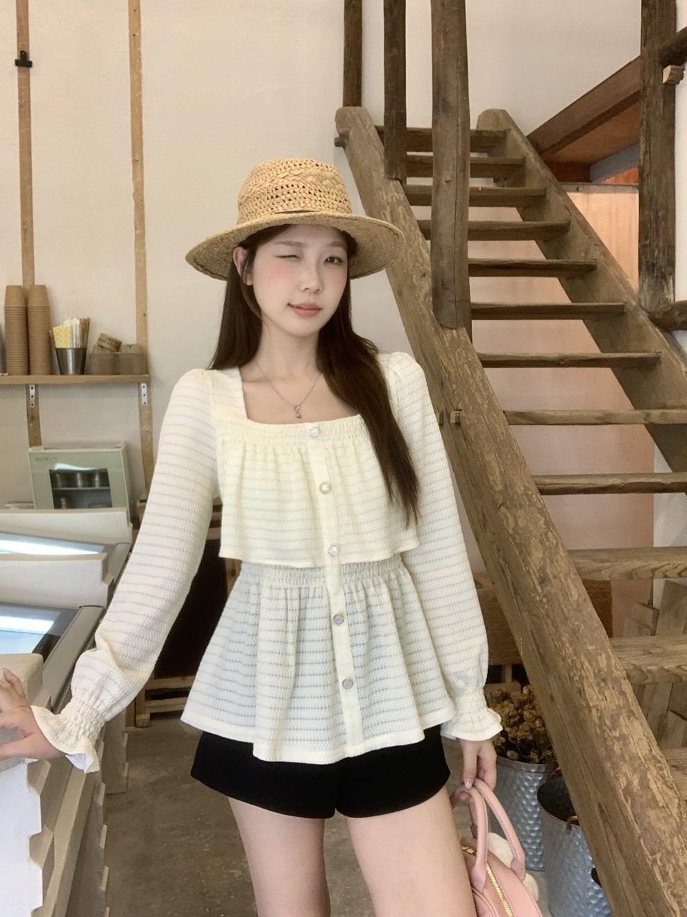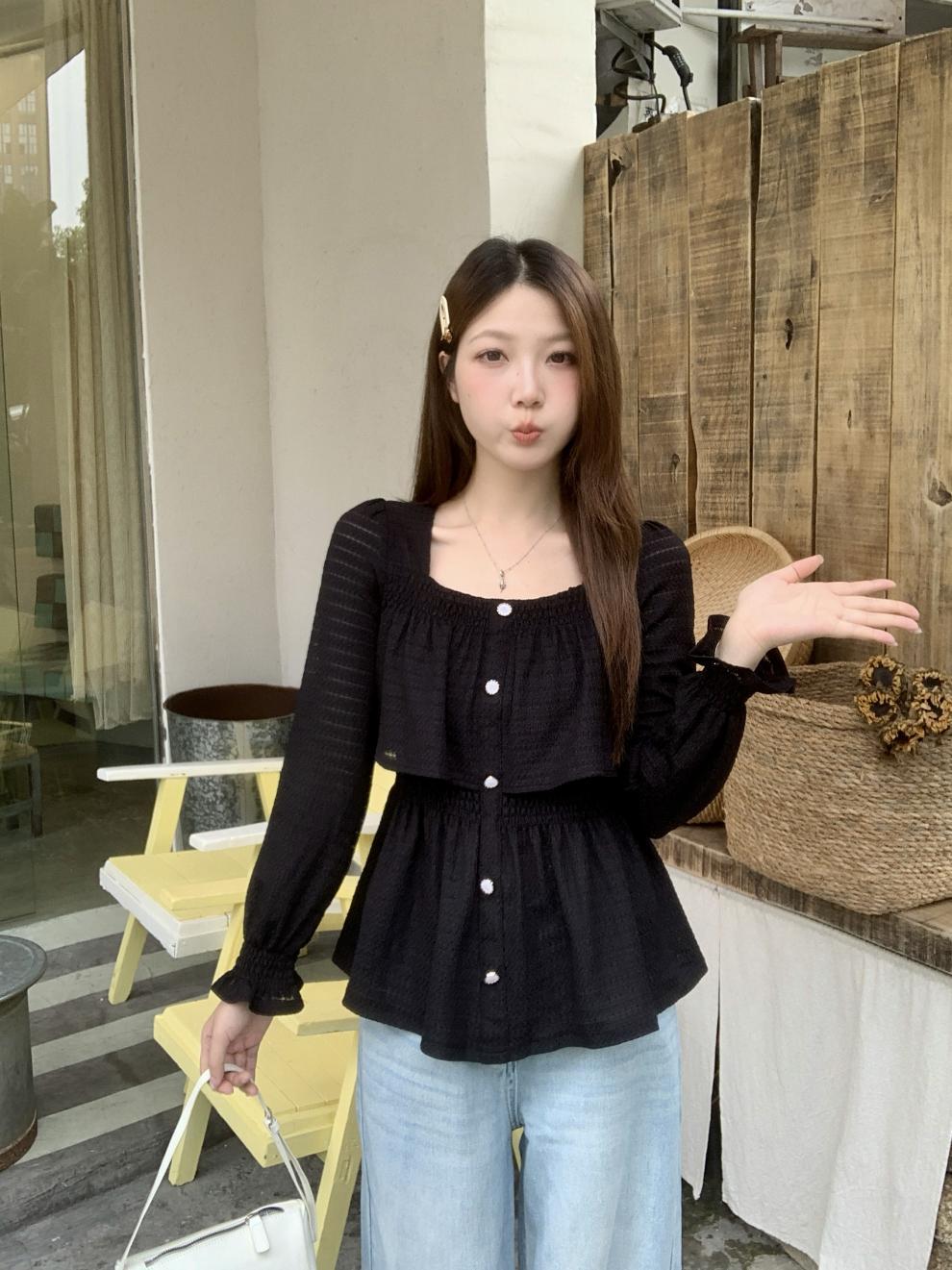 Compra Otoño 2025 Nuevo Gordo MM Talla Grande Mujer Temperamento Francés Cuello Cuadrado Calado Top Volante Manga Larga Blusa Delgada al por mayor en Joom.pro