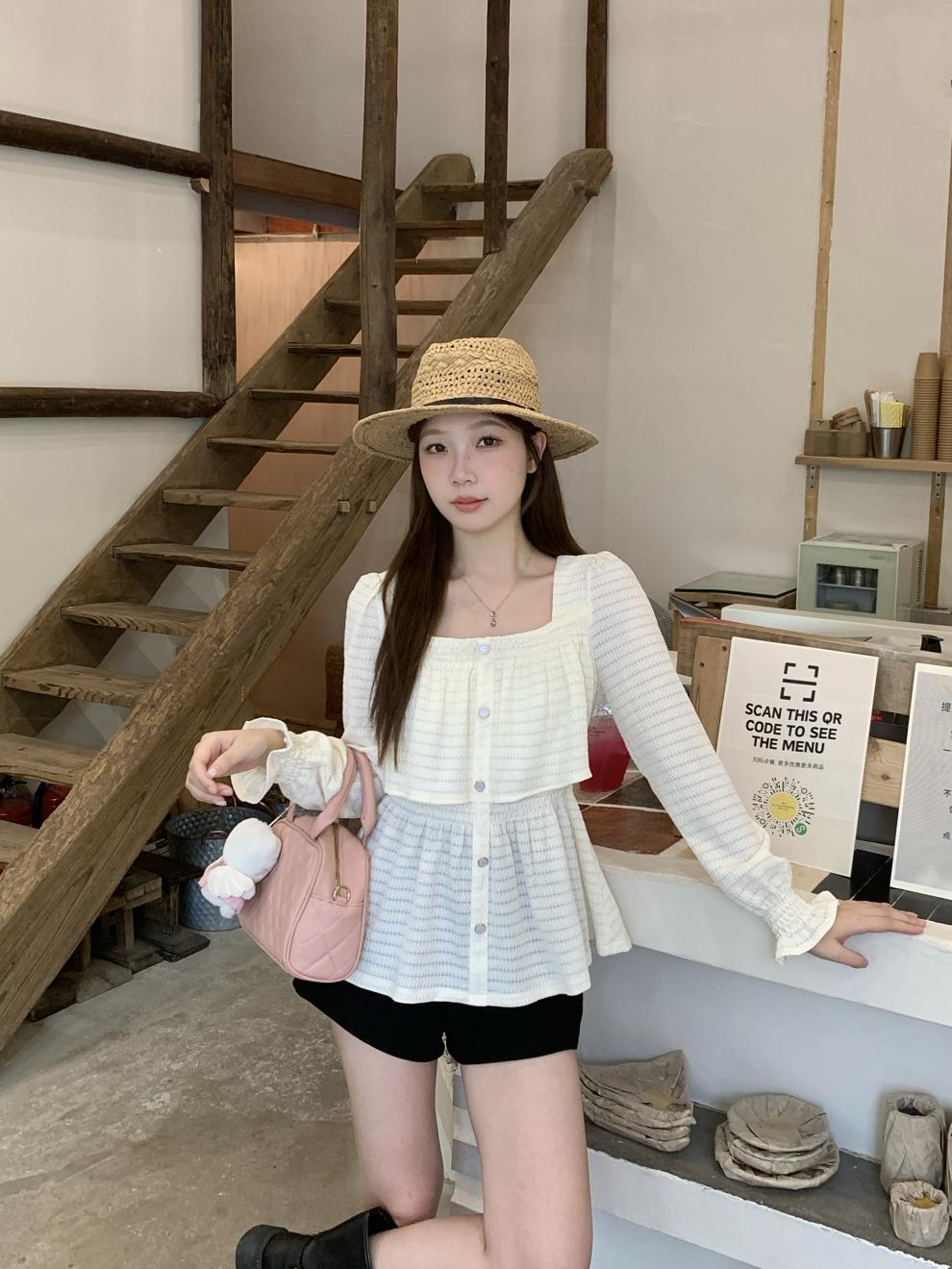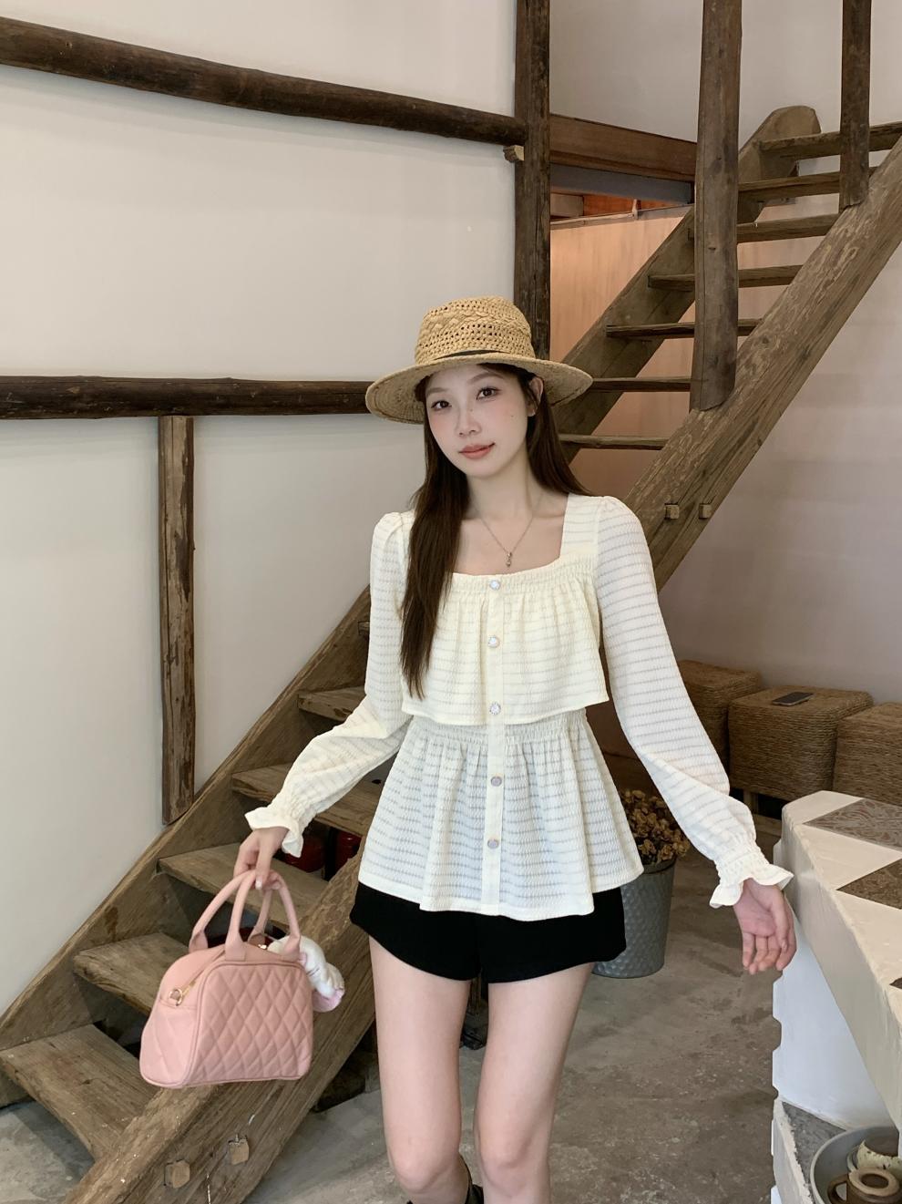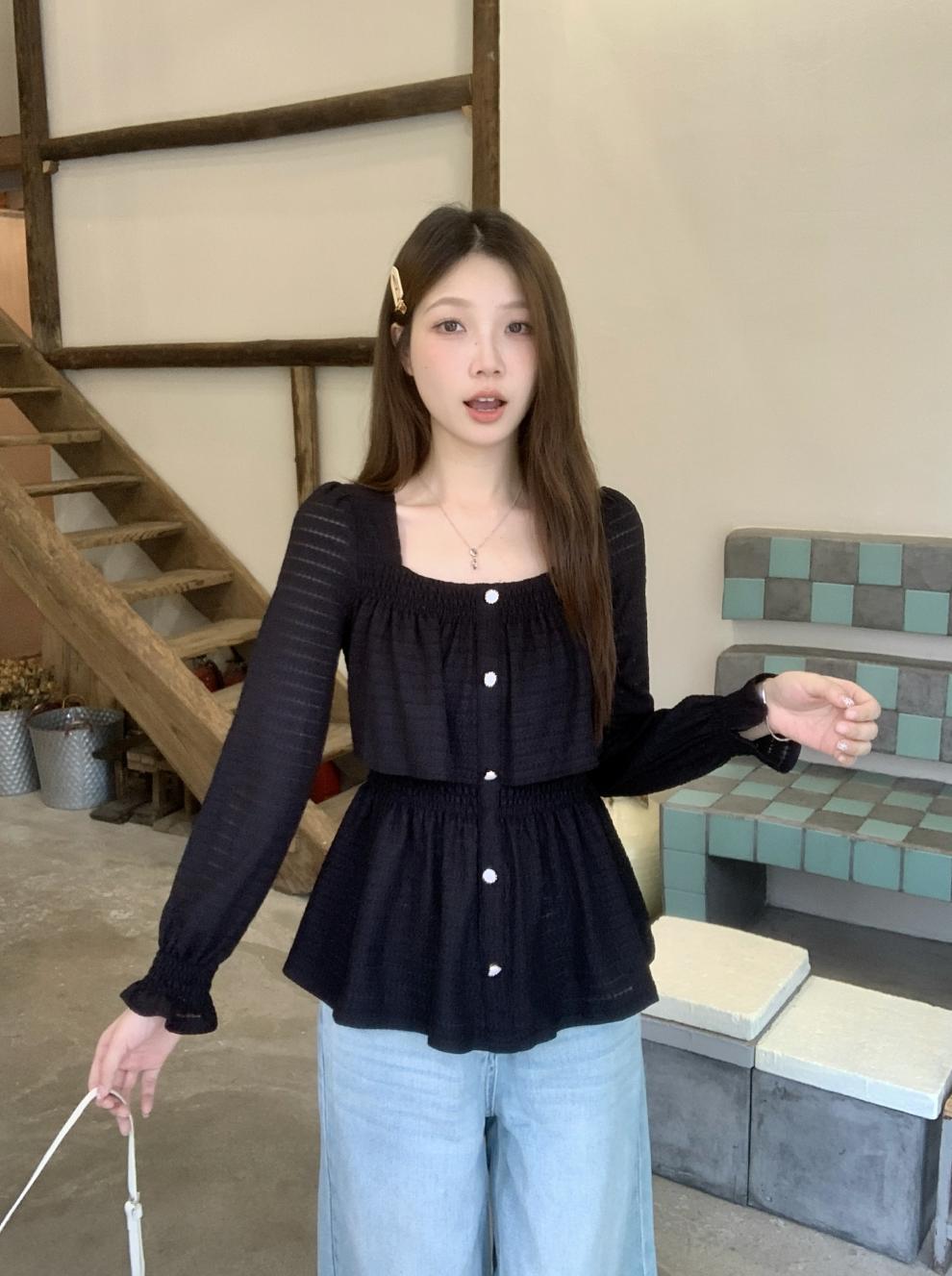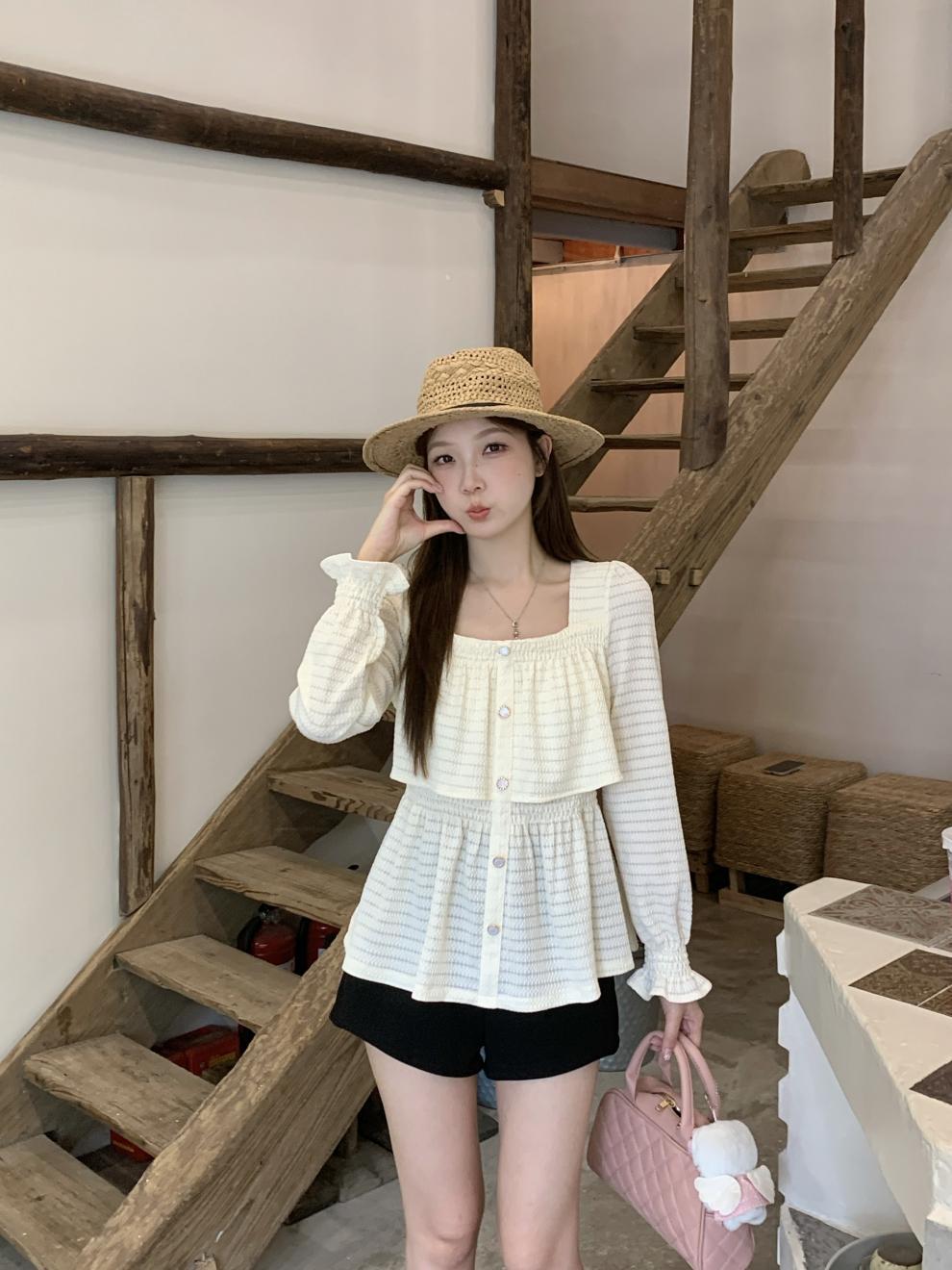 Compra Otoño 2025 Nuevo Gordo MM Talla Grande Mujer Temperamento Francés Cuello Cuadrado Calado Top Volante Manga Larga Blusa Delgada al por mayor en Joom.pro
