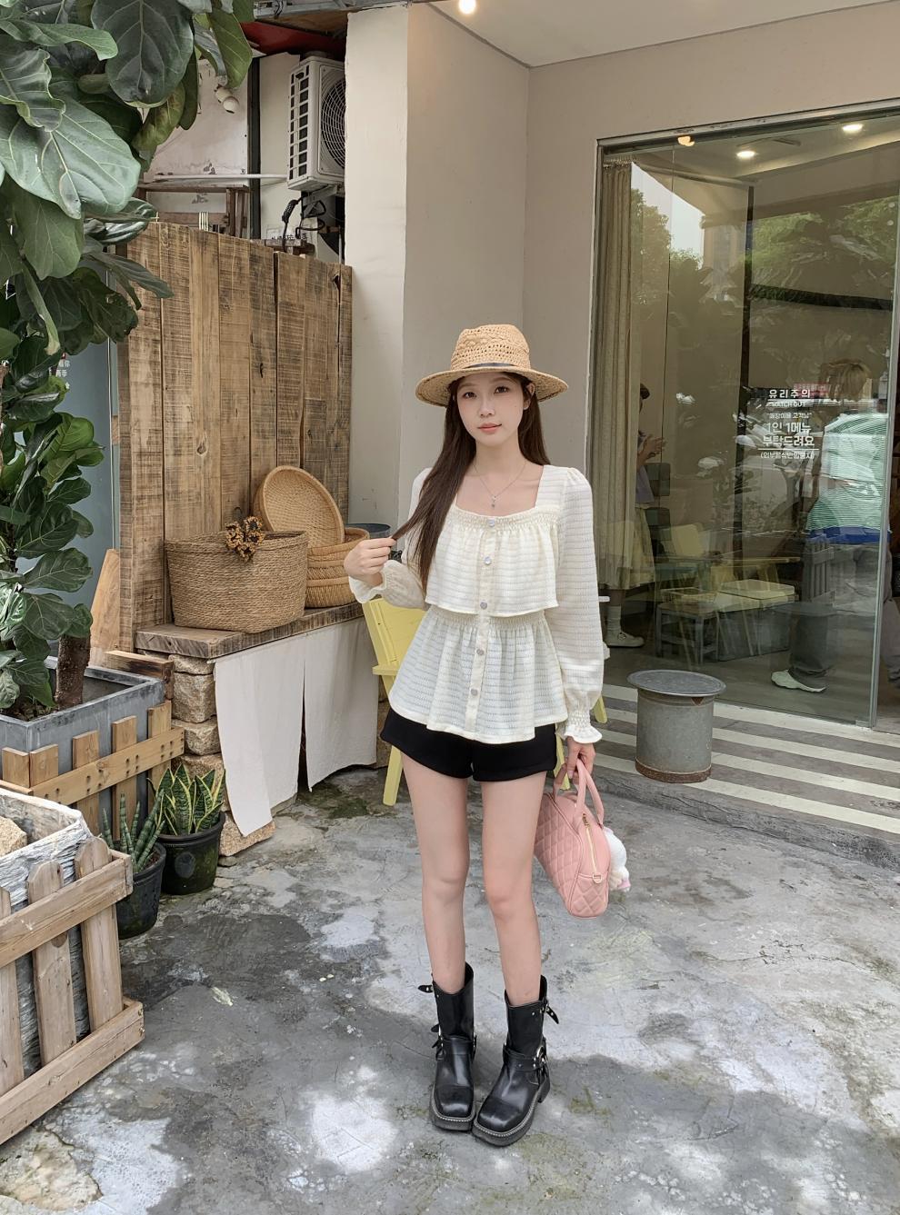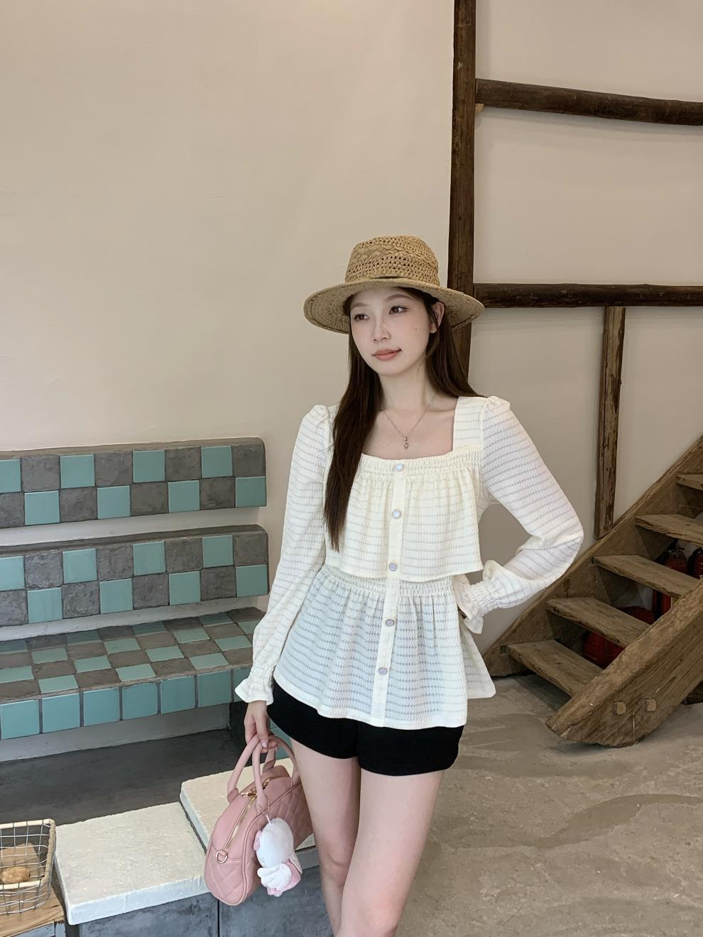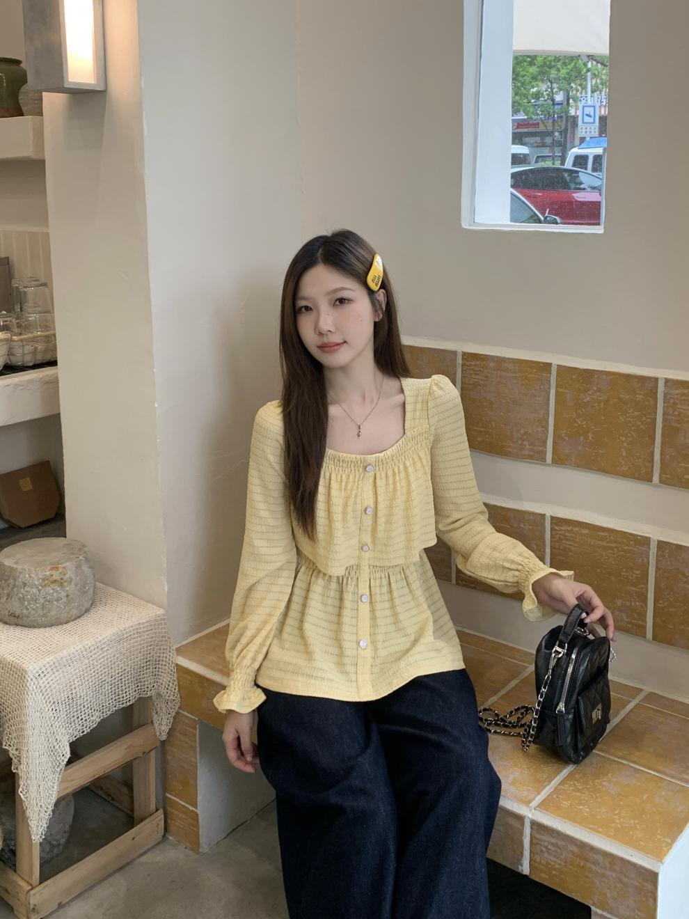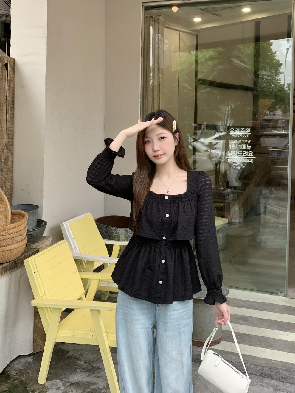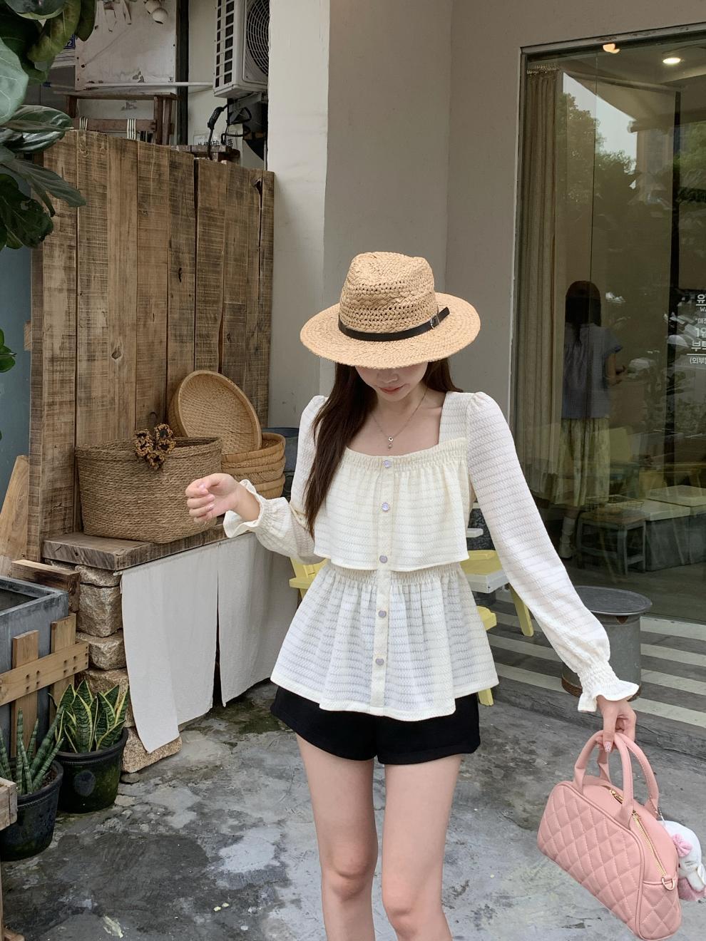 Compra Otoño 2025 Nuevo Gordo MM Talla Grande Mujer Temperamento Francés Cuello Cuadrado Calado Top Volante Manga Larga Blusa Delgada al por mayor en Joom.pro