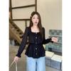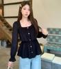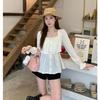 Otoño 2025 Nuevo Gordo MM Talla Grande Mujer Temperamento Francés Cuello Cuadrado Calado Top Volante Manga Larga Blusa Delgada
