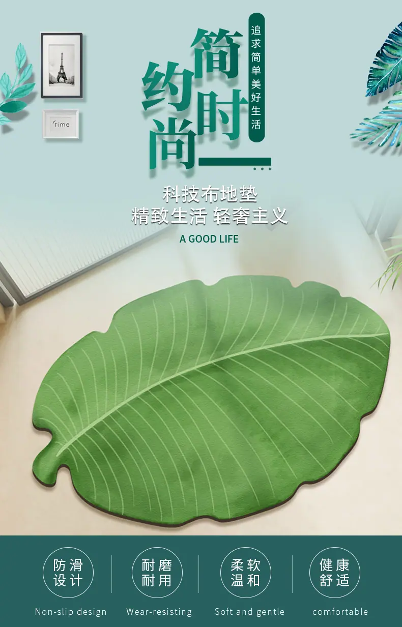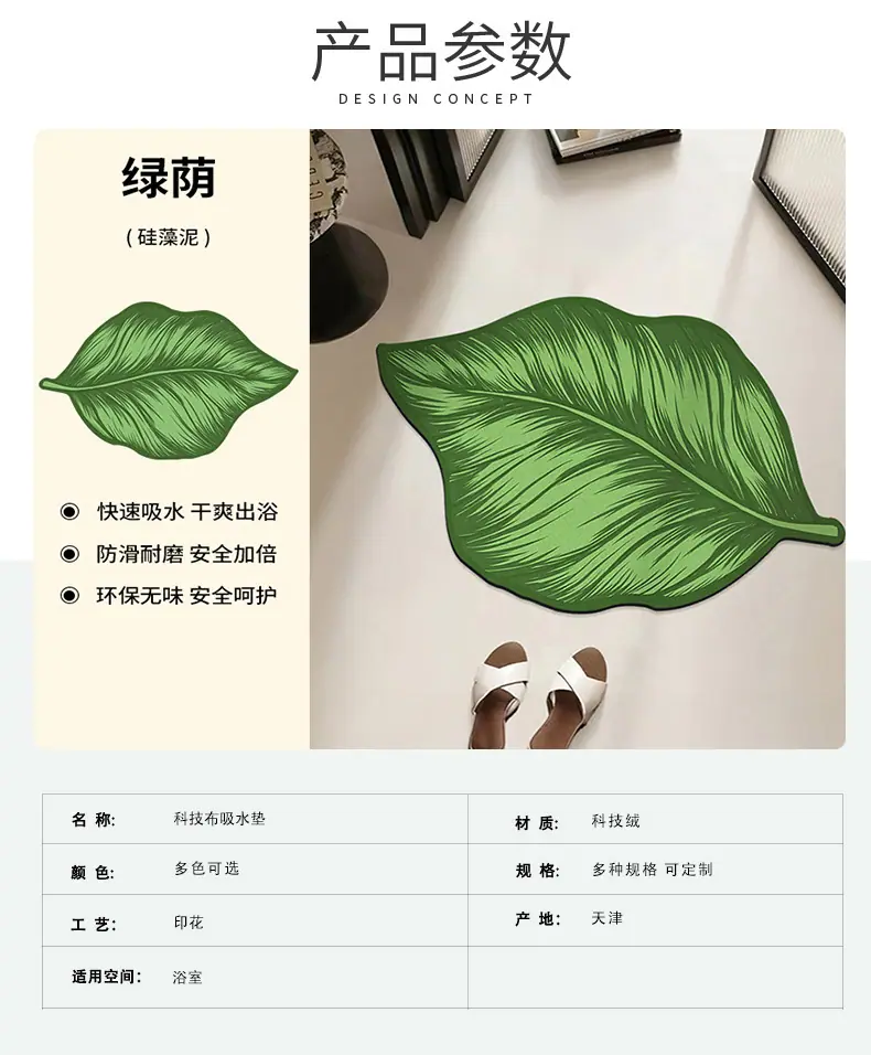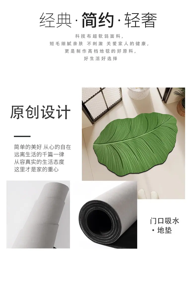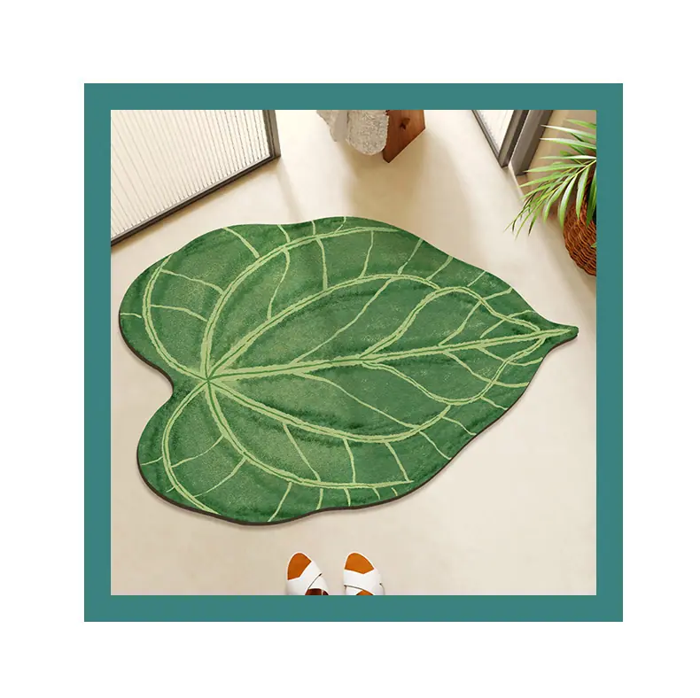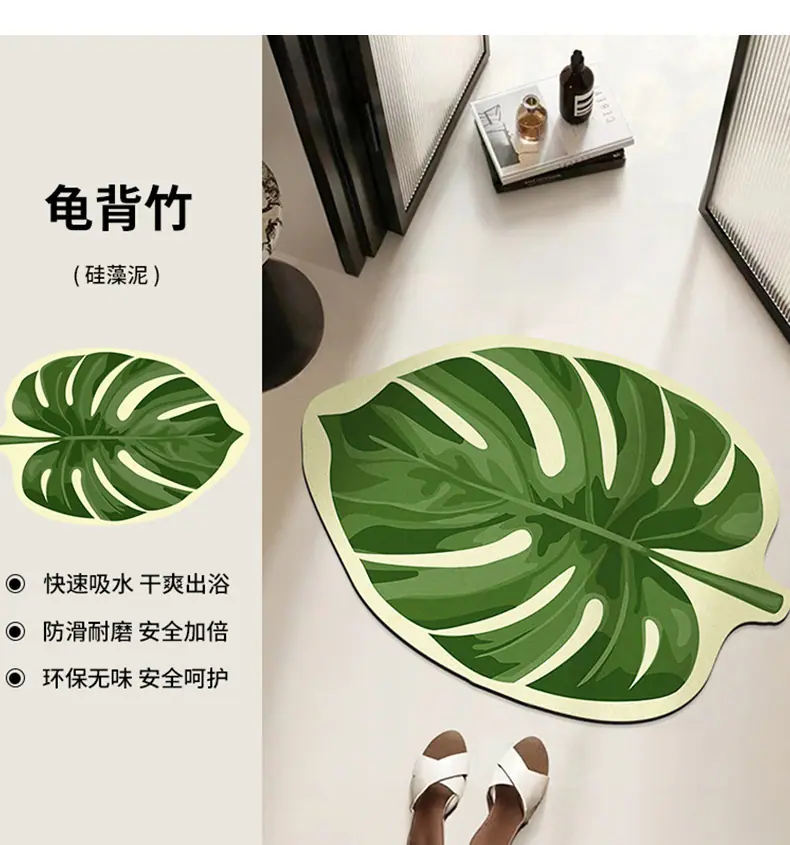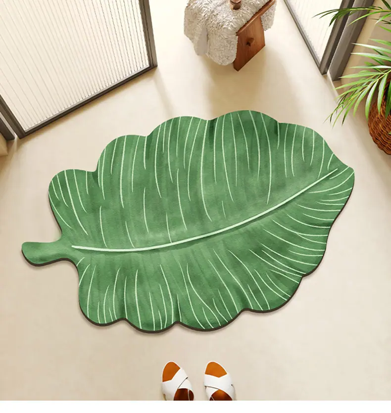 Alfombra de Piso Moderna Estilo Ing Hoja Verde Tierra de Diatomeas Baño Absorbente de Agua Antideslizante Cuidado Fácil Alfombra para Pies Entrada Alfombra Resistente a las Manchas