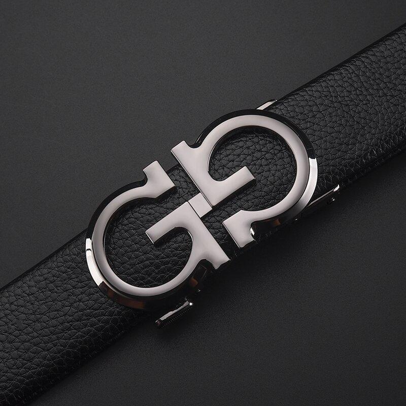 Pantalones Casuales de Negocios Cinturón Versátil Minimalista para Hombre Popular Hebilla Automática Aleación Letra Cinturón de Cuero