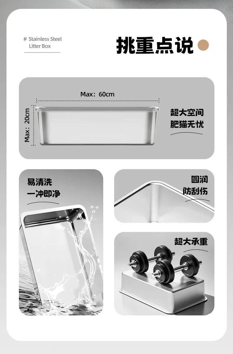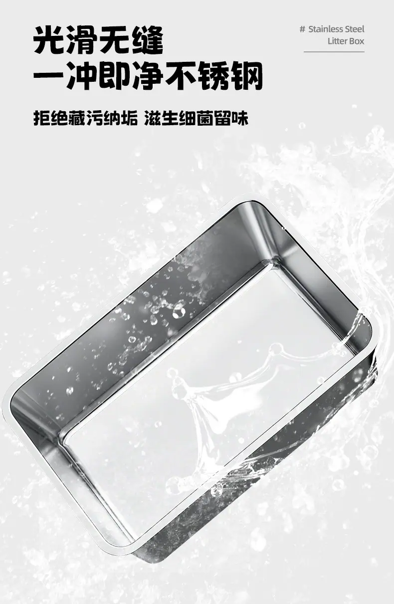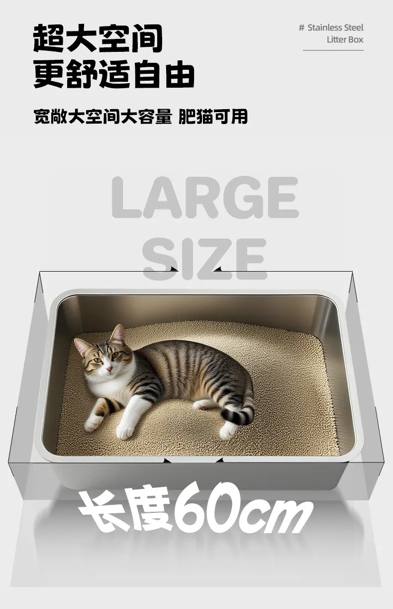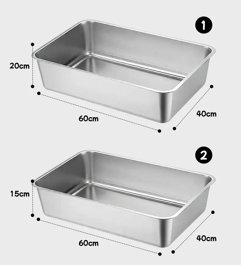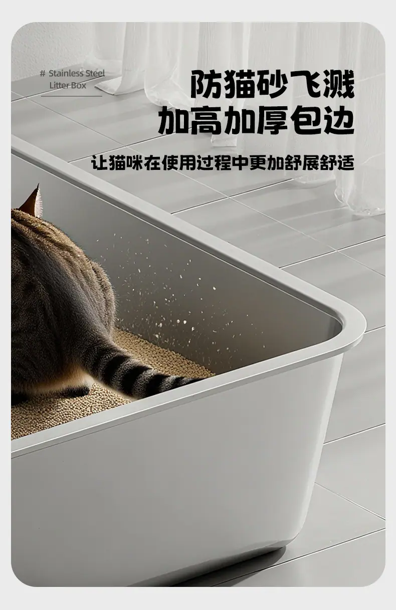 Caja de Arena para Gatos de Acero Inoxidable Antisalpicaduras Antiolor Gigante Extragrande Profundizada Abierta Inodoro para Gatos Bandeja para Popó Gato Fácil Limpieza