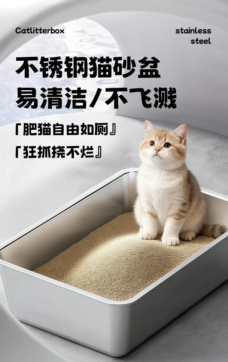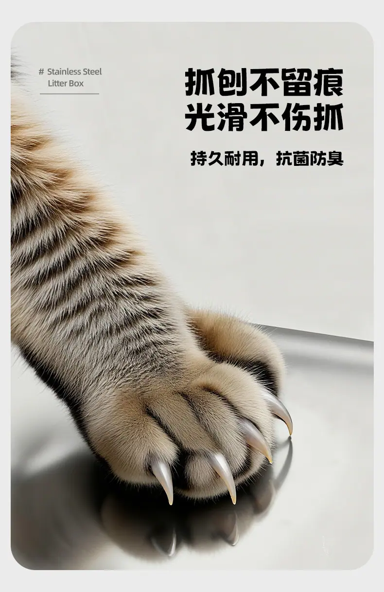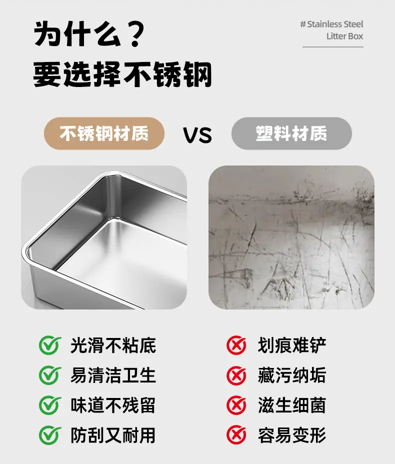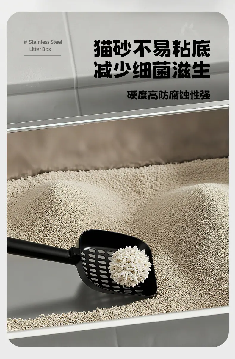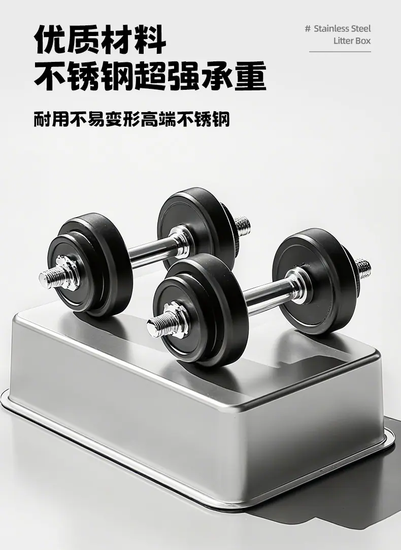 Caja de Arena para Gatos de Acero Inoxidable Antisalpicaduras Antiolor Gigante Extragrande Profundizada Abierta Inodoro para Gatos Bandeja para Popó Gato Fácil Limpieza