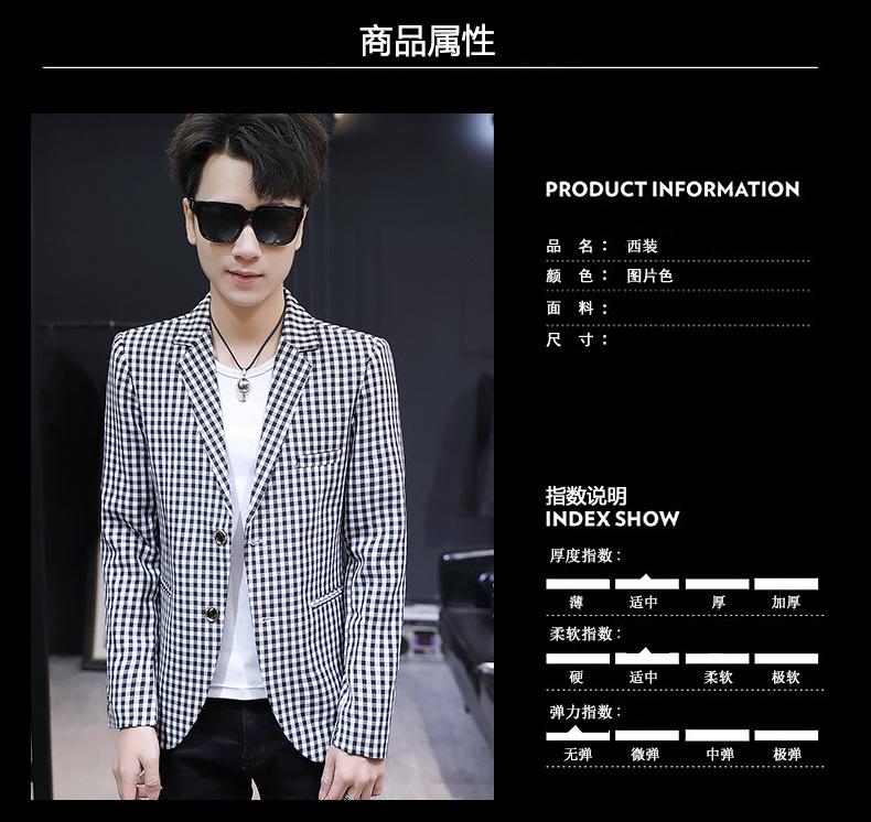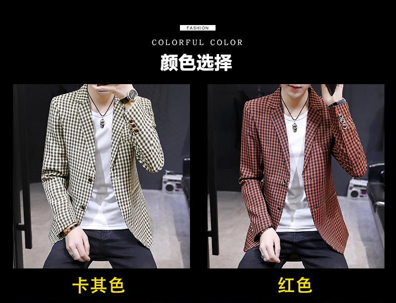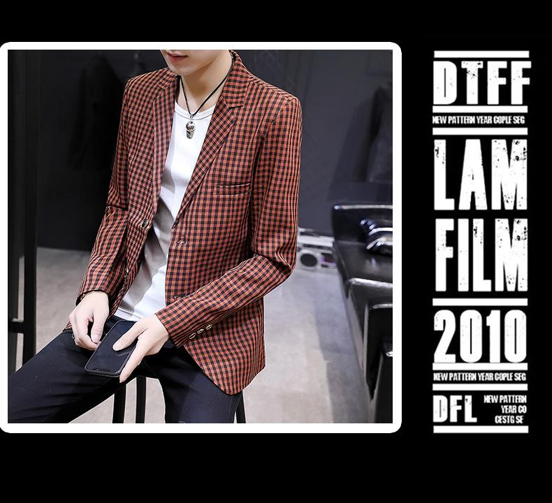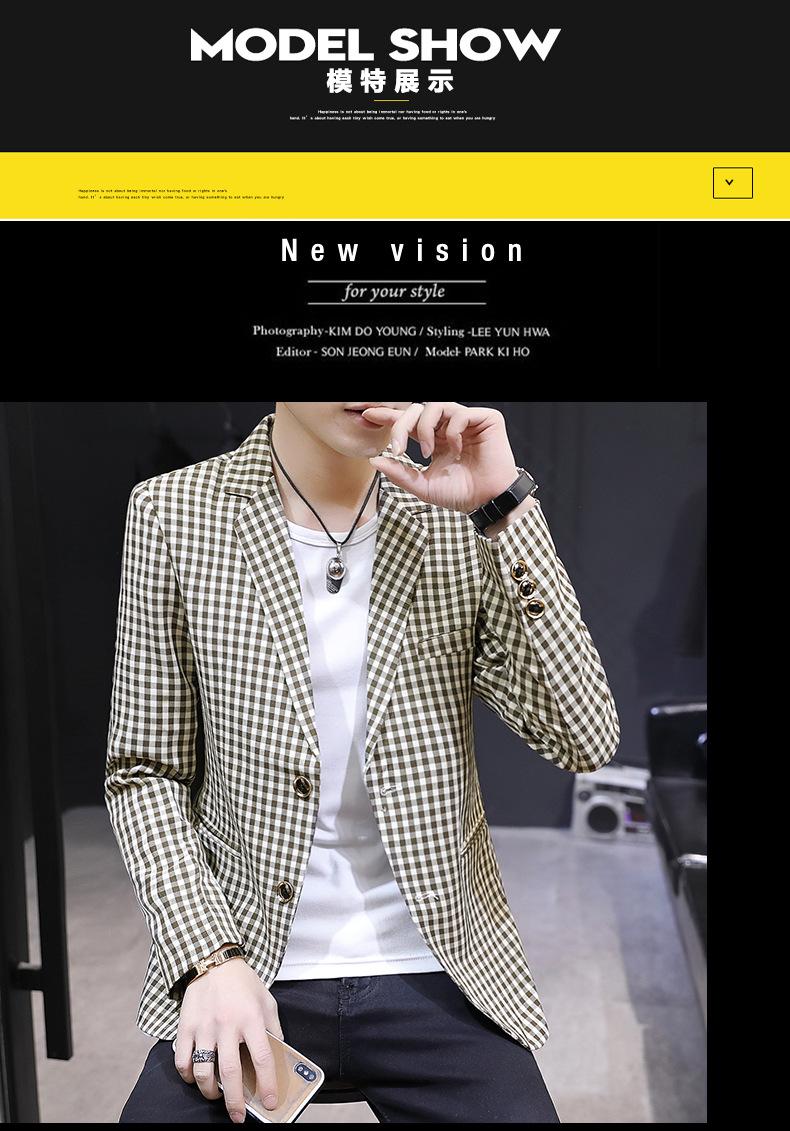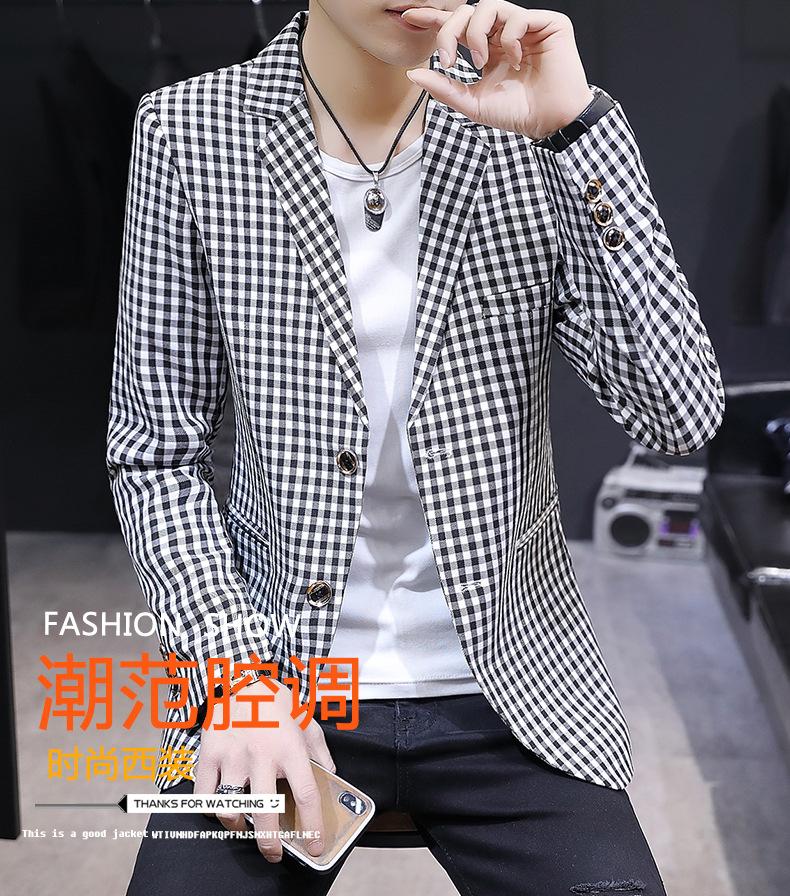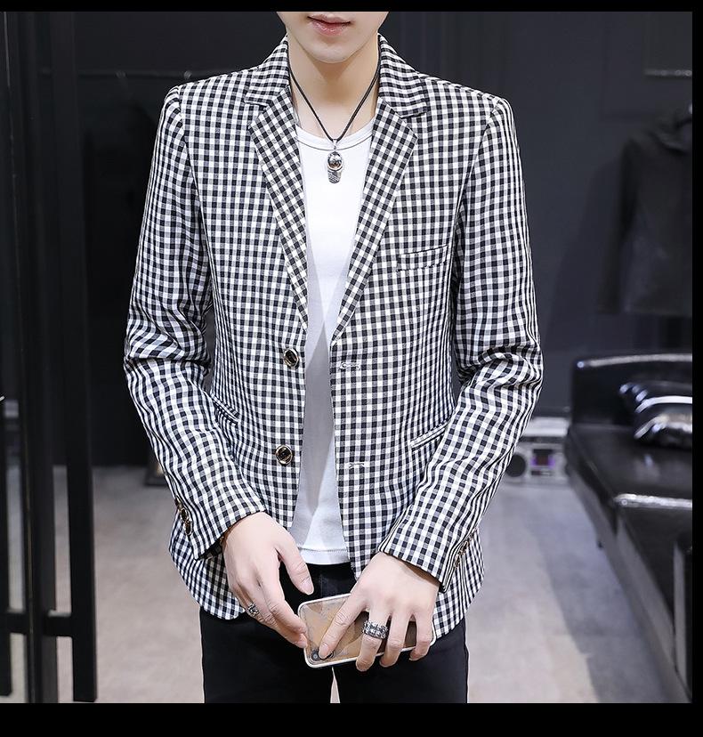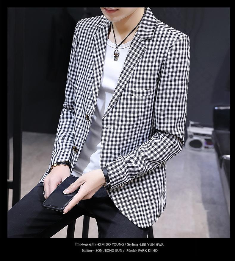 Traje Casual para Hombre Ropa Casual Casual Estilo Coreano Guapo Moderno Ajustado Personalidad Cuadros Traje Pequeño Moderno Soltero Occidental Top Chaqueta
