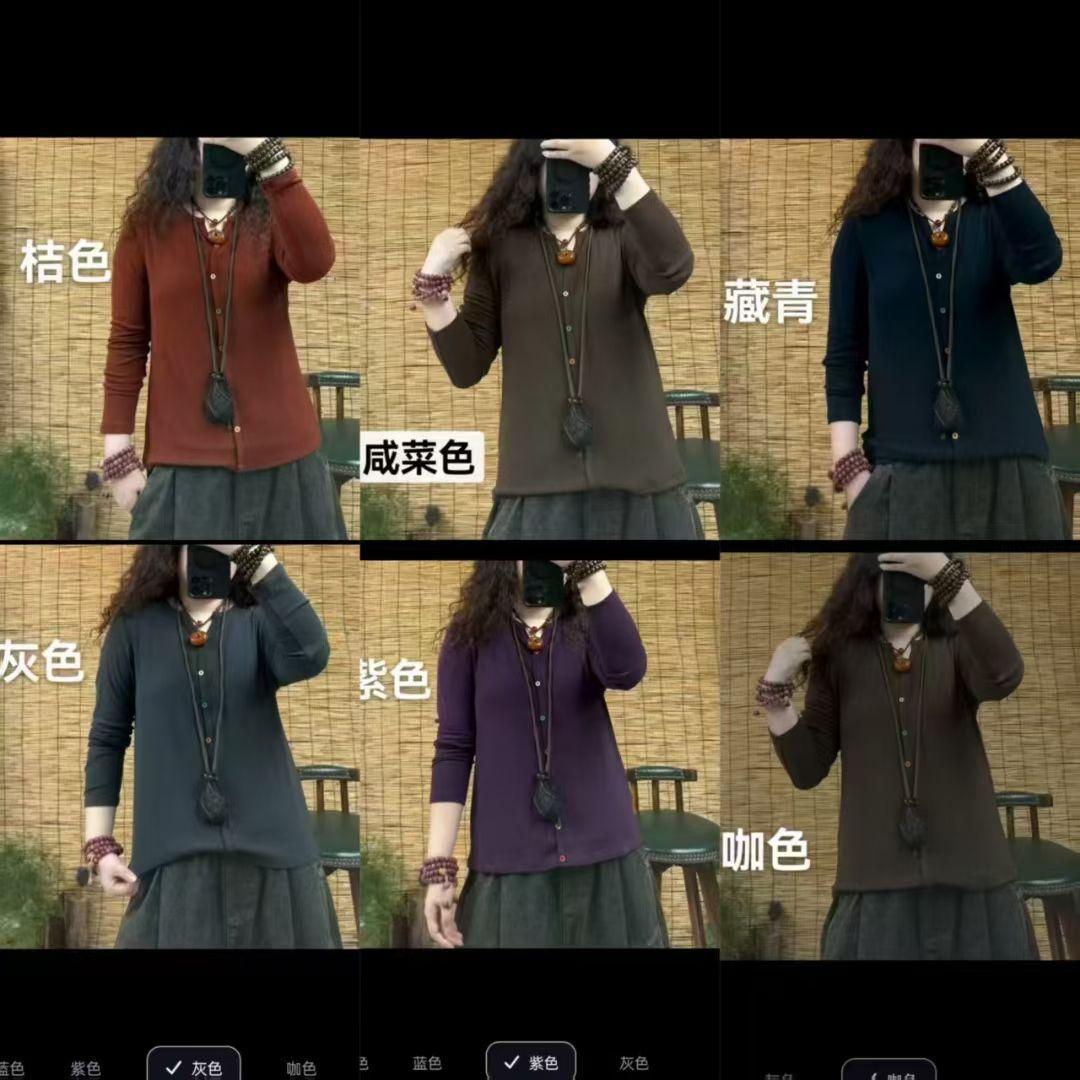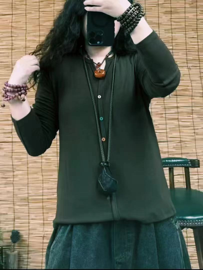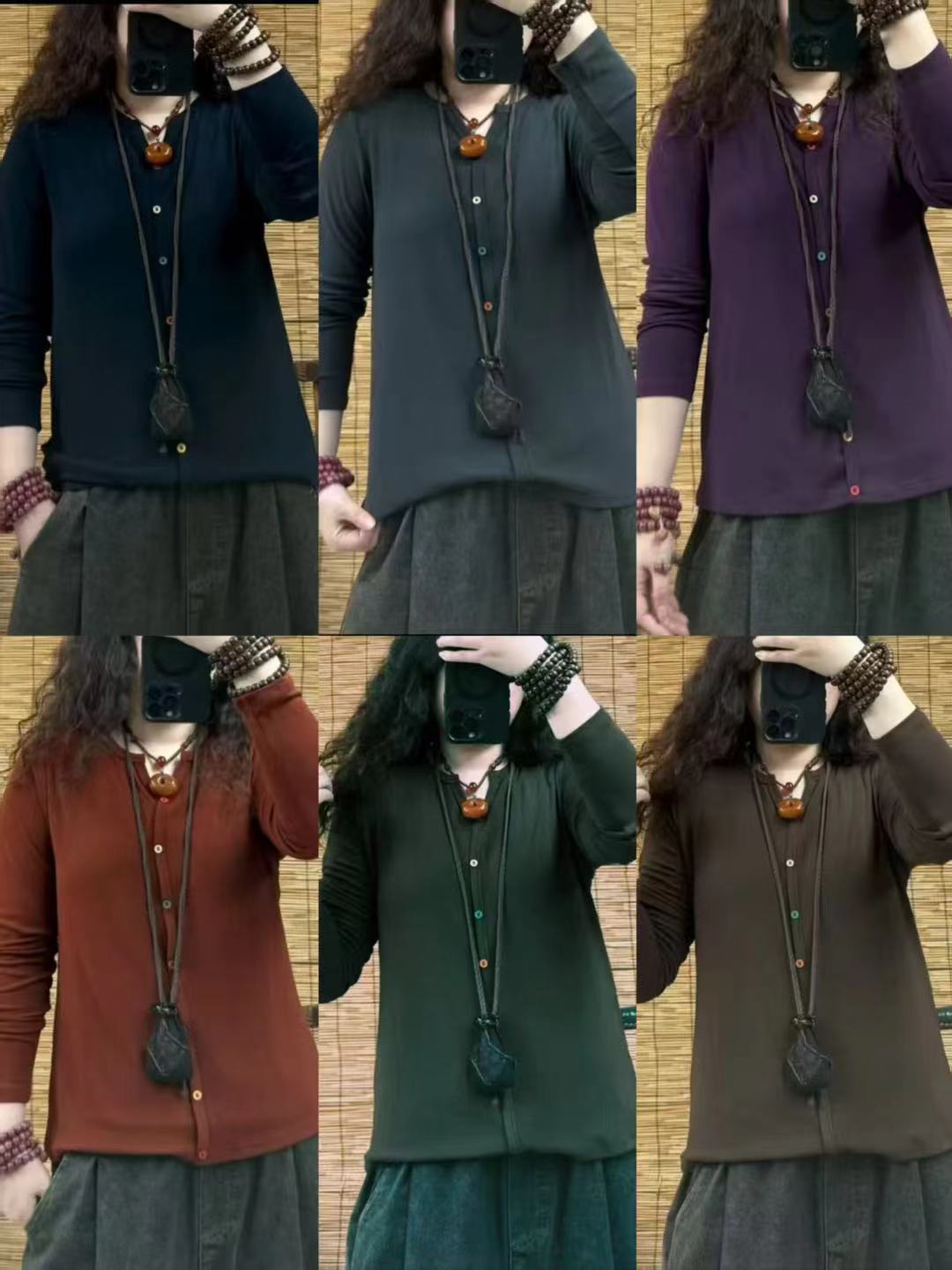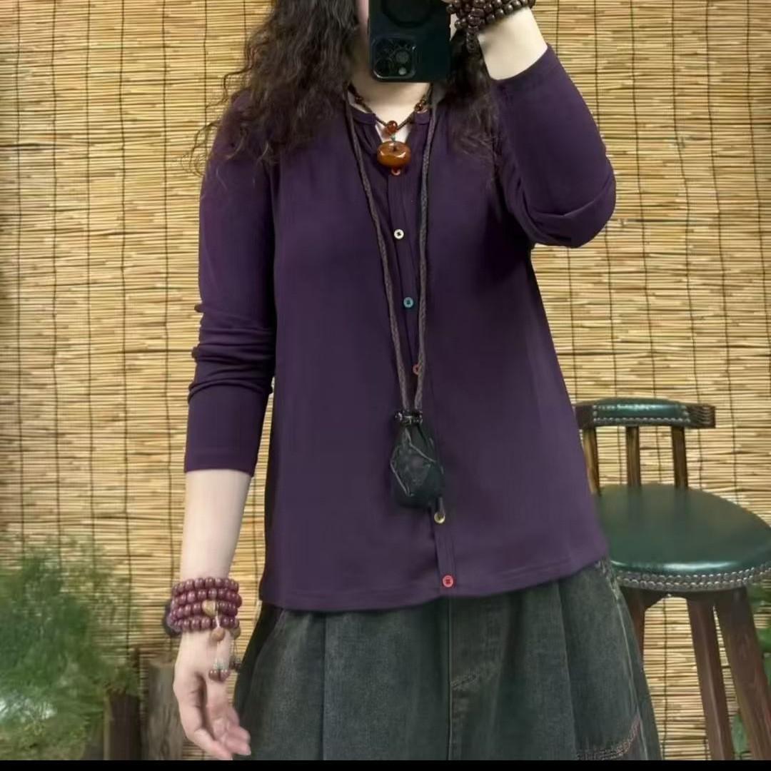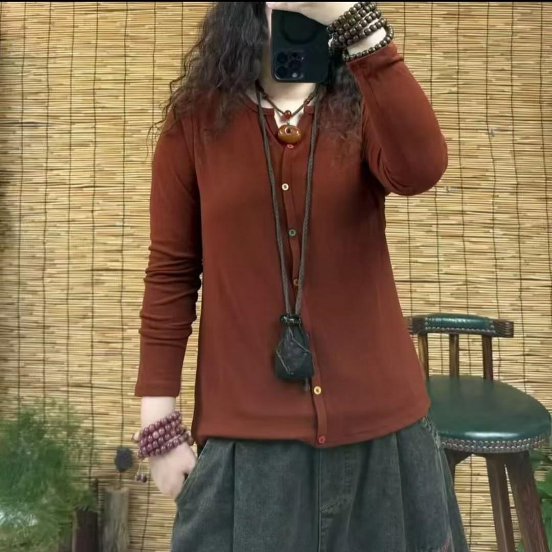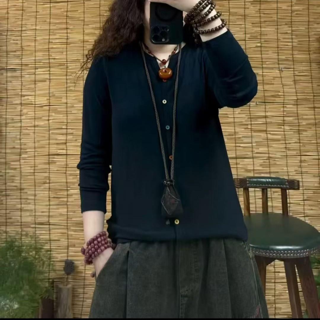 Otoño 2025 Nuevo Literario Color Sólido Camiseta Base Suelta Lisa Casual Versátil Adelgazante