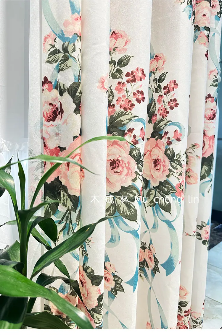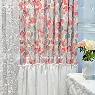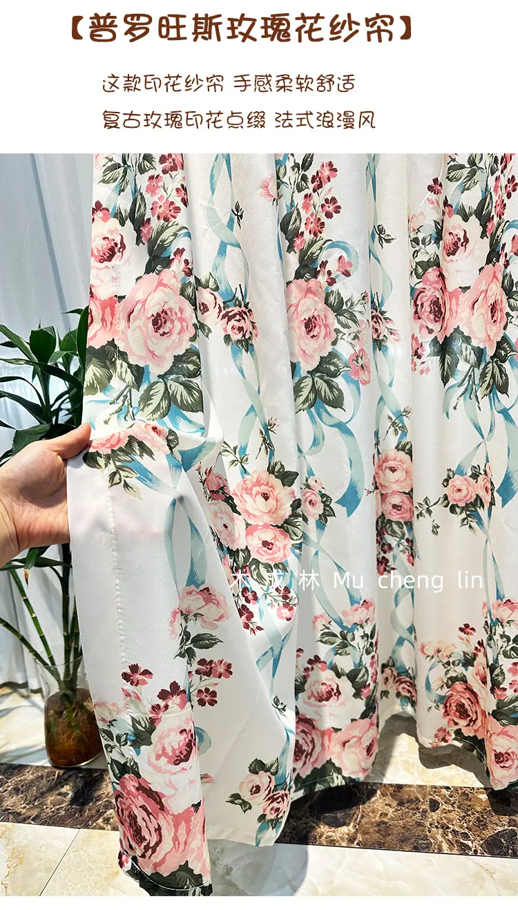 Cortinas Estampadas Estilo Pastoral Retro Francés para Hogar Balcón Dormitorio Cortinas Traslúcidas Ventana Mirador Ventana Pequeña Filtrado de Luz No Transparentes Cortinas Cortas