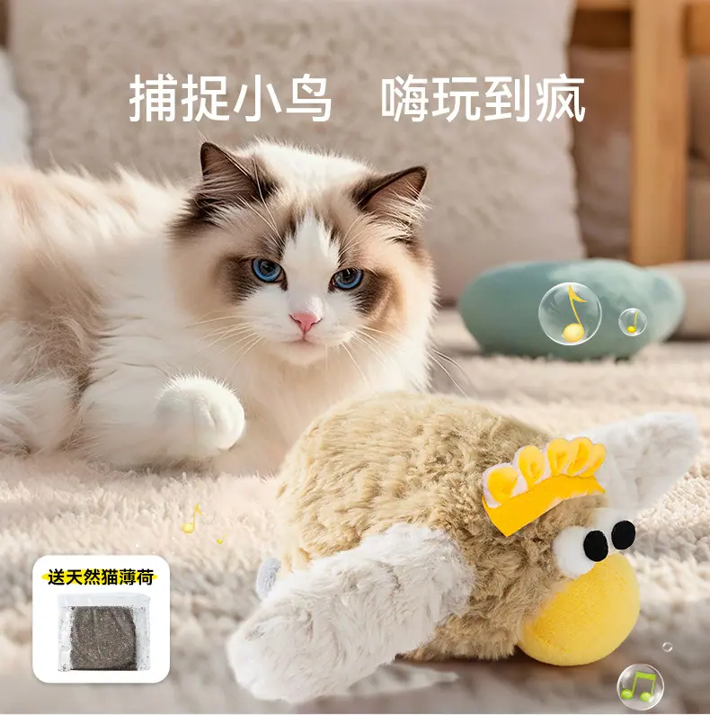 Juguete Nuevo para Gato Transfronterizo Pájaro Agitado Juguete de Peluche Carga Vibración Sonido Auto-hi Suministros para Mascotas Perro