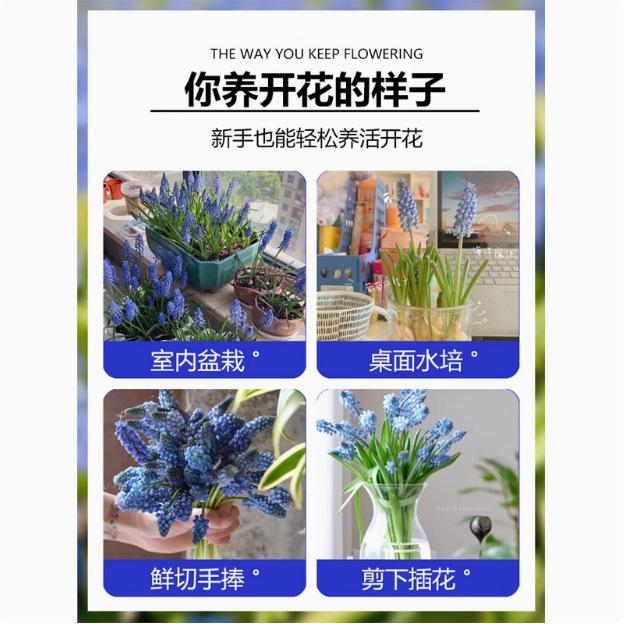Bulbos de Jacinto de Uva Hidropónico Kit de Plantación en Tierra Resistente al Frío Fácil de Cultivar Floración de Cuatro Estaciones Interior Balcón Maceta Semillas de Flores