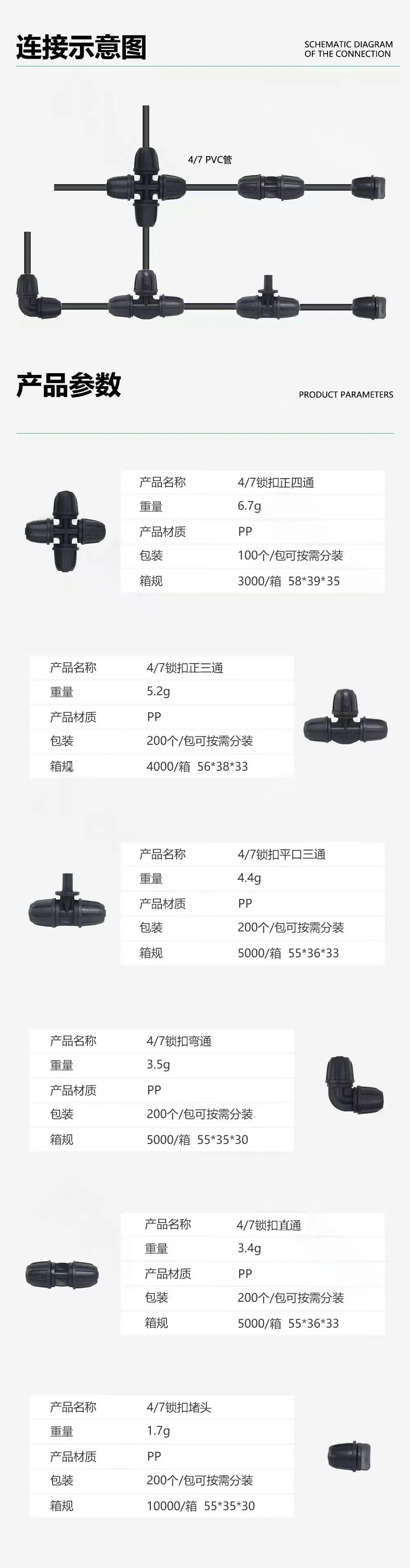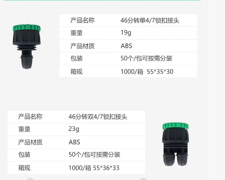 46 minute turn double 4/7 lock connector, 46 minute transfer order 4/7 locking connector, 4/7 lock three-way o...