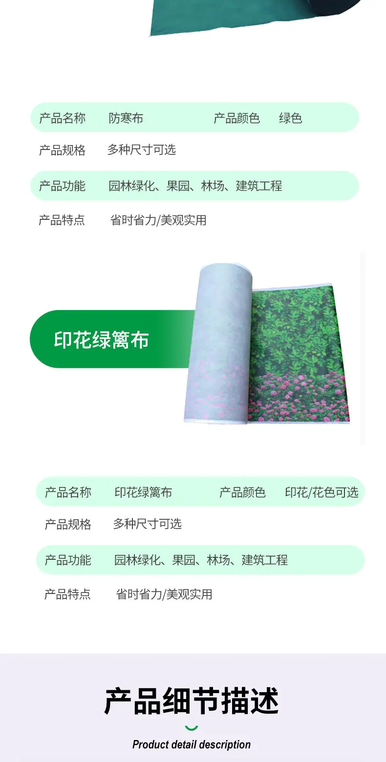 Tela impresa a prueba de frío aislamiento de árbol y tela envolvente a prueba de humedad tela de árbol tela de seto a prueba de polvo y heladas tela no tejida tela para envolver árboles para reverdecimiento