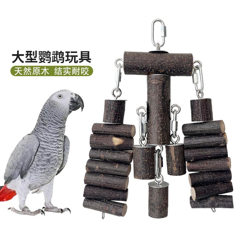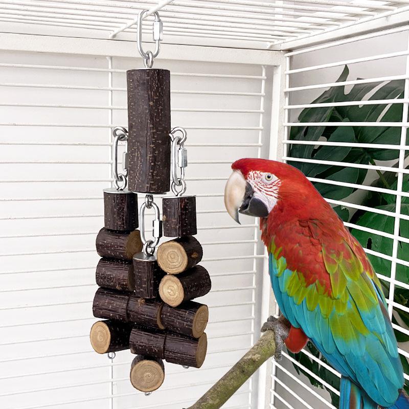 Juguete de Madera para Loro Aves Medianas y Grandes Auto-Juego Alivio del Aburrimiento Tipo Destructivo Suministros para Jaula de Pájaros Bloques de Madera Sólida Cuerda para Masticar