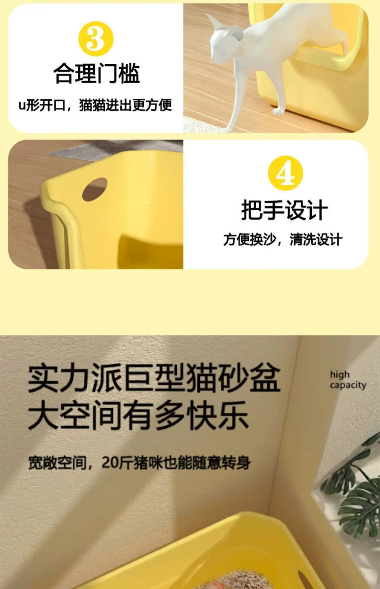Large Bathtub Yellow Cat Litter Box (with Litter Scoop), Large Bathtub Milk Coffee Color Cat Litter Box (with ...