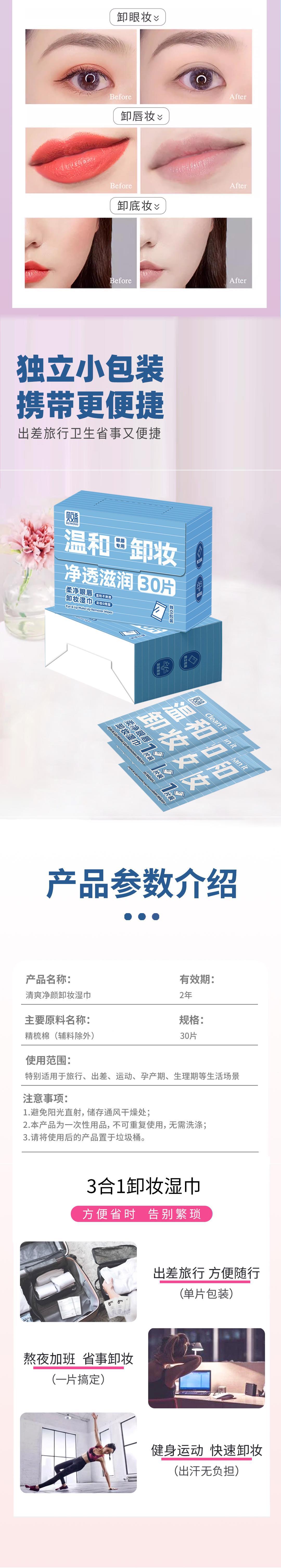 30 Toallitas Desmaquillantes Refrescantes y Limpiadoras Envasadas Individualmente Desechables Suaves Limpieza Profunda Ojos, Labios y Rostro Toallitas 3 en 1