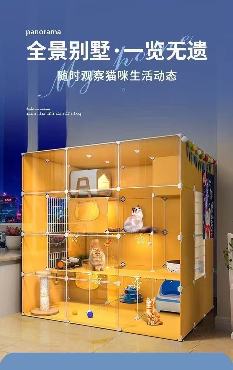 Villa Panorámica para Gatos Jaula para Gatos Hogar Extra Grande Espacio Libre Interior Gabinete para Gatos con Inodoro Integrado Casa para Gatos Refugio para Gatos