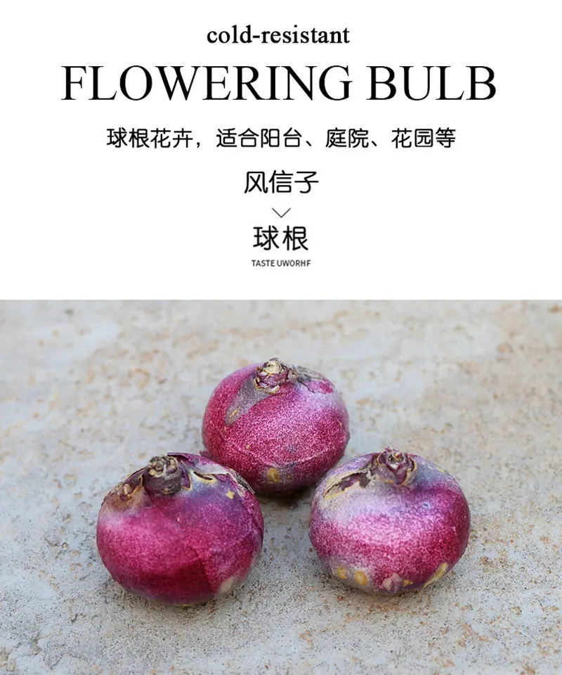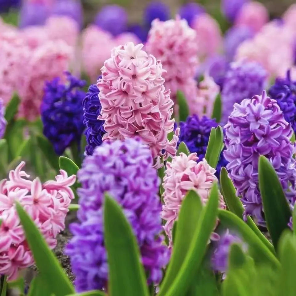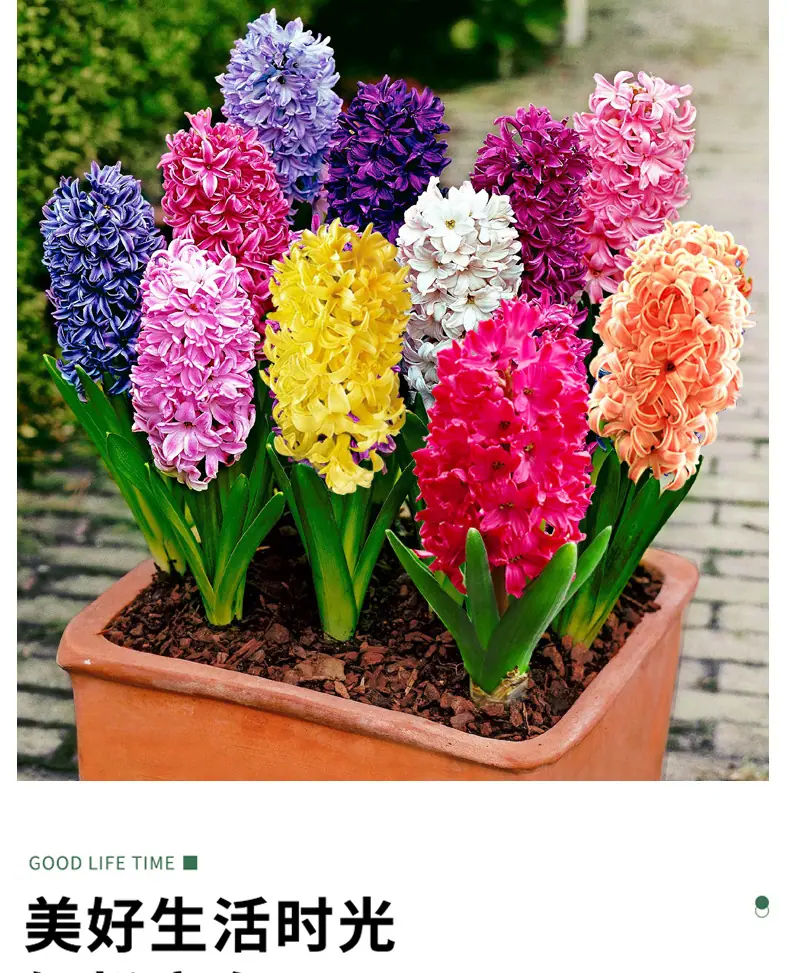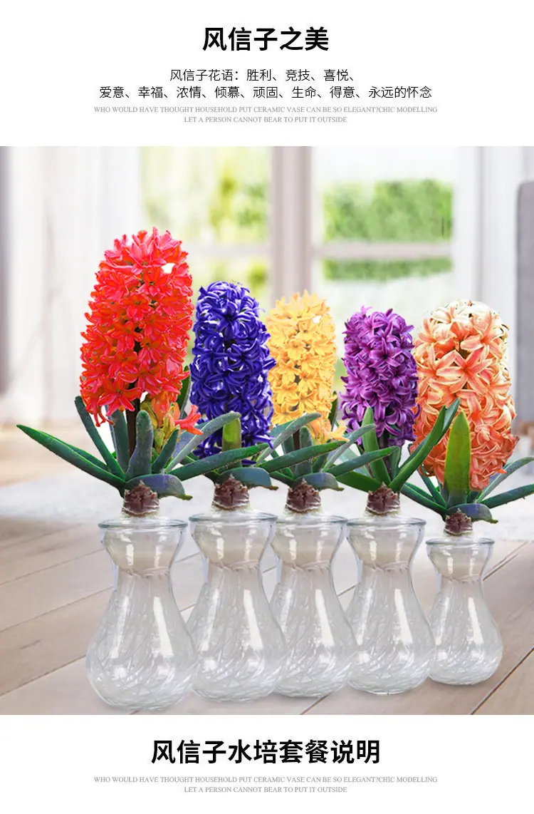 1 white bulb, blue bulb 1, 1 purple bulb, 1 pink bulb, 1 red bulb, 1 orange bulb, 1 yellow bulb, 1 hyacinth pl...