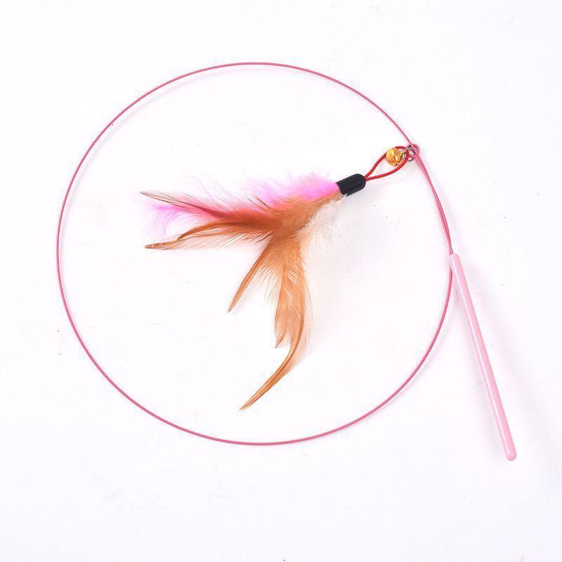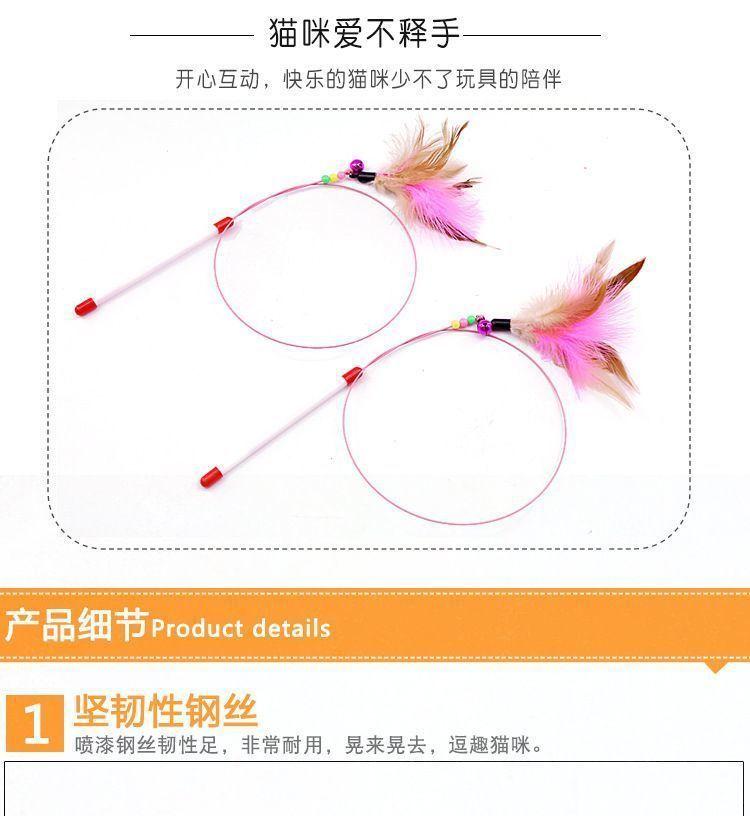 Juguete para gato al por mayor palo de gato alambre de acero color pluma con campana artefacto para gato auto-alivio palo para gato