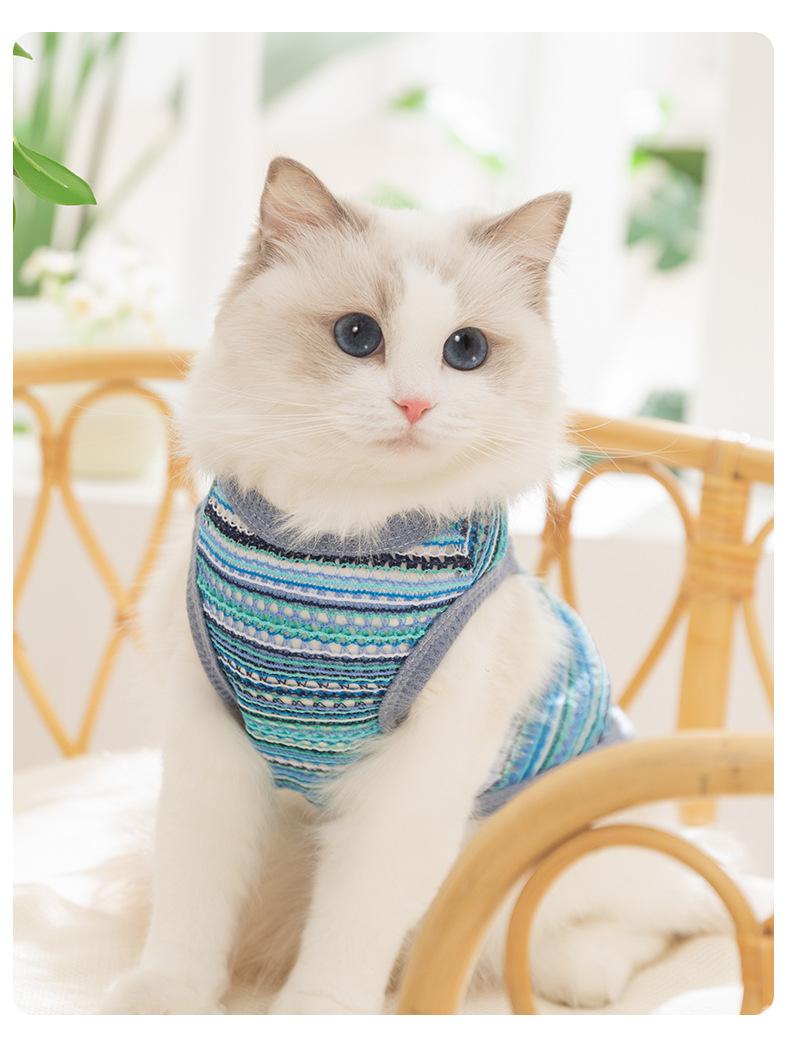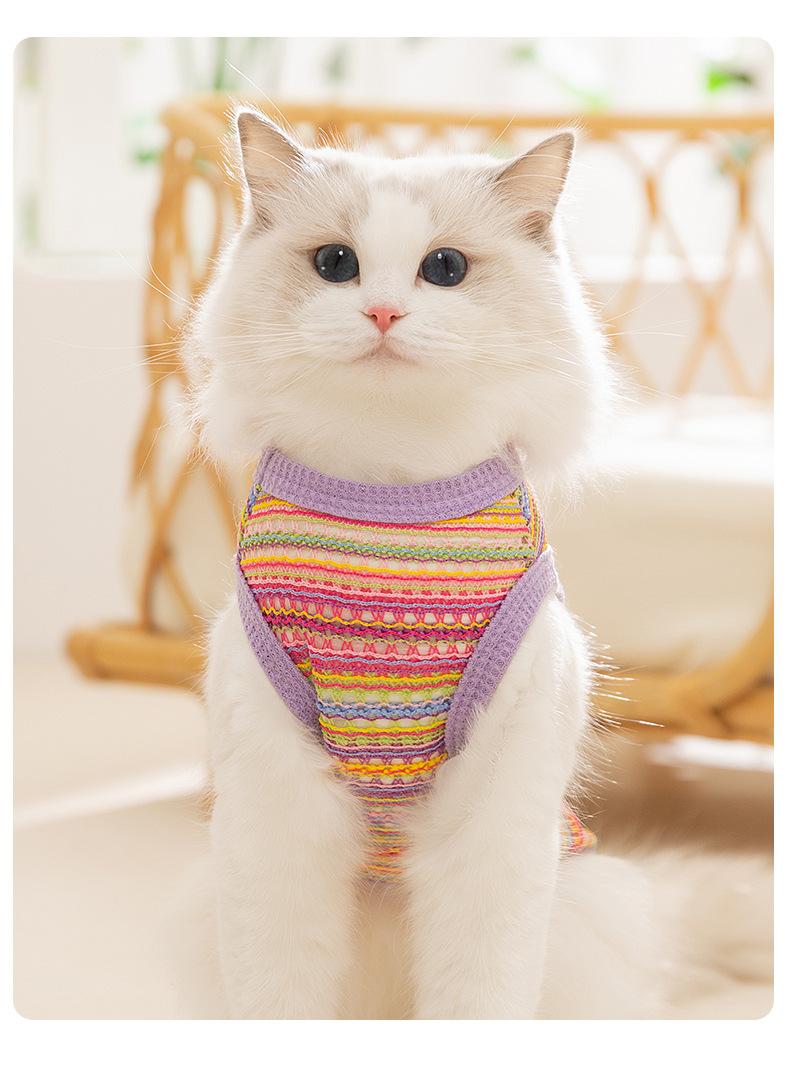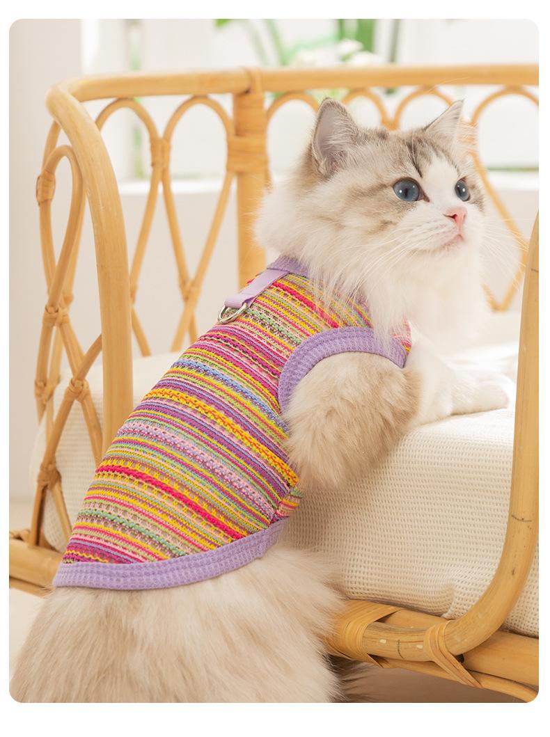 Primavera y Verano Ropa para Gato Perro Estilo Bohemio Color Dopamina Chaleco Tejido Falda Sling Ropa para Mascota