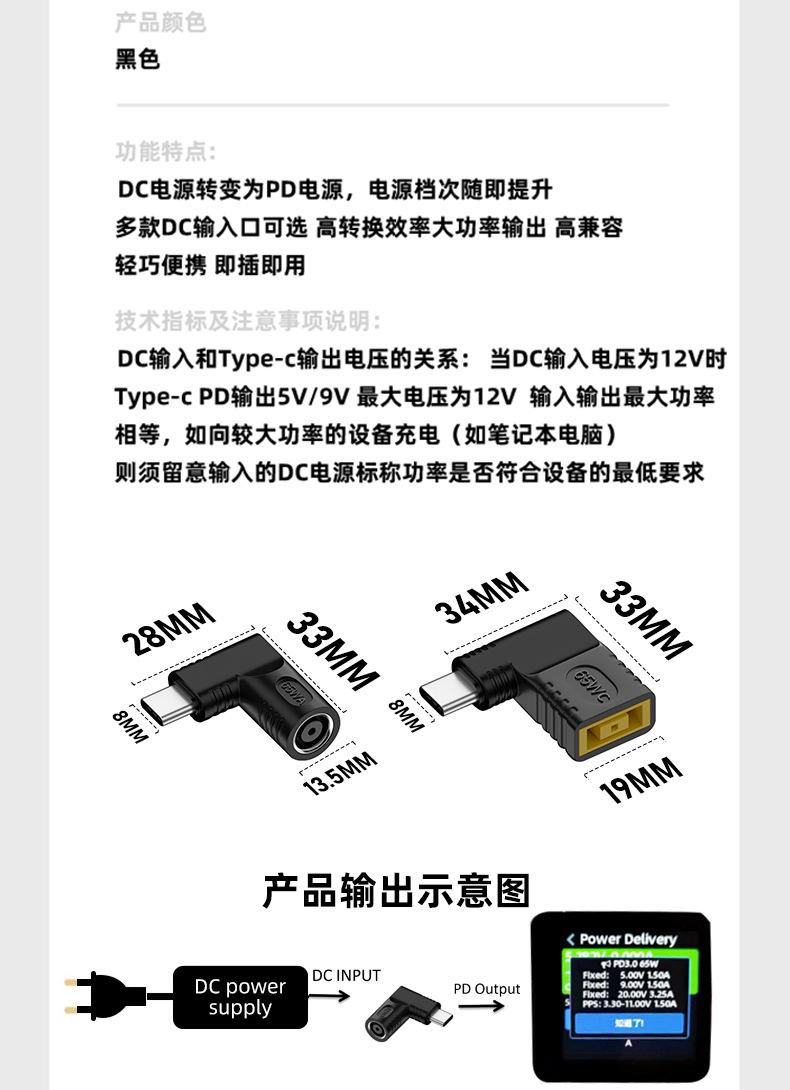 Vea la imagen detallada para la dirección de uso, el conector hembra DC es para entrada para conectar a la fuente de alimentación PD, el conector macho tipo C es para salida para conectar a la computadora)