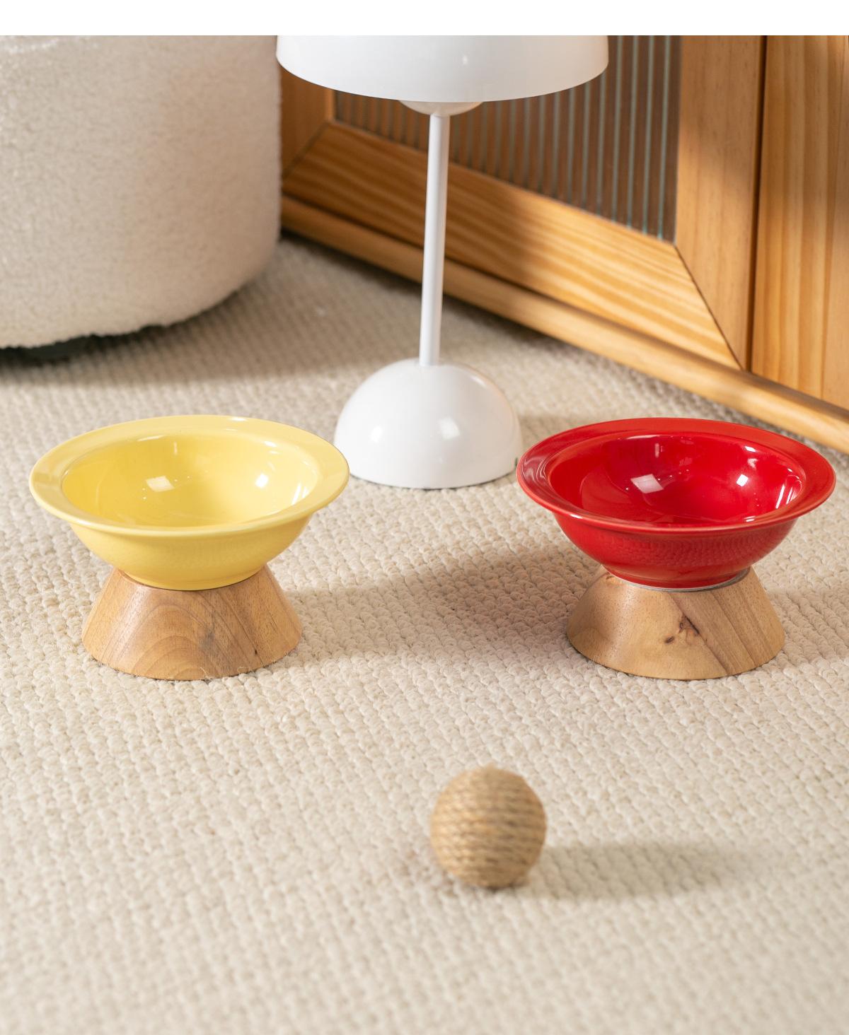 Tazón para gato y perro protección de cuello pie alto tazón para comida para gato perro tazón para beber tazón de cerámica para gato anti mentón negro tazón para mascota tazón platillo volador hogar