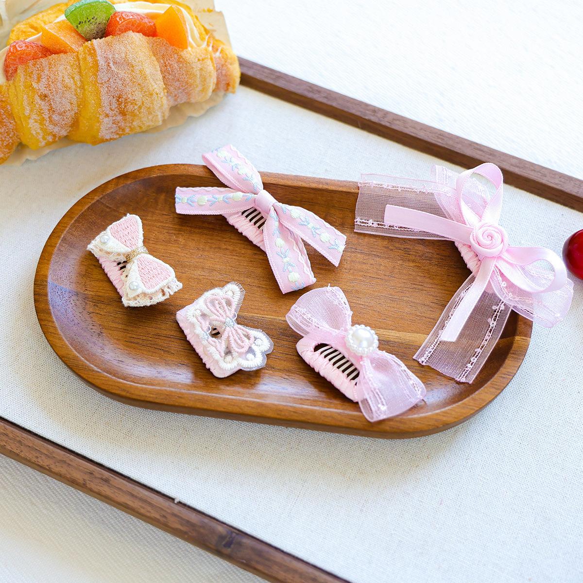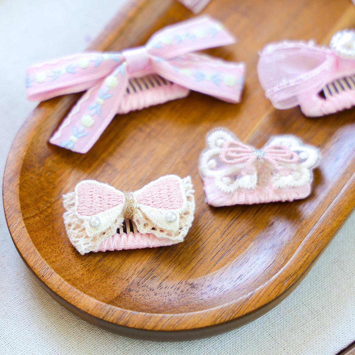 1pc Embroidery Bow BB Clip-Pink, 1pc Pearl Bow BB Clip-Pink, 1pc Lace Flower Bow BB Clip-Pink, 1pc pink pearl ...