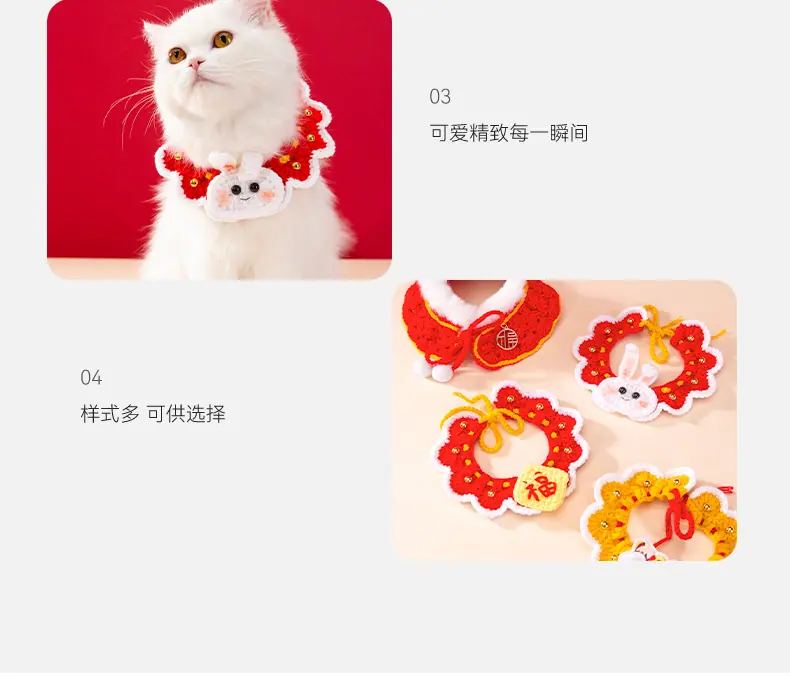 Collar Festivo Navideño Tejido a Mano para Gatos Perro Año Nuevo Collar Tejido Joyería para Mascotas Toalla Babero