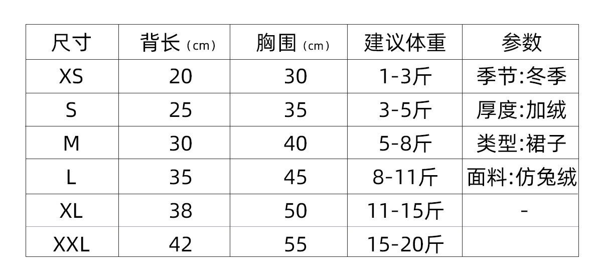 Xs (recommended weight 0.5-1.5kg ), S (recommended weight 1.5-2.5kg ), M (recommended weight 2.5-4kg ), L (rec...