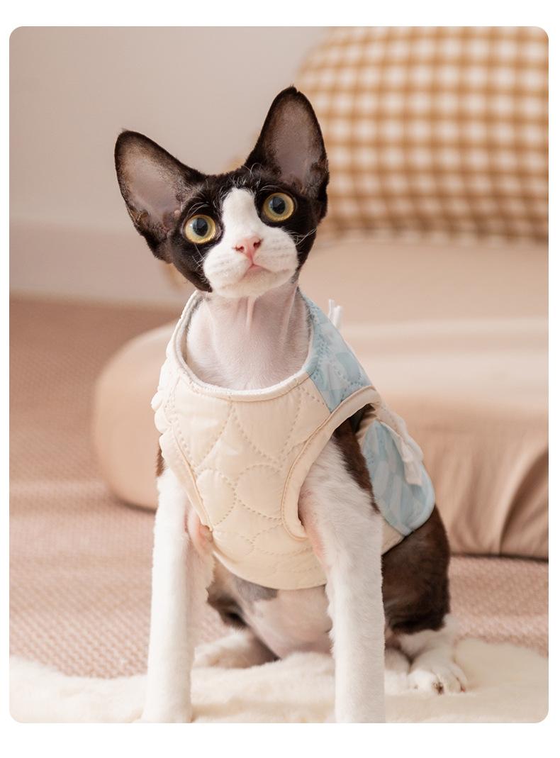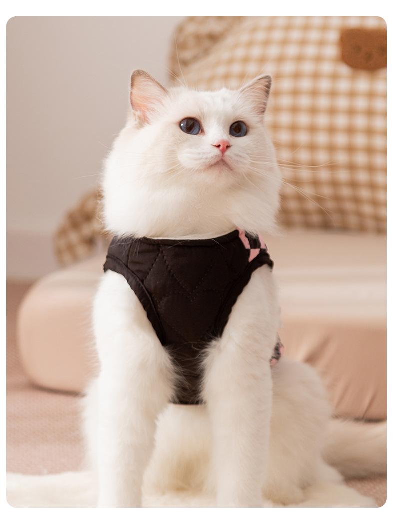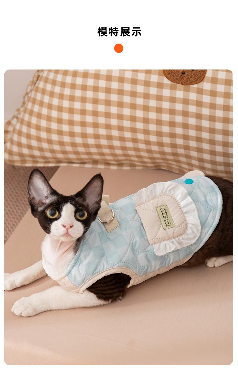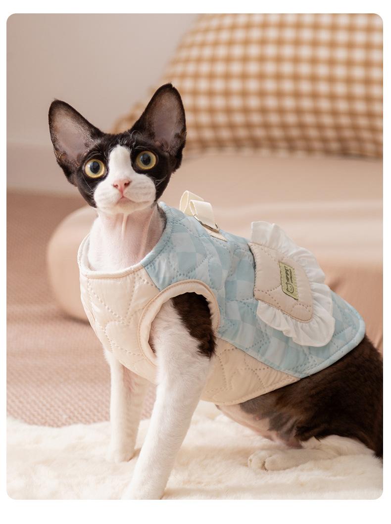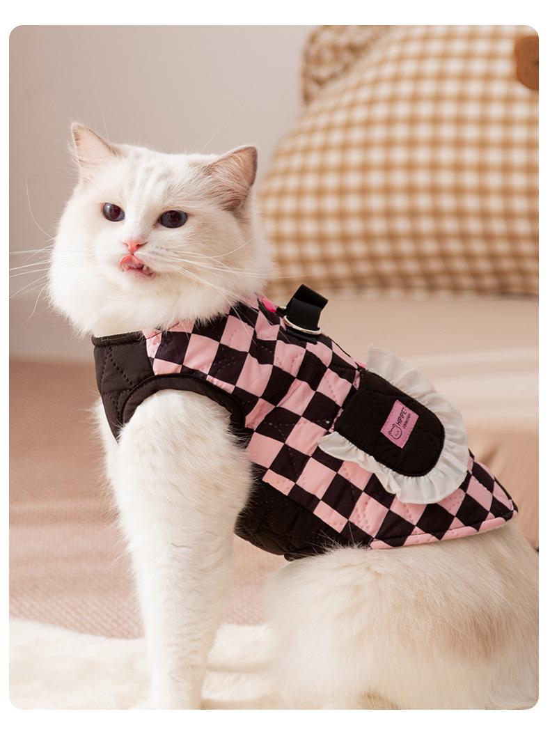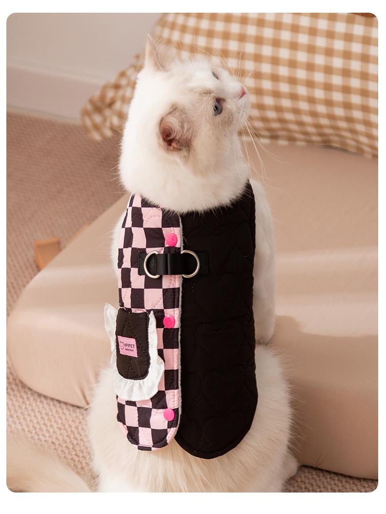 Ropa para Gatos Otoño Invierno Abrigo Acolchado de Algodón Cálido Grueso Patchwork a Cuadros Bolsillo Chaleco de Tracción Ropa para Mascotas Perro Pequeño