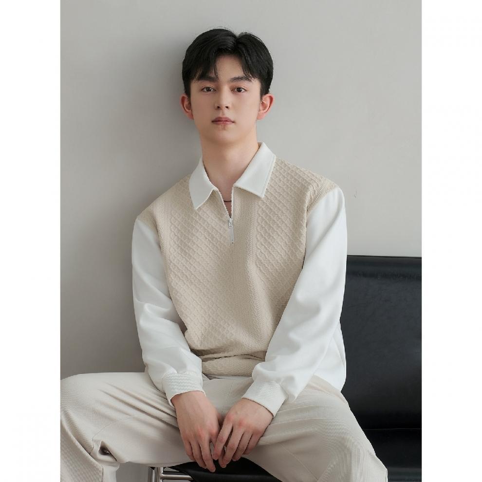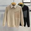 Suéter de Cuello Falso de Dos Piezas para Hombre, Moda de Primavera y Otoño, Estilo Coreano Moderno, Camisa Casual de Manga Larga, Tejido de Punto, Top de Ropa