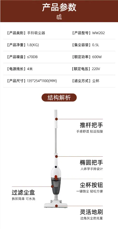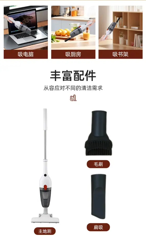 Aspiradora Portátil de Mano para el Hogar, Pequeña, de Varilla Empujable, Venta al por Mayor Transfronteriza, Nueva Actualización, Aspiradora con Cepillo de Piso Giratorio Elevable