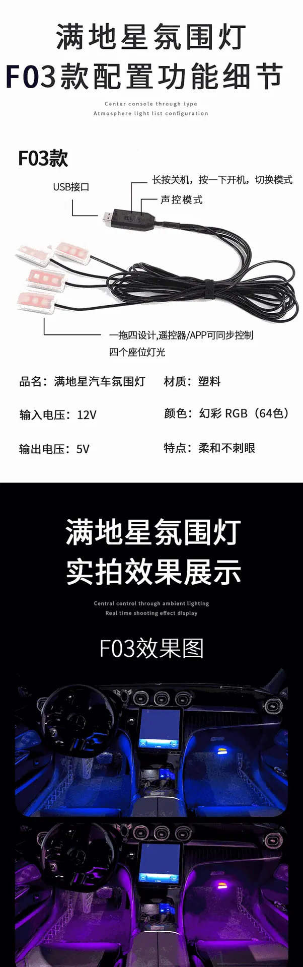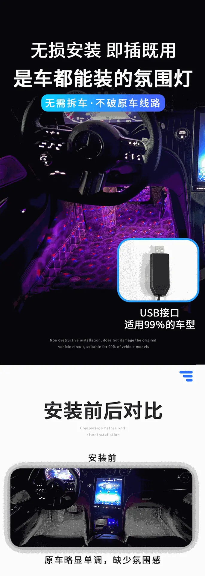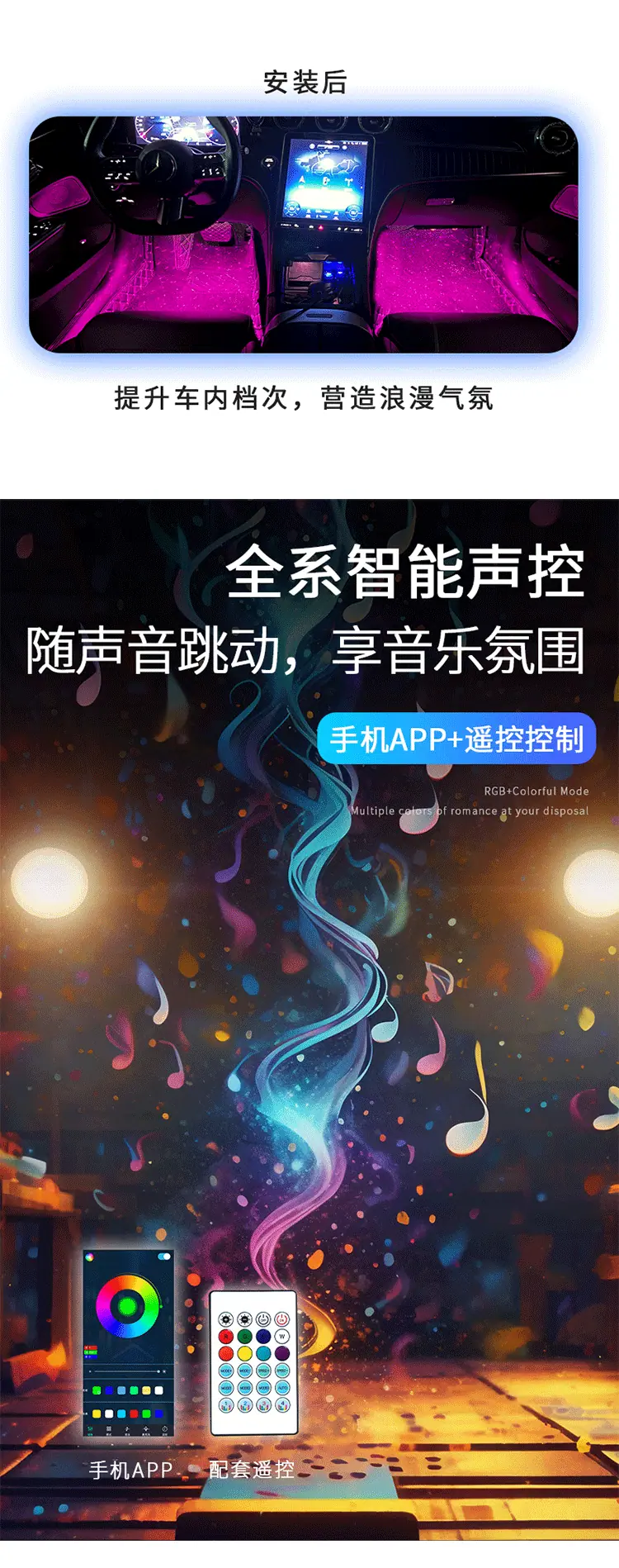 Luz Ambiental Interior de Coche Nueva Luz para Pies Luz Led Interior Luz de Ambiente Luz de Ritmo de Música Modificación Cielo Estrellado