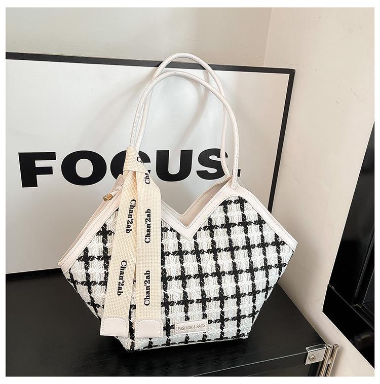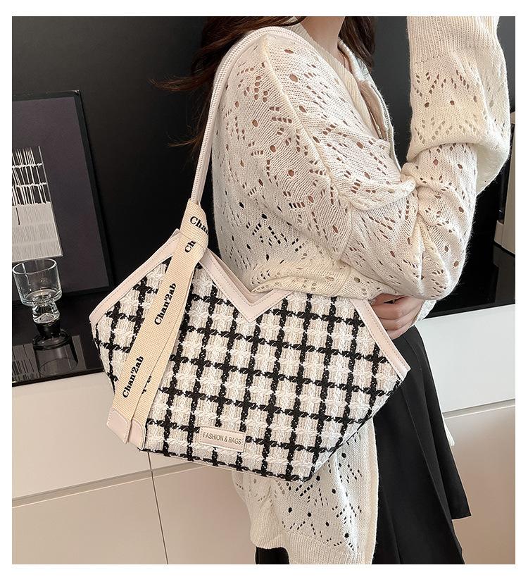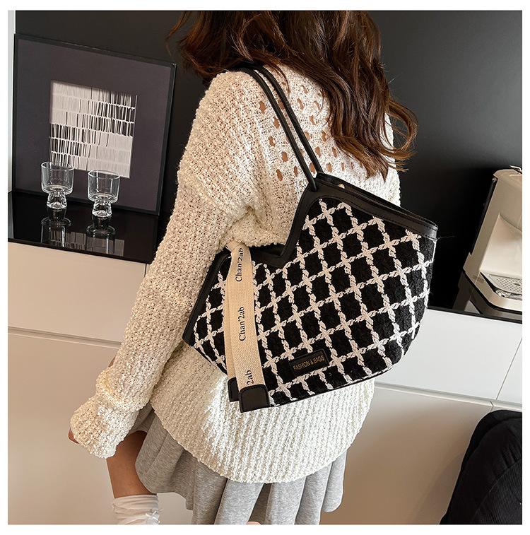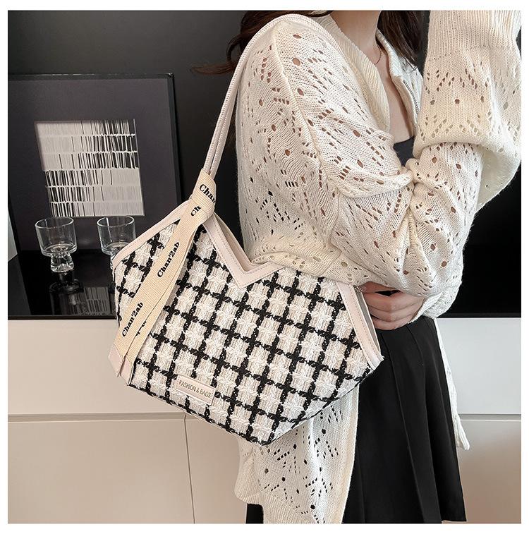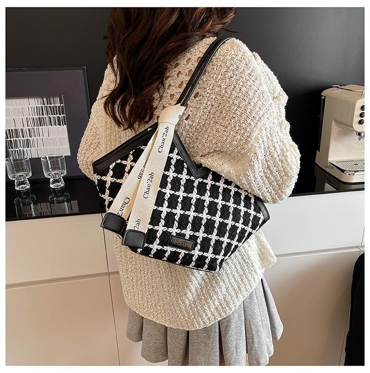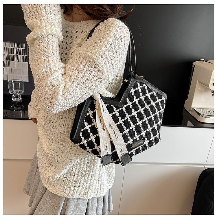 Bolso de Mano para Mujer de Moda Europea y Americana 2025 Nueva Tendencia Bolso de Mujer Hombro Gran Capacidad Bufanda a Cuadros Bolso Tote