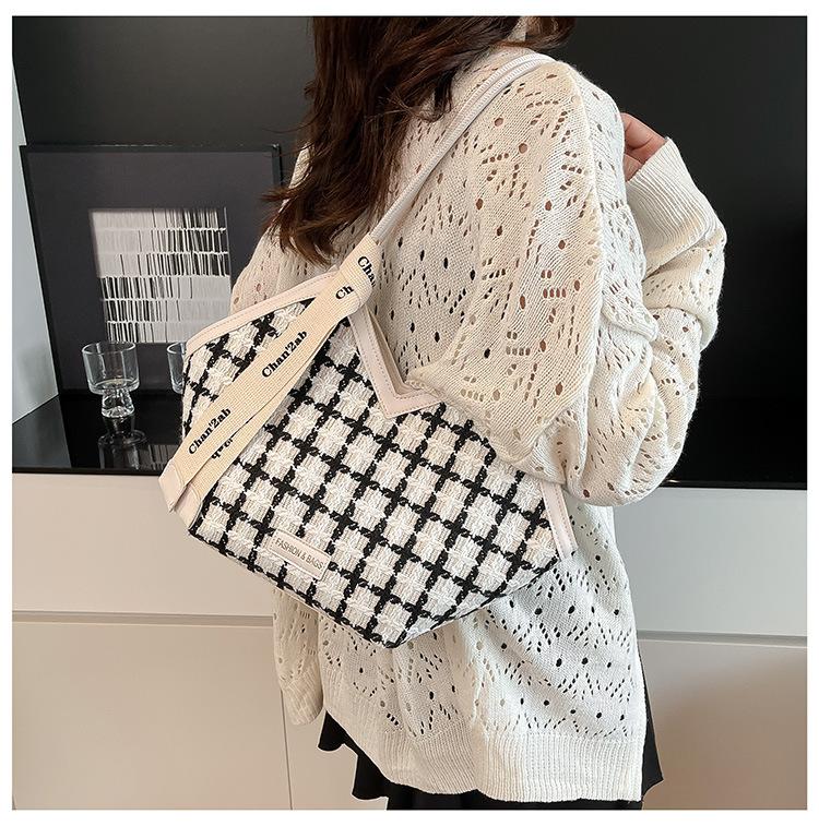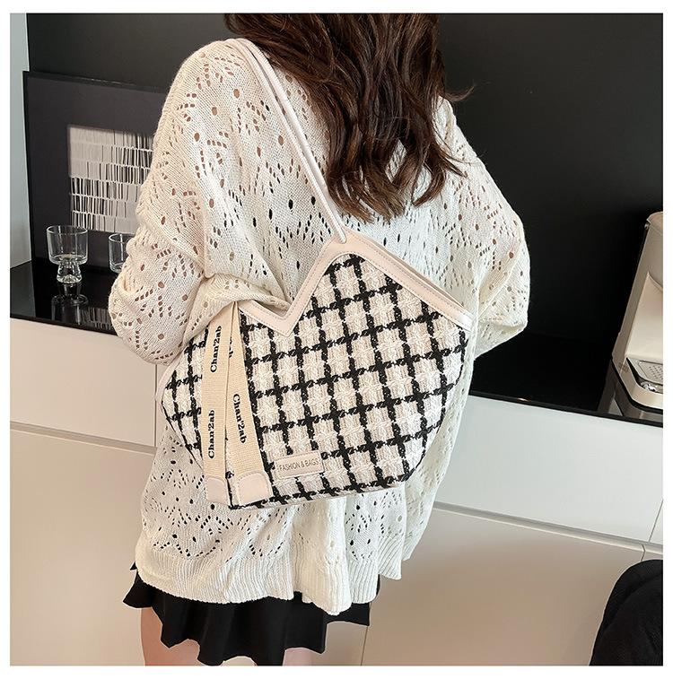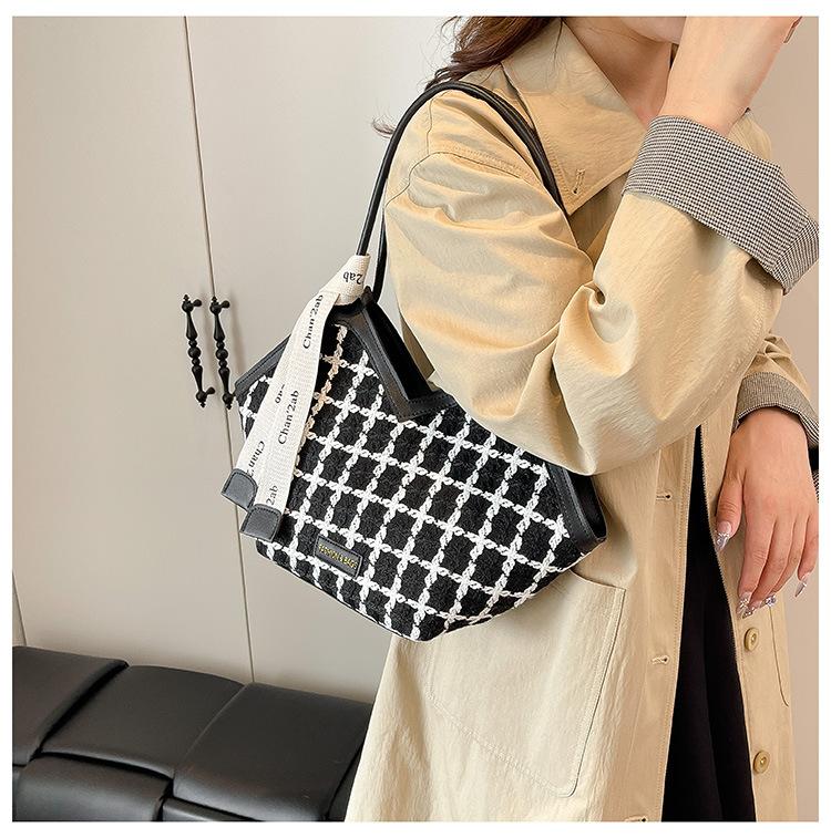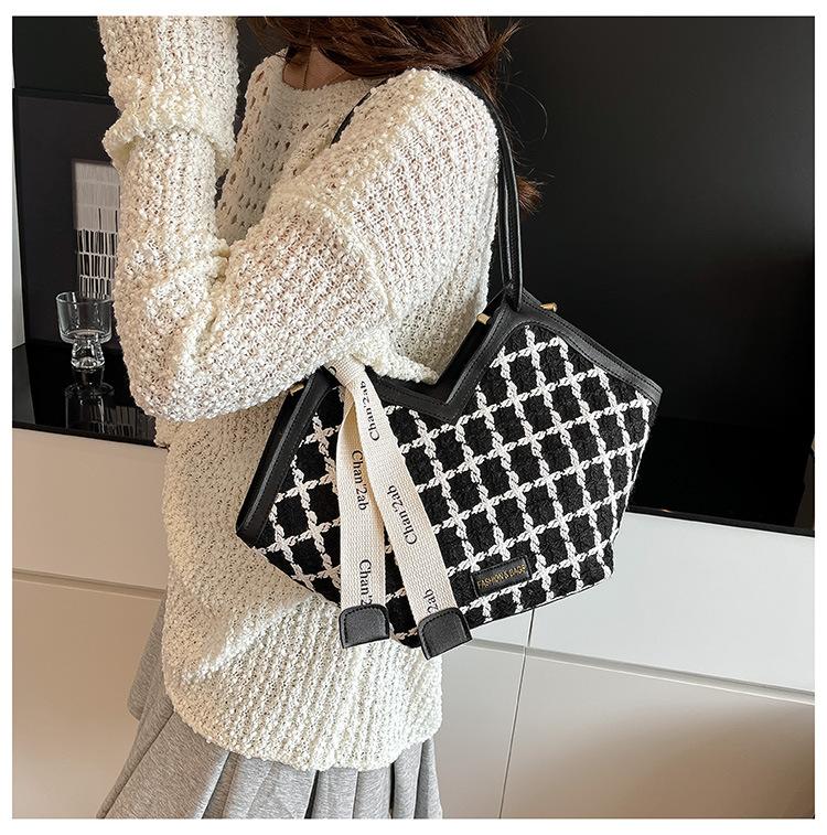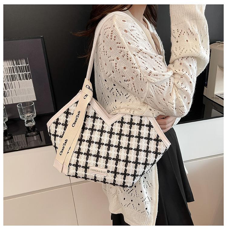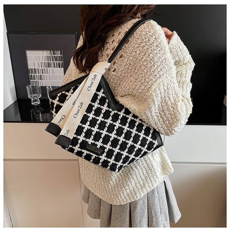 Bolso de Mano para Mujer de Moda Europea y Americana 2025 Nueva Tendencia Bolso de Mujer Hombro Gran Capacidad Bufanda a Cuadros Bolso Tote