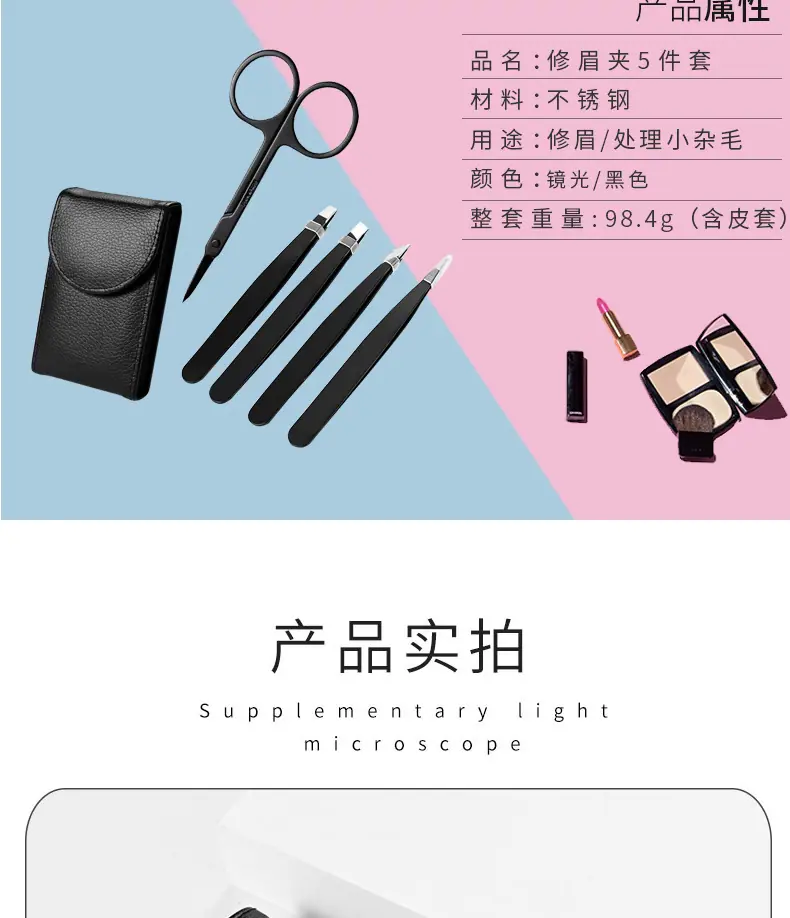 Pinza para Cejas Acero Inoxidable Pinza para Cejas Juego de 5 Pinzas para Recortar Cejas Juego de Pinzas para Cejas Pinza con Pintura en Spray