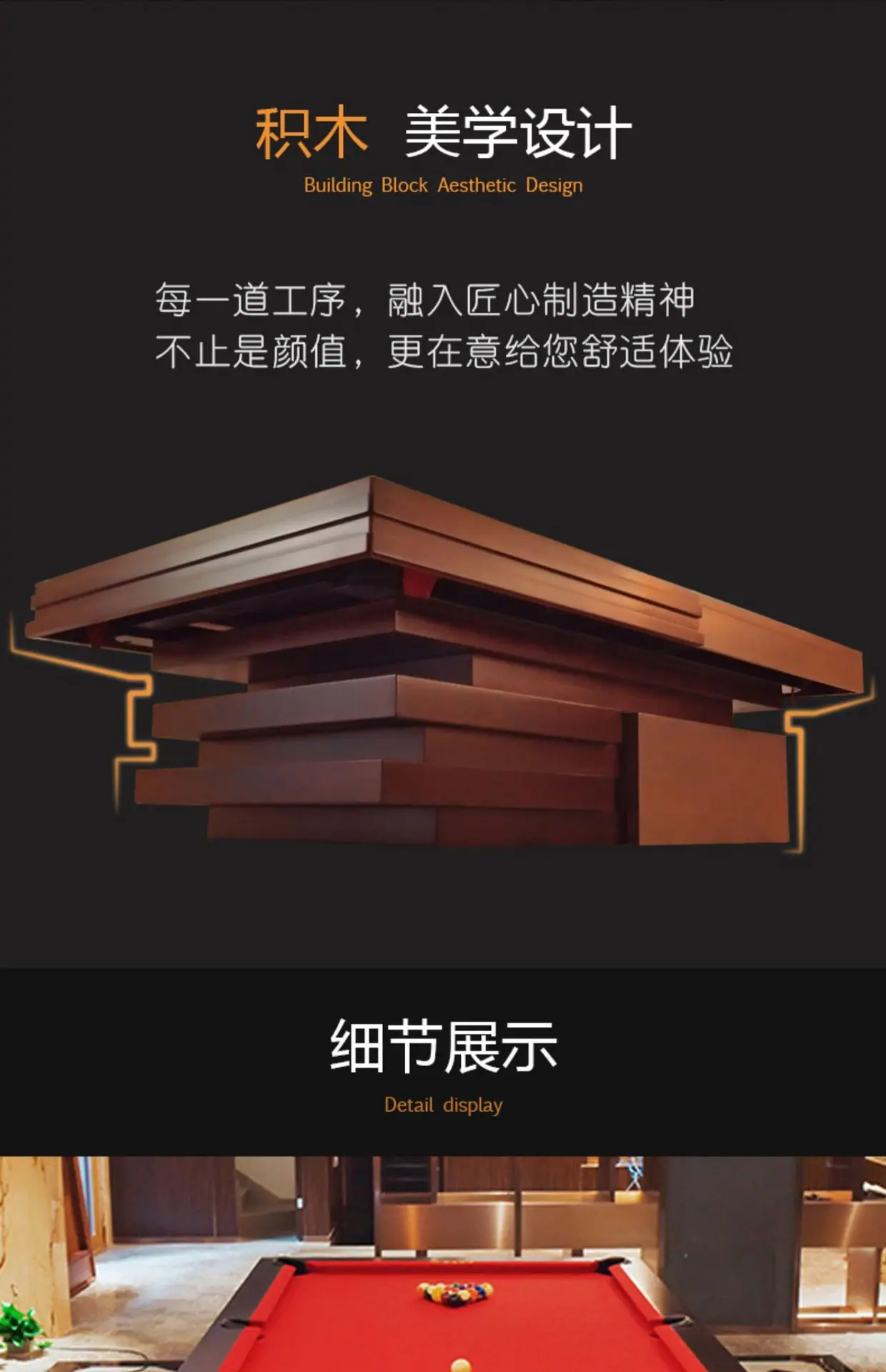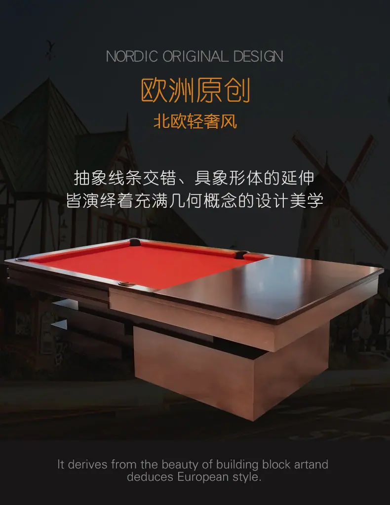 Mesa de Billar para Adultos Mesa de Snooker Tipo Estándar Interior Hogar Ocho Bolas Nueve Bolas Bola Negra Estilo Villa Arte Madera Maciza