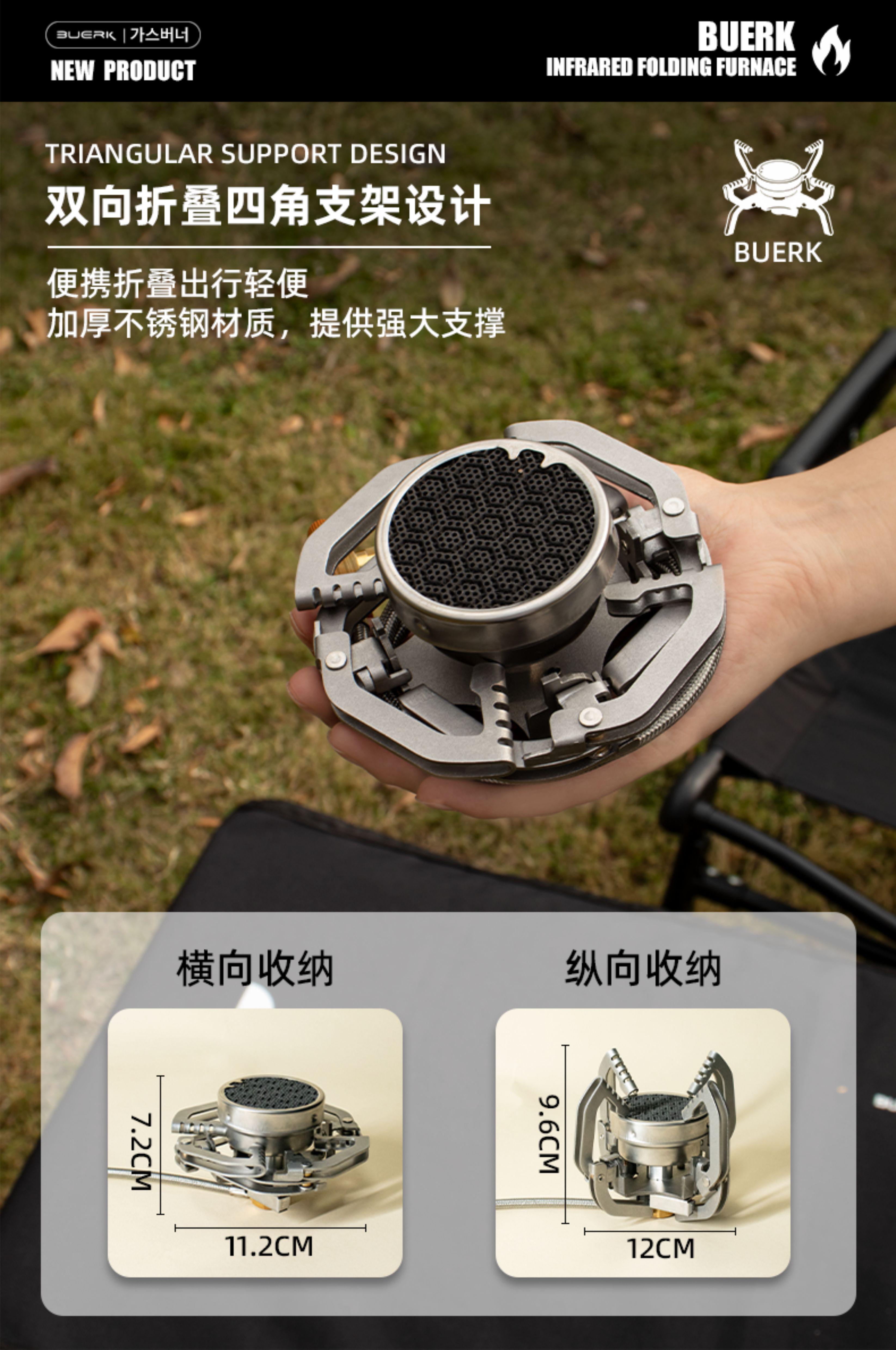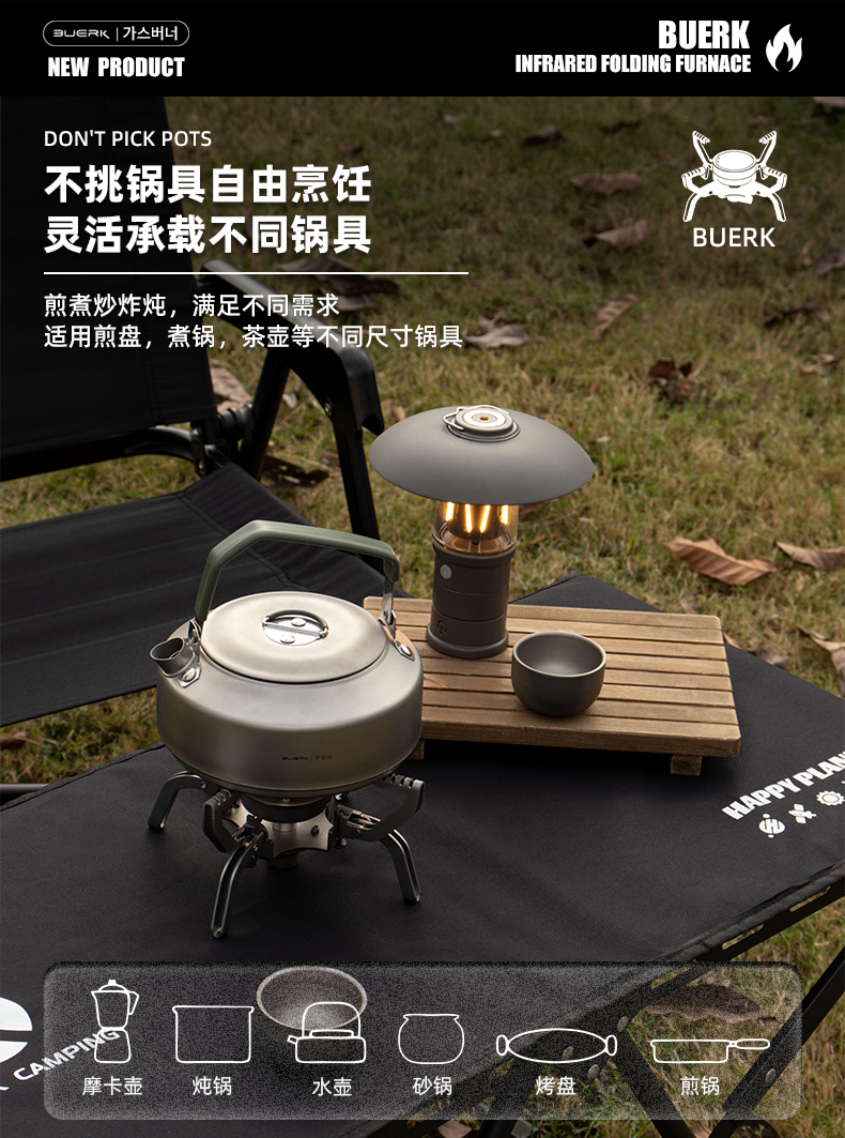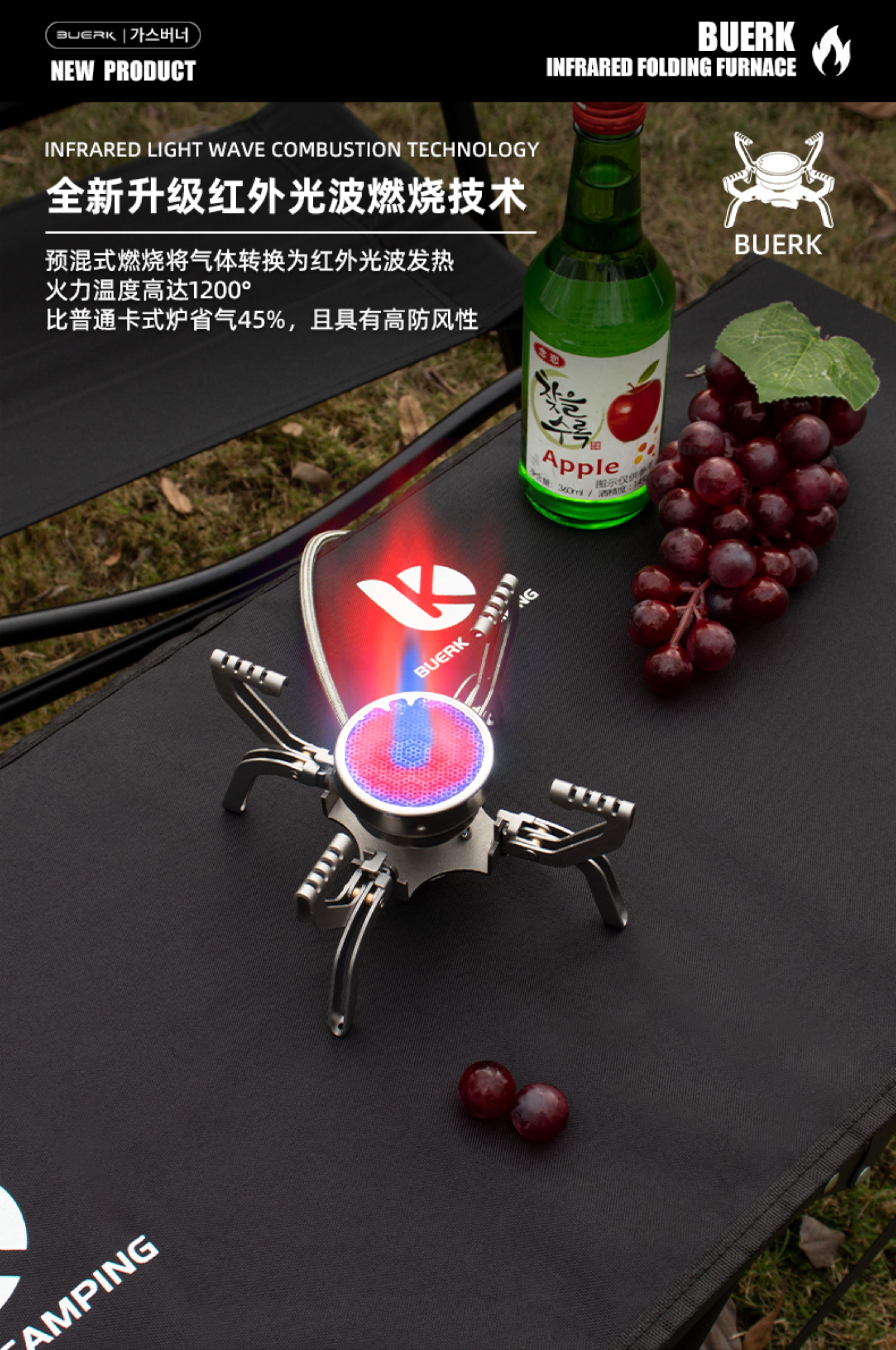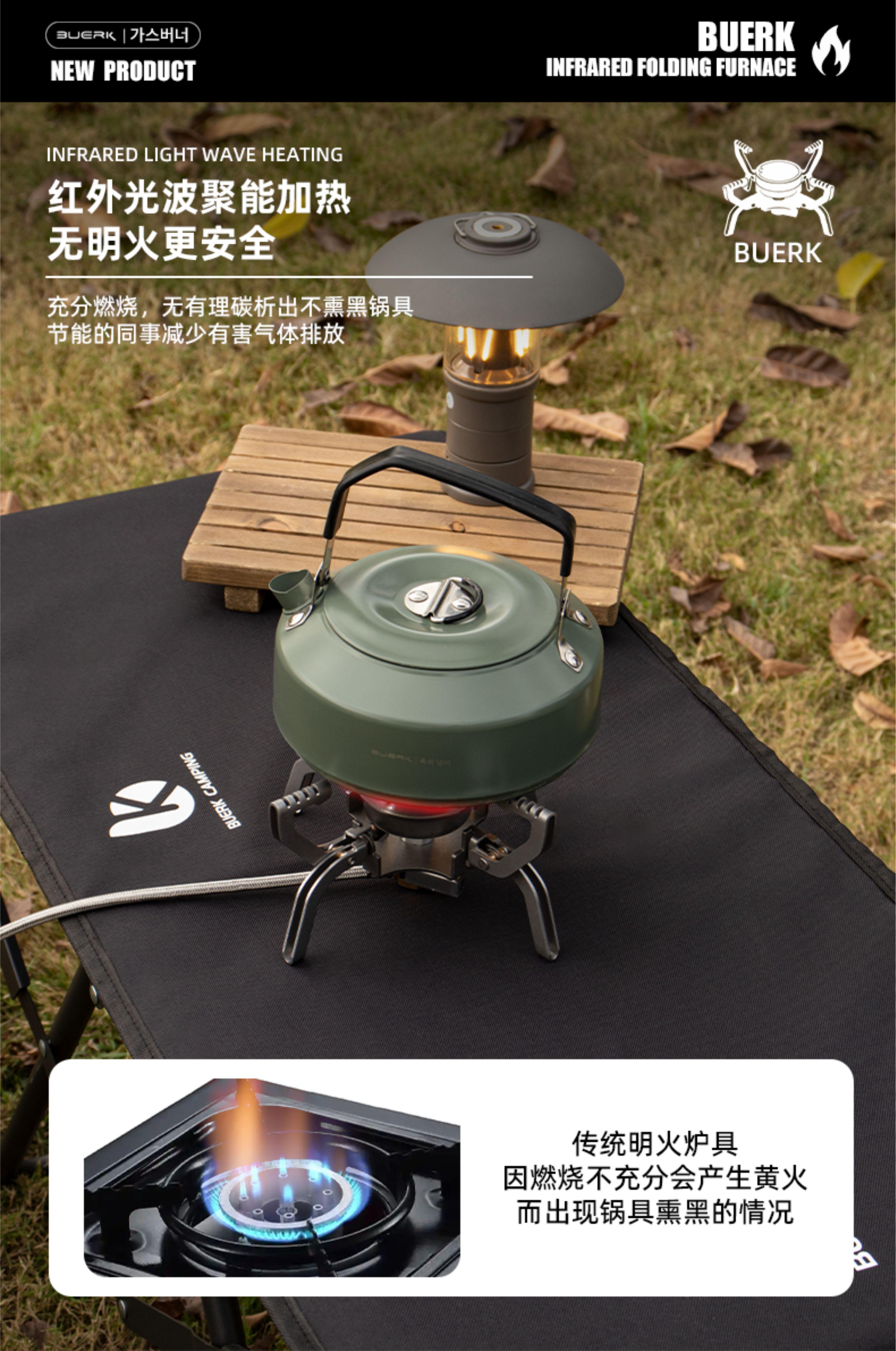 BUERK Bubik Estufa Infrarroja Dividida Nueva Portátil para Exterior Gas Estufa para Cocinar Té Utensilios de Cocina para Camping