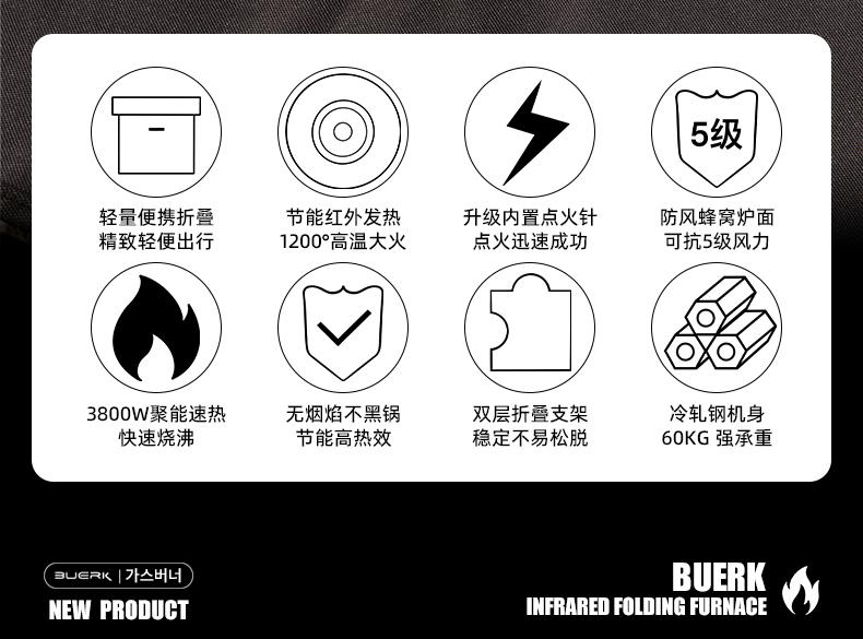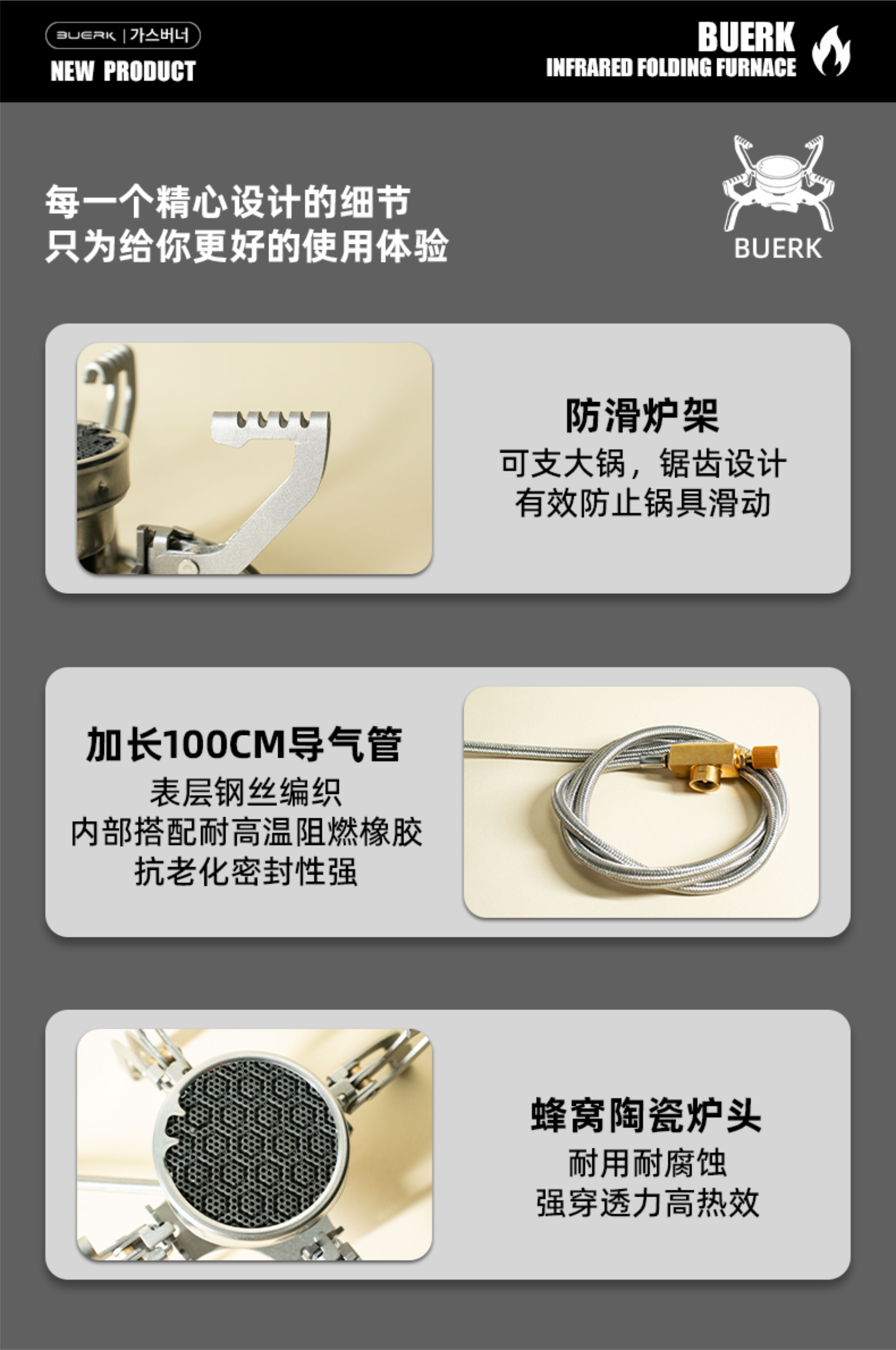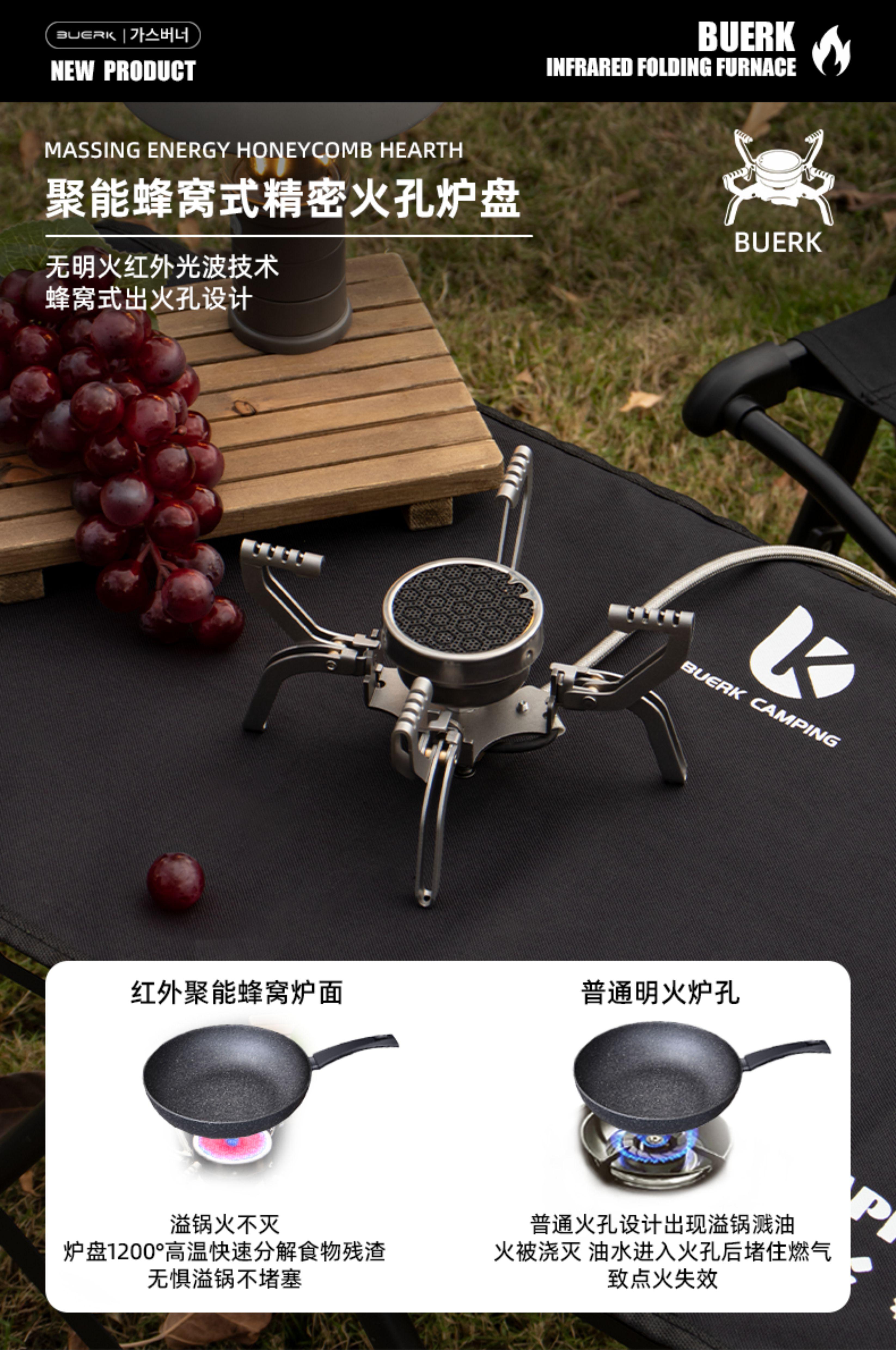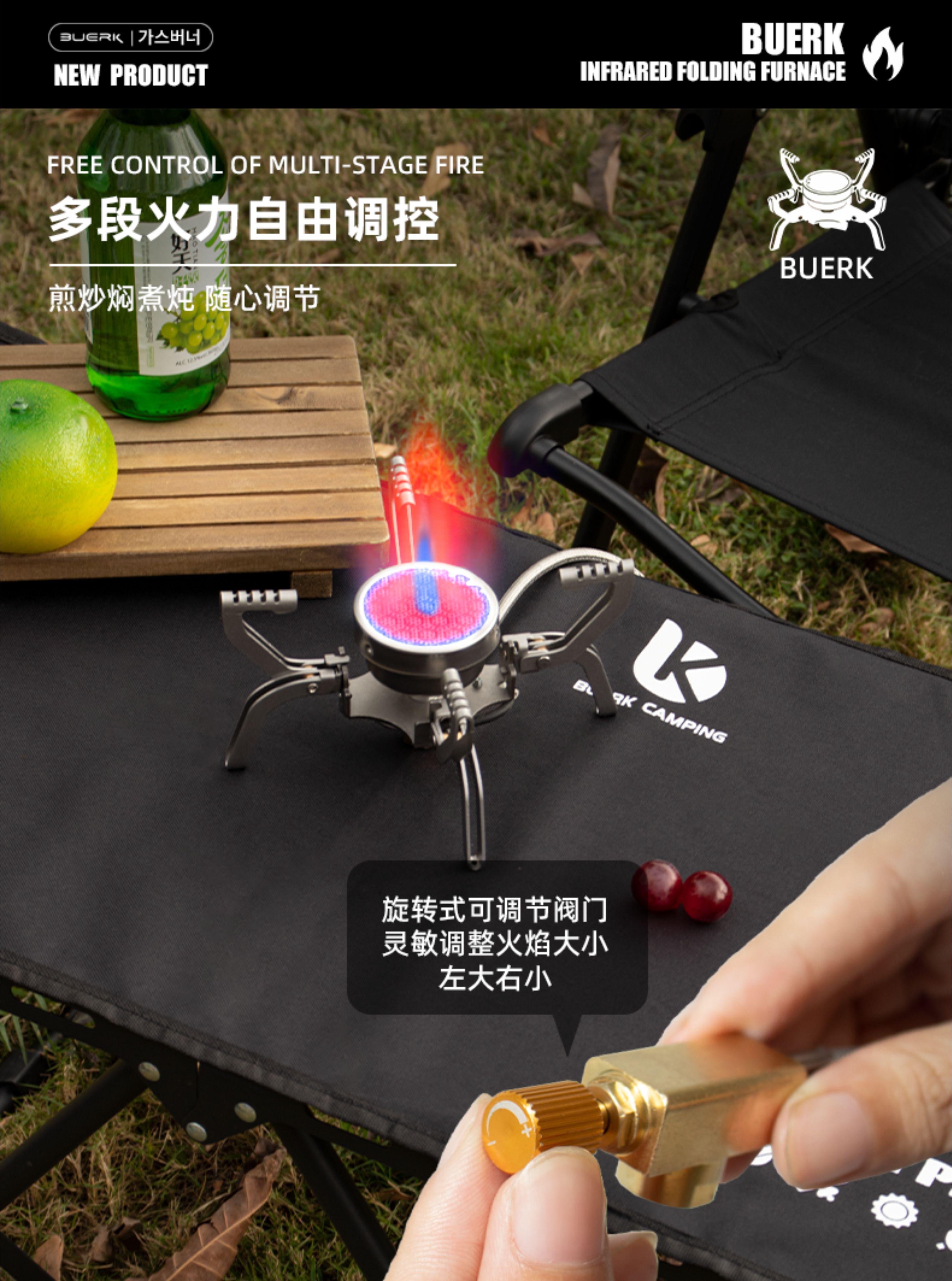 BUERK Bubik Estufa Infrarroja Dividida Nueva Portátil para Exterior Gas Estufa para Cocinar Té Utensilios de Cocina para Camping